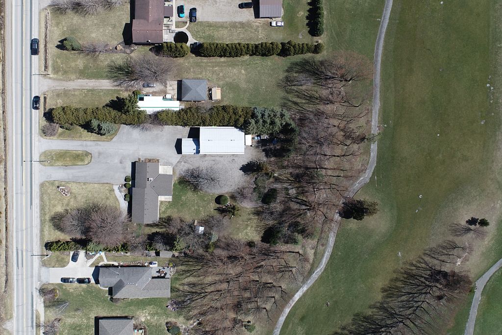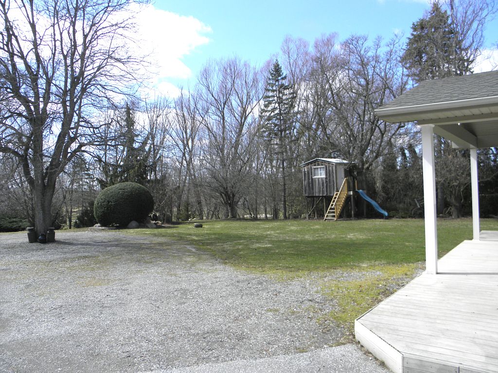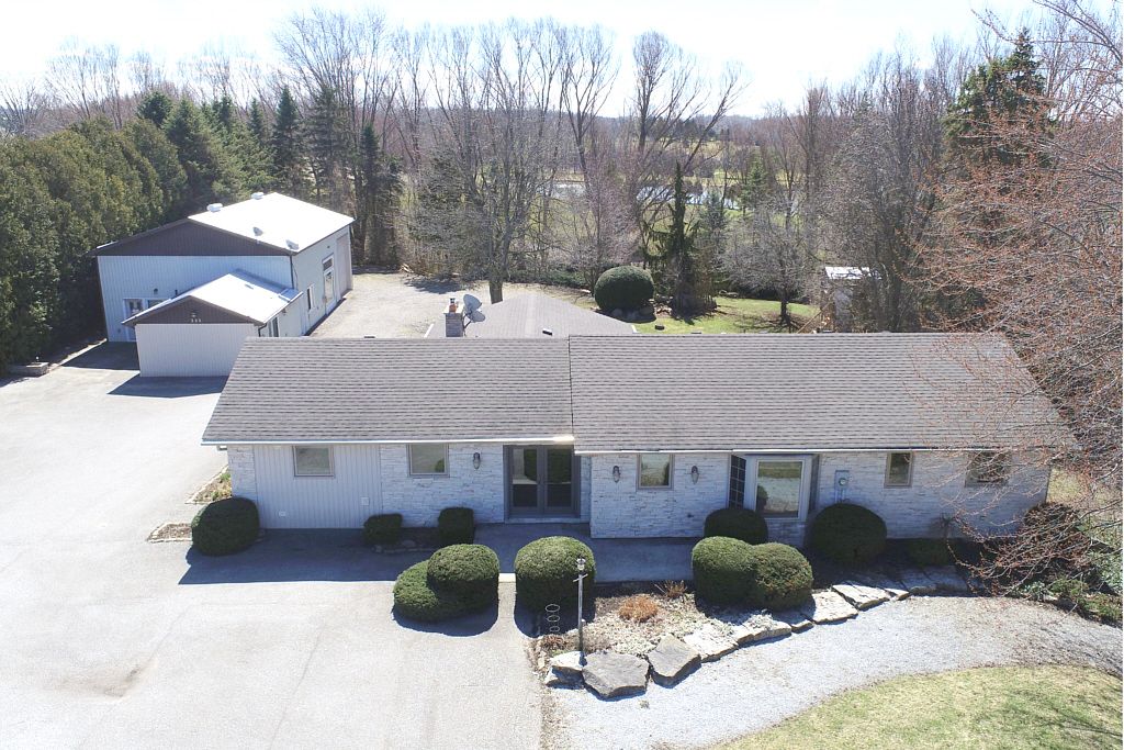 Welcome to this beautiful family home tucked away on large tree-lined ravine lot that feels like a private park. Professionally maintained landscaping w/ many mature trees. Backing to golf course, it's a dream spot w/peaceful views. Home has been thoughtfully updated offering plenty of space w/3+1 bedrooms, 2. 5 baths, separate office w/own entrance. Bright inviting kitchen filled w/natural light, boasts abundant maple cabinetry, large centre island, pantry and separate wet bar area. Adjoining dining space is high lighted by floor- to- ceiling stone fireplace w/gas insert. Cozy living room offers tranquil views and 2nd gas fireplace. Step outside and you'll find a covered back porch, composite deck, hot tub, & gas bbq hookup everything you need for relaxing or hosting friends. The backyard is private and fun, w/a tree house the kids will love, complete w/bunk beds, slide & hydro. Primary bedroom w/ample closet space, ensuite w/soaker tub & separate shower. Finished basement includes large bedroom w/egress window, walk in closet and family room & 2 piece bath. This home has approx. 1870 sq feet of living space plus 900 sq. Feet finished lower level. Additional conveniences include main floor laundry, central vacuum, in-ceiling speakers, alarm system, upgraded trim and doors throughout. Basement professionally waterproofed with a sump pump and battery back up for additional peace of mind. 200 amp hydro driveway repaved 2018, roof reshingled 2019, water heater new 2025. Included is a separate 1,800 sq. Ft. Shop. Currently used as a guest and entertainment space, it includes a kitchen, bedroom, bathroom, laundry, and loft storage. The main area features impressive 14' 5" ceilings, has a large bedroom and four-piece bath. A gas bbq hookup is conveniently located near the cooking area, and a golf cart garage is located at the rear. This versatile space is ideal as an in-law suite, guest house, entertainment centre, or a private retreat for young adult family members.