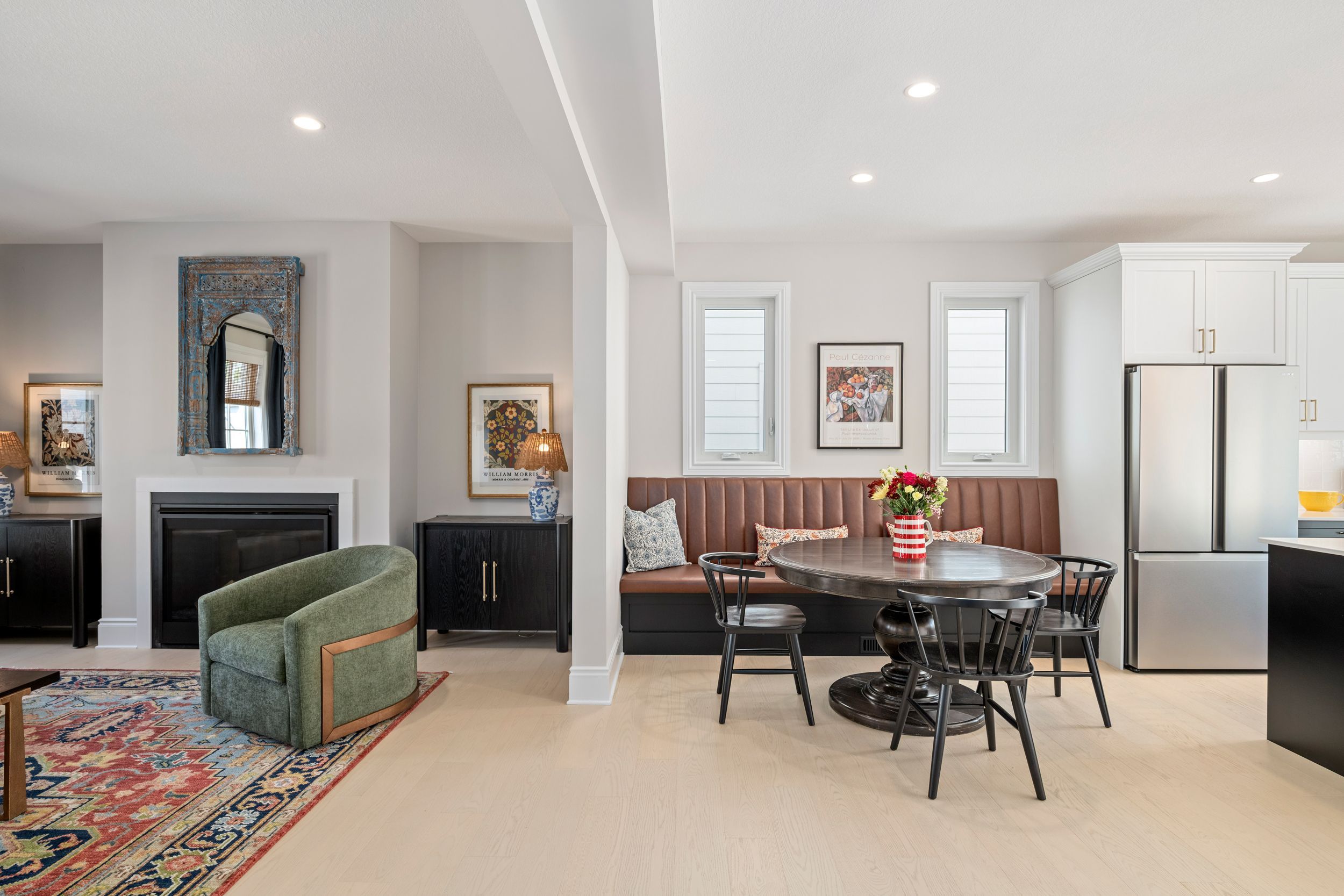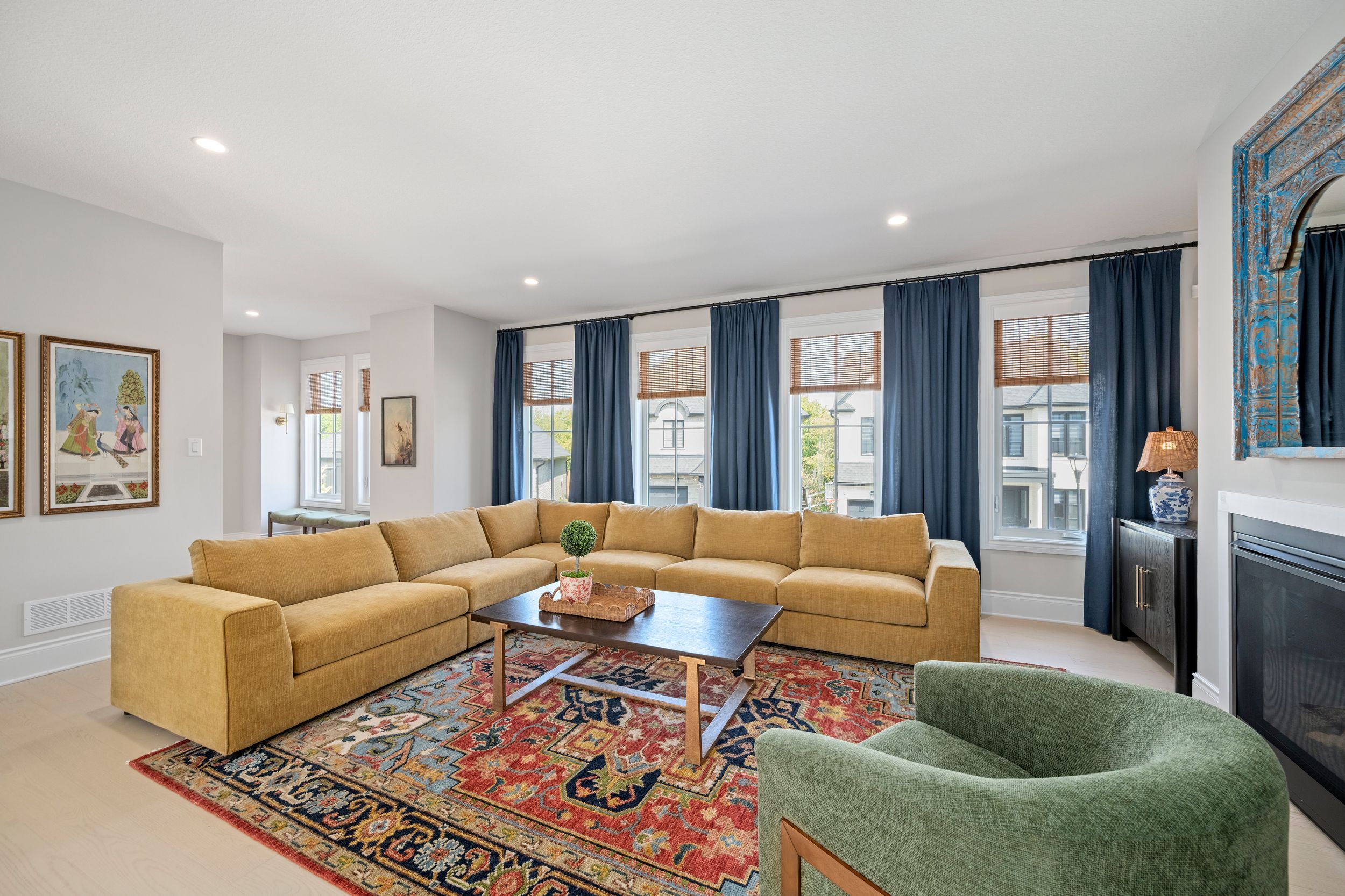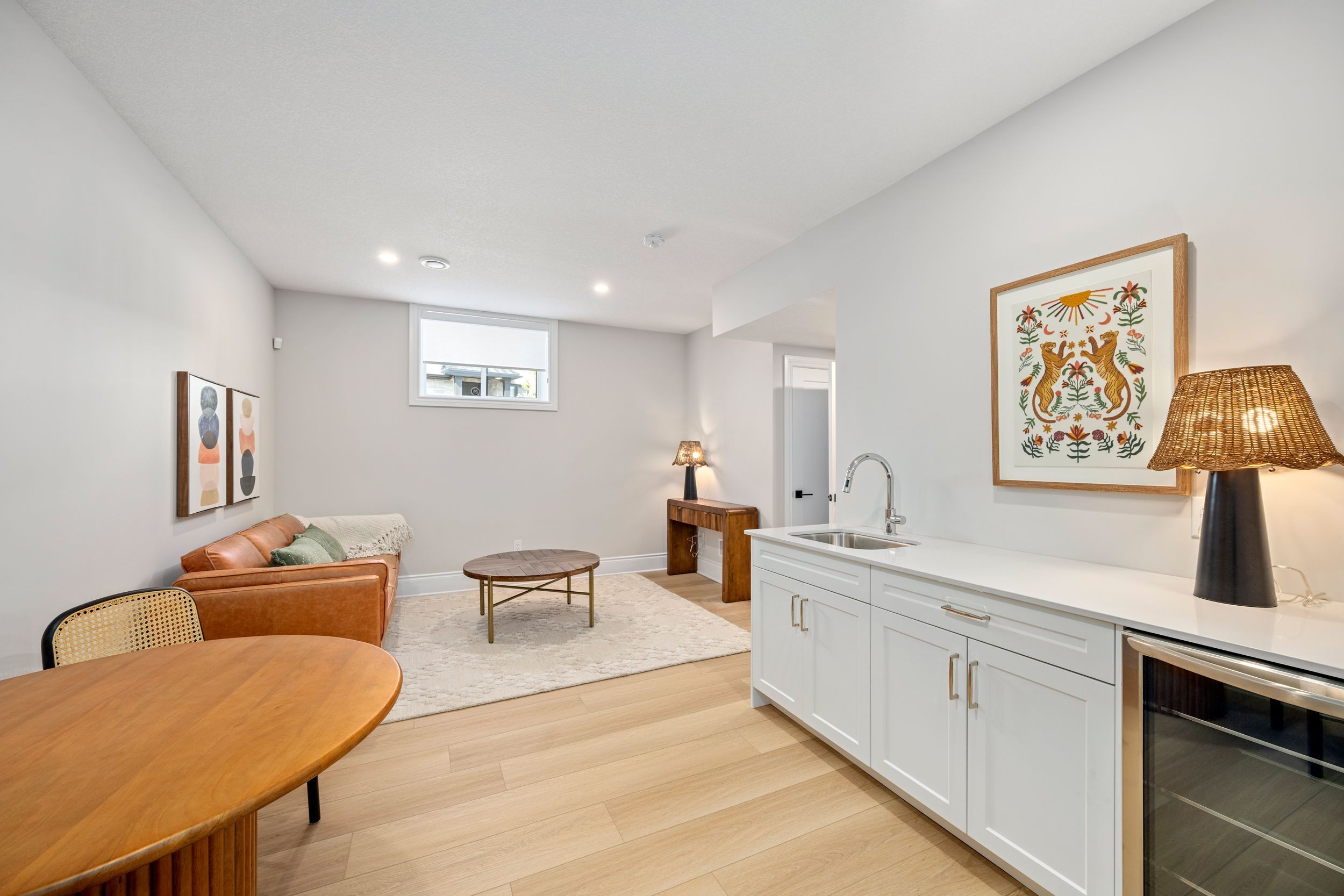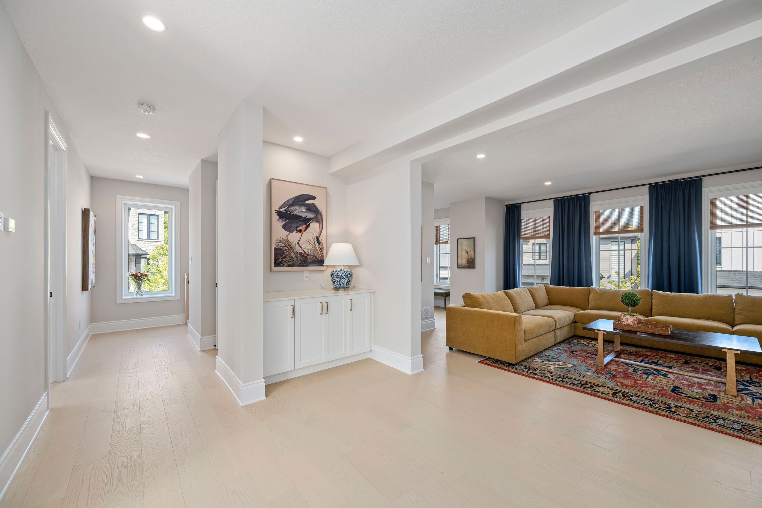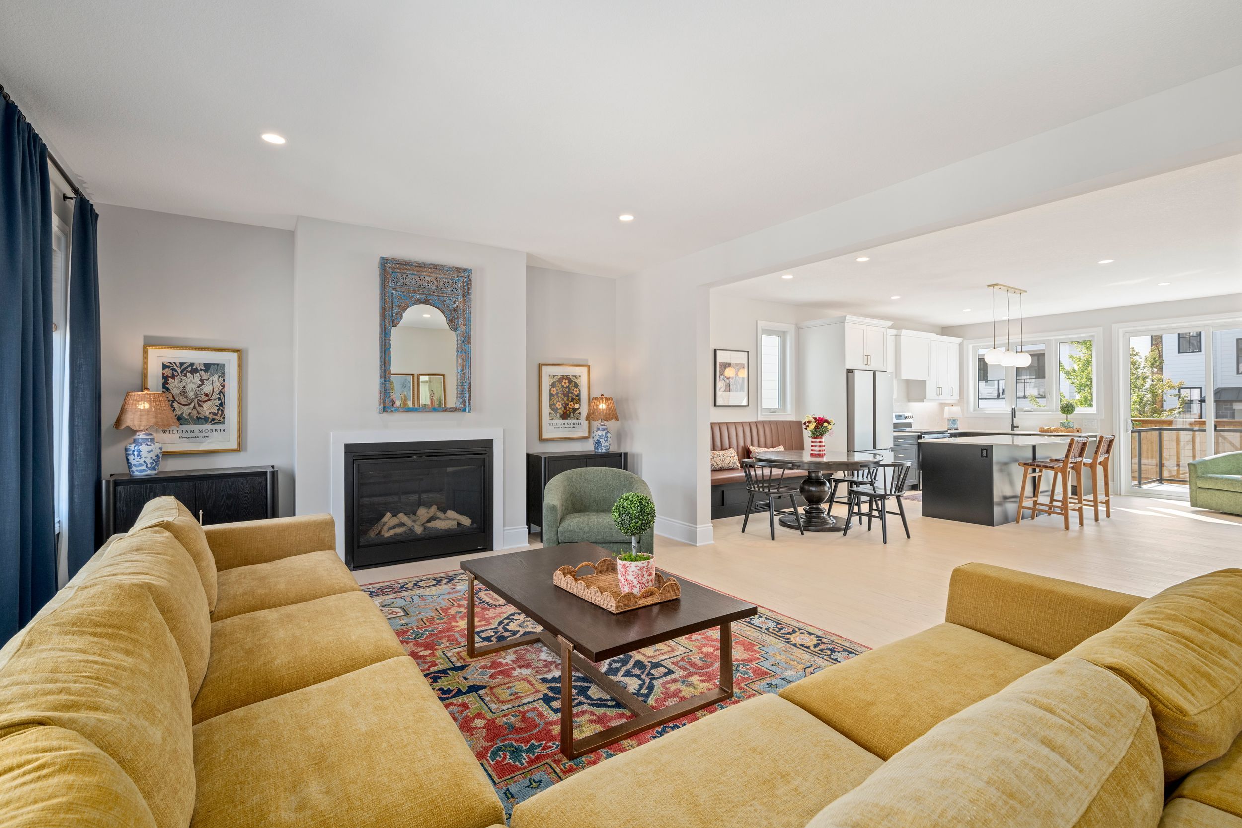 • Modern kitchen with quartz surfaces and seamless flow to living areas.