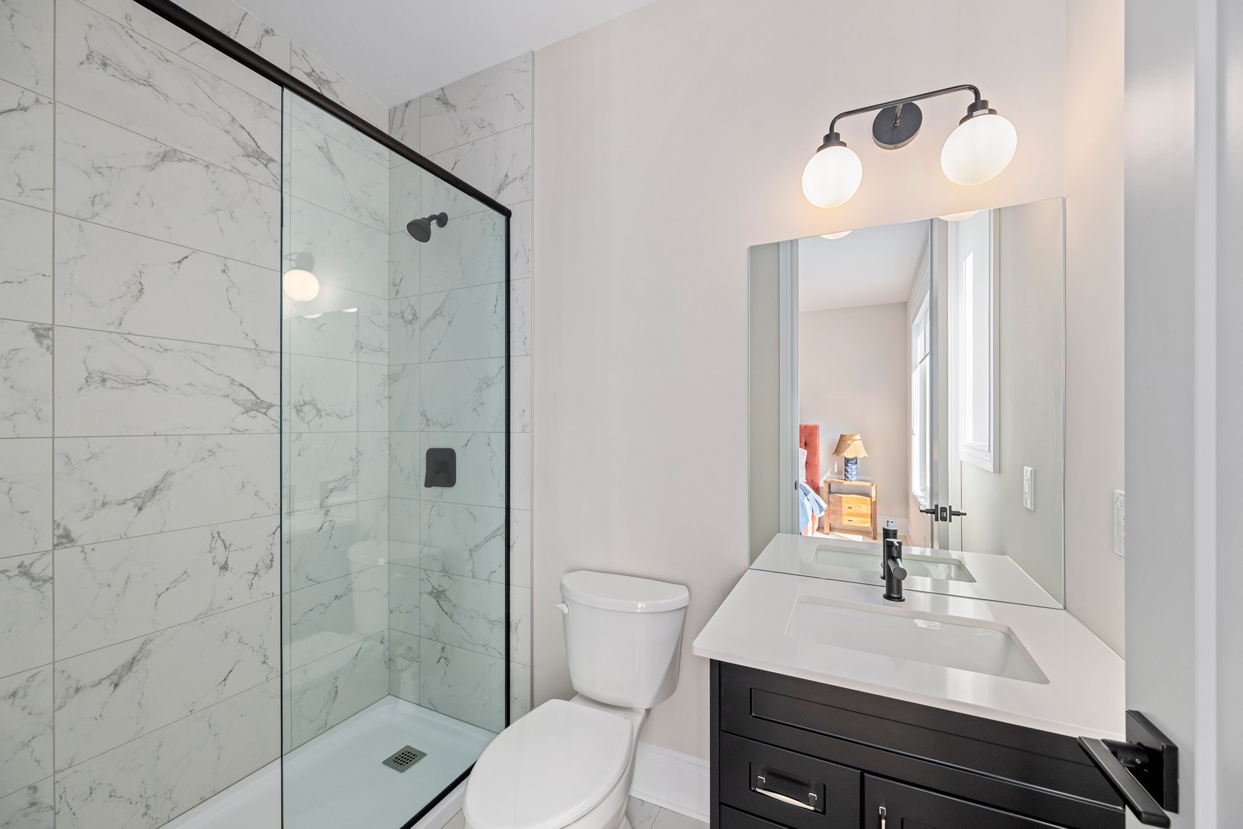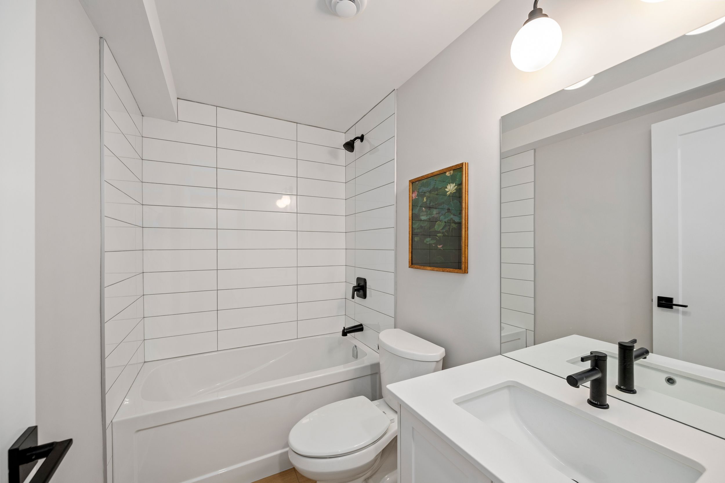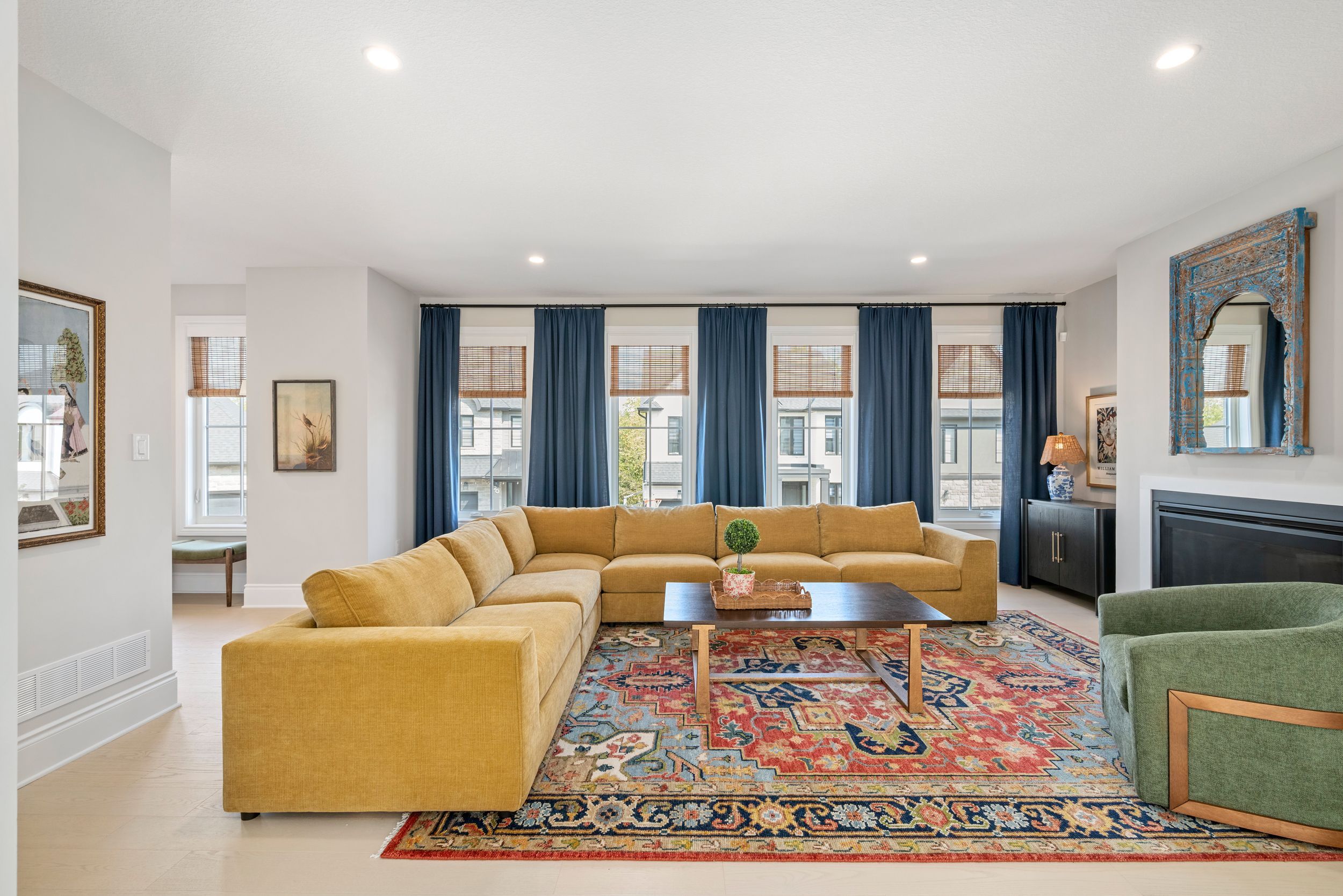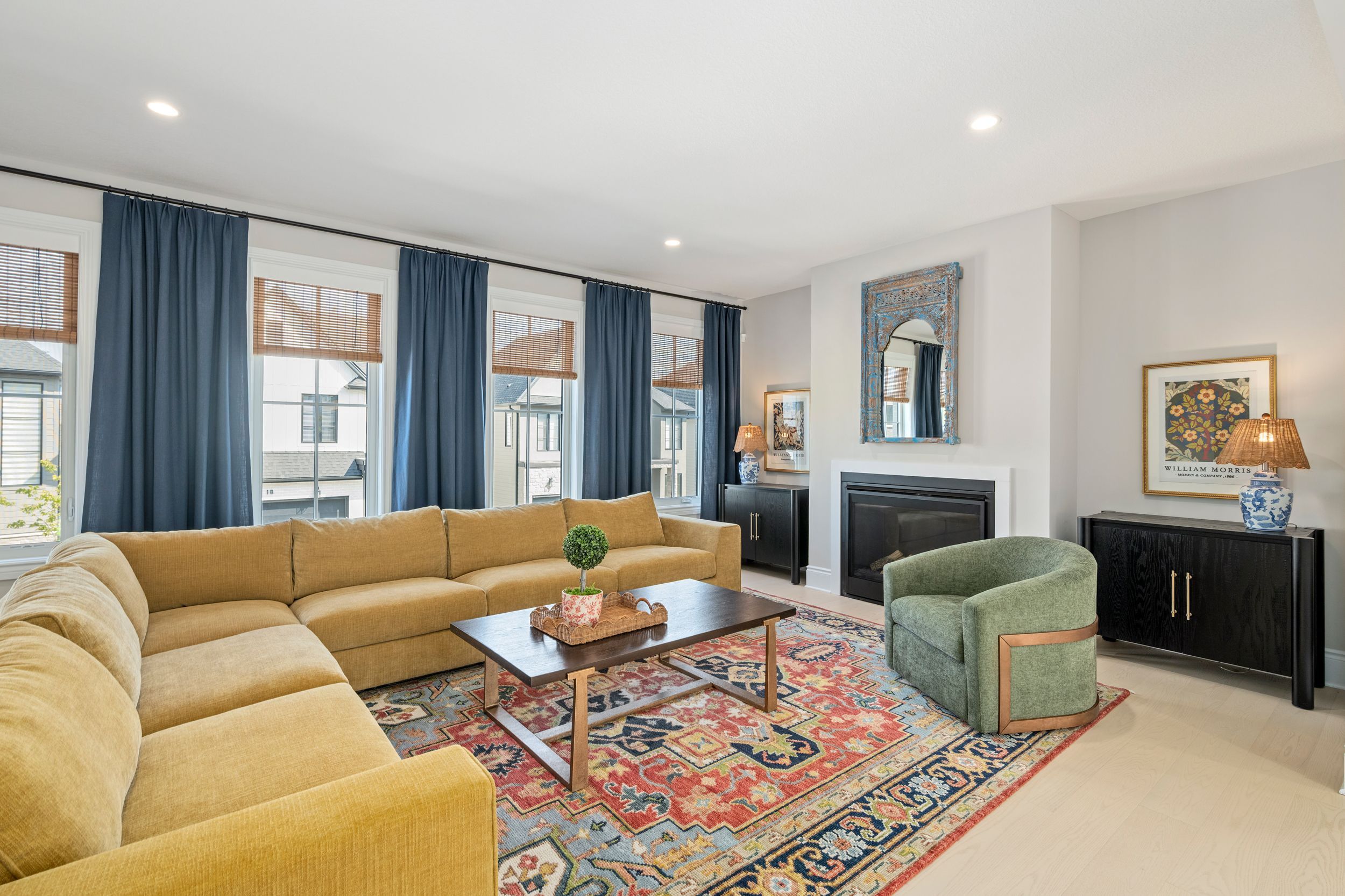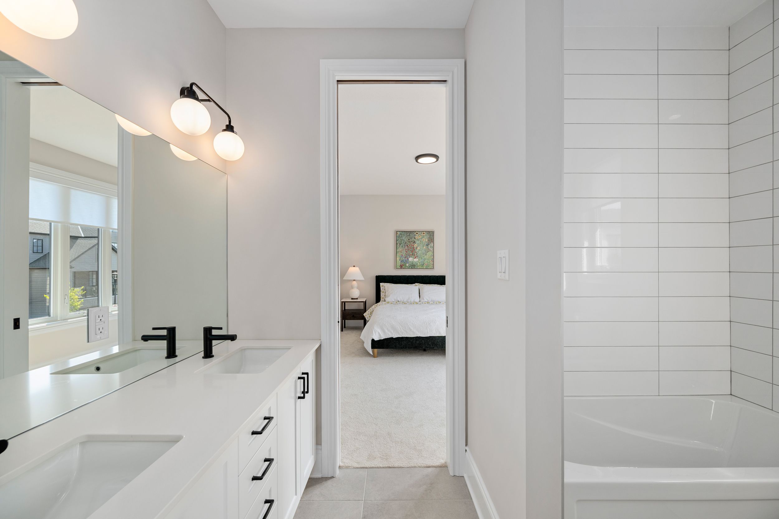 • Modern kitchen with quartz surfaces and seamless flow to living areas.