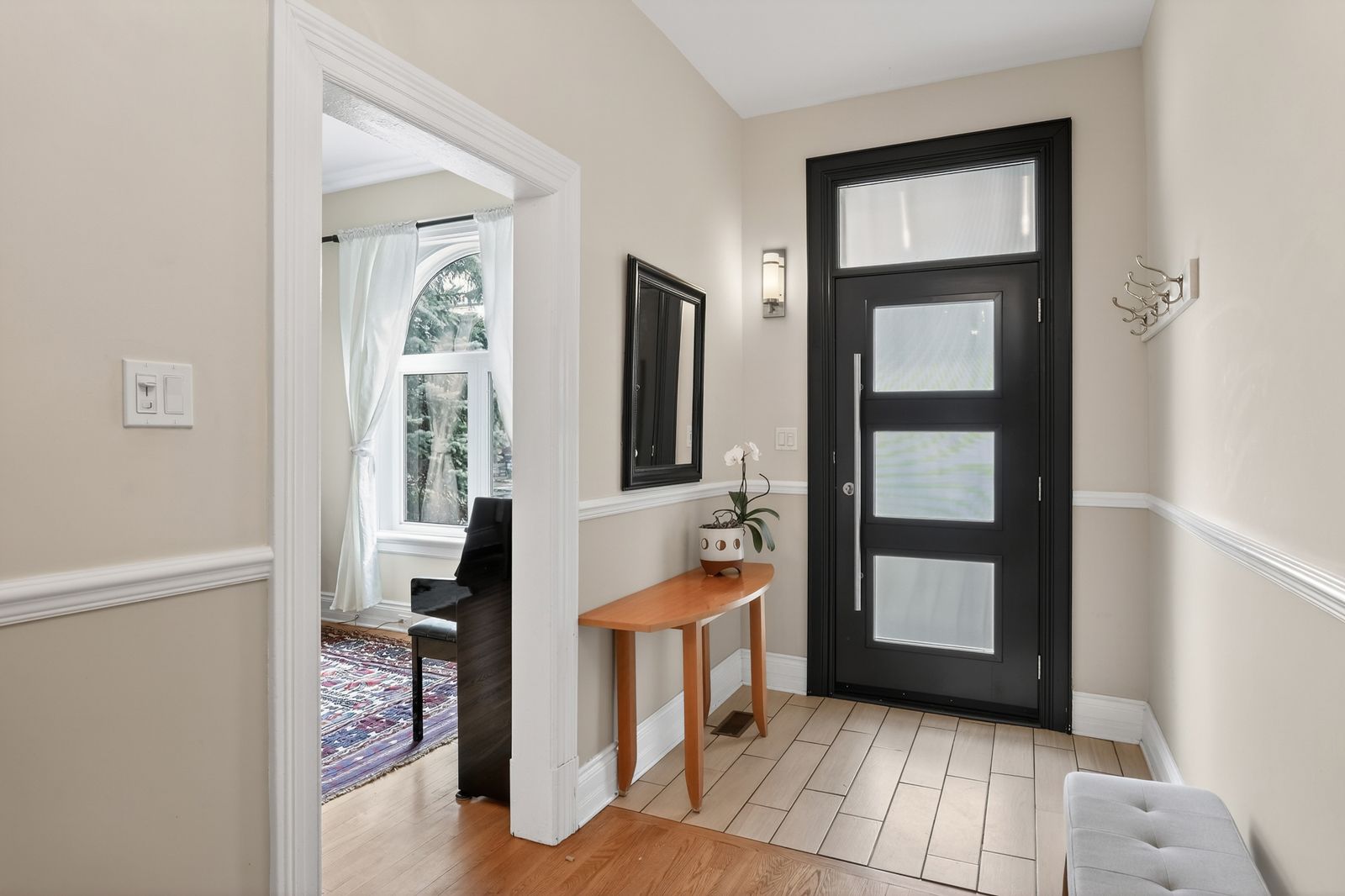 • Beautifully designed front porch with glass panels and potlights.