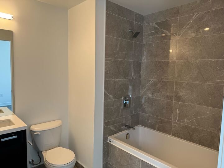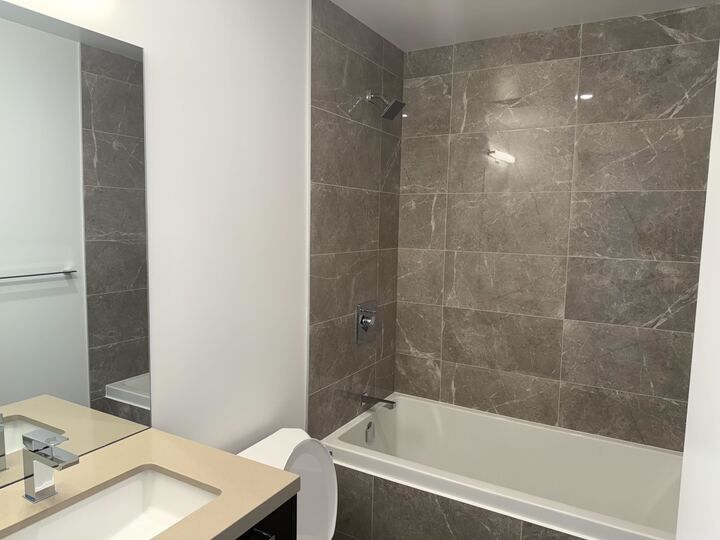 Brand new two-bedroom suite at bauhaus condos offering 782 sq ft of thoughtfully designed interior space plus a 116 sq ft private balcony. This bright and functional layout features a spacious open-concept living and dining area framed by floor-to-ceiling windows and a full window wall that fills the home with natural light. Exposed concrete ceilings and columns add a modern loft-style aesthetic, complemented by sleek laminate flooring throughout. The contemporary kitchen is equipped with stainless steel appliances, quartz countertops, and clean-lined cabinetry, seamlessly integrated into the main living space. The large balcony extends your living area outdoors, ideal for relaxing or entertaining with open city views. Both bedrooms offer generous proportions and closet space, while the modern bathrooms feature stylish finishes and deep soaker tubs. In-suite laundry provides added convenience. Located in the heart of king east's design district, steps to transit, restaurants, cafés, shops, parks, and minutes to the distillery district, st. Lawrence market, and the financial core. An exceptional leasing opportunity in one of downtown toronto's most sought-after neighbourhoods.