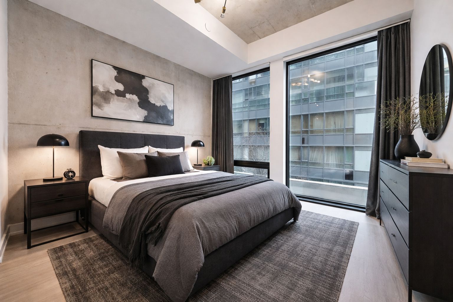 Welcome to bauhaus! Never lived-in, brand new approx. One bedroom + den floor plan, this suite is perfect! Stylish and modern finishes throughout this suite will not disappoint! 9 ceilings, floor-to-ceiling windows, exposed concrete feature walls and ceiling, stainless steel appliances and much more! The location is unbeatable. Situated in the heart of downtown, you're steps from the king streetcar, st. Lawrence market, and the distillery district. Enjoy easy access to toronto's financial district, vibrant nightlife, acclaimed restaurants, cafes, and everyday conveniences. Experience the best of urban living with everything you need right outside your door. Move in today and enjoy the energy of downtown toronto!
