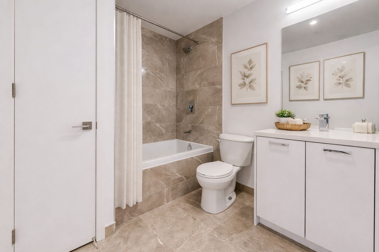 • Stylish modern finishes with 9-foot ceilings and floor-to-ceiling windows.