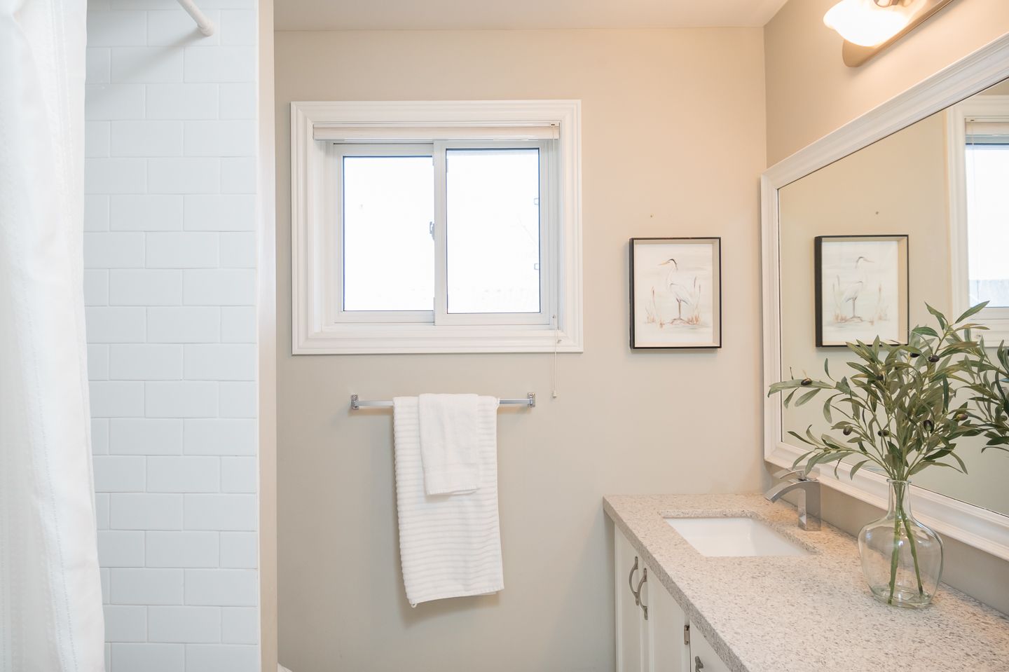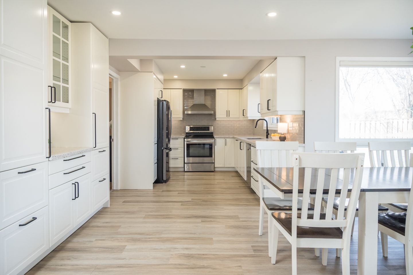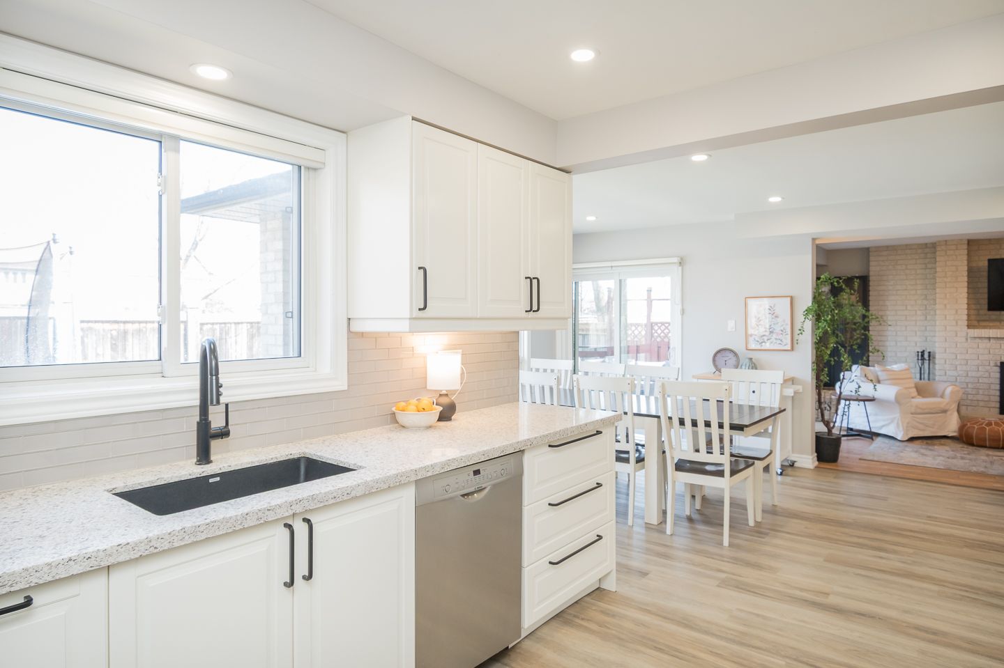 • Renovated kitchen with quartz countertops and stainless steel appliances.