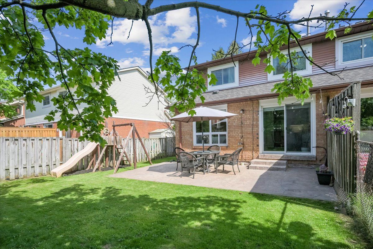 Fully renovated on a big lot with privacy. Welcome to river oaks livingdiscover this rare semi-detached gem in the heart of oakville's sought-after river oaks community. Offering nearly 1,500 sq ft of beautifully updated living space plus a fully finished basement, this turnkey home blends modern comfort, functionality, and family-friendly charm. Step inside to find a bright, open layout enhanced by new flooring, smooth ceilings, pot lights, and fresh finishes (2024/2025). The stunning 2022 kitchen showcases 40" wall cabinets, italian quartz countertops, stainless-steel appliances including double ovens, and an otr microwave vented to the exterior. Upstairs, spacious bedrooms feature new flooring, lighting, and popcorn-free ceilings, creating a clean and contemporary feel. The finished basement adds valuable living space with a cozy fireplace and versatile rooms ideal for a playroom, office, or family hangout. Outside, enjoy your private backyard and a generously sized lot offering excellent privacy. Recent big-ticket upgrades provide peace of mind: new furnace, a/c & humidifier (2025) roof (2020, 35-year warranty) triple-glass windows & patio door (2020/2023) insulated garage door (2019) & new entry door (2025) new doors, baseboards, window facings, and wooden stairs (2024/2025)perfectly positioned, this home is just steps to top-rated schools, community centres, trails, parks, and oakville trafalgar memorial hospital with easy highway access.