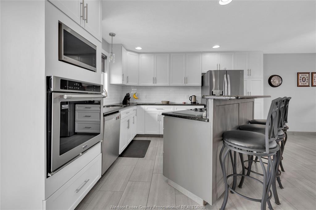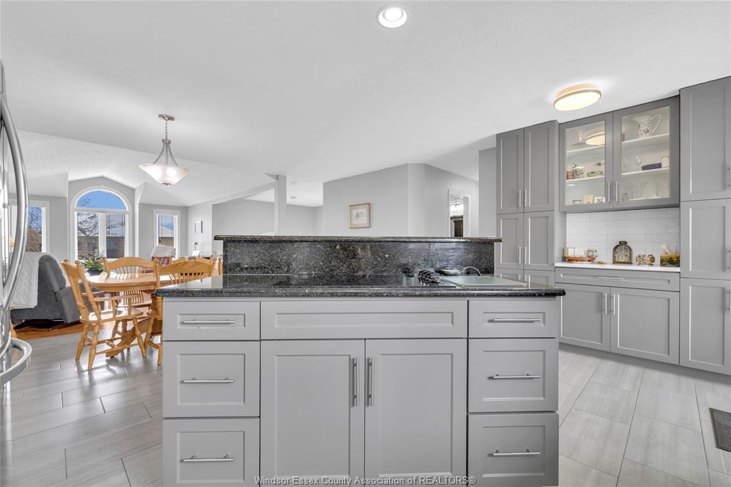 • Open-concept kitchen with granite countertops and stainless steel appliances.