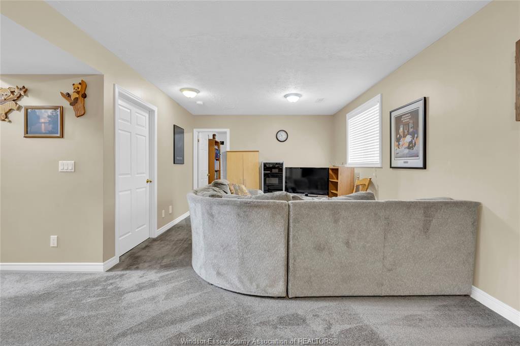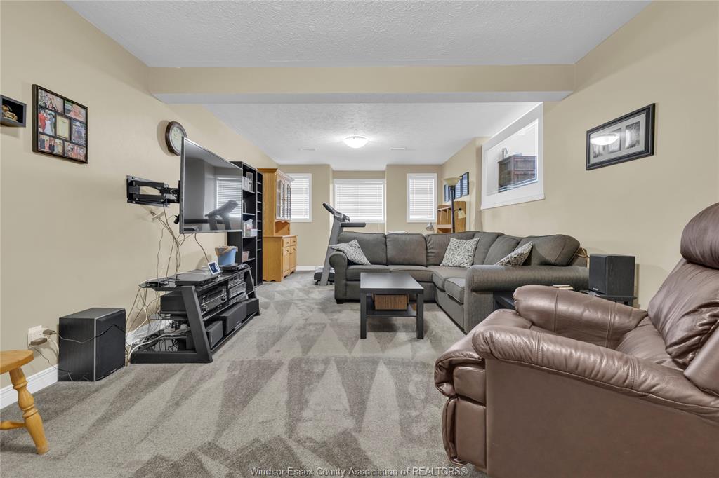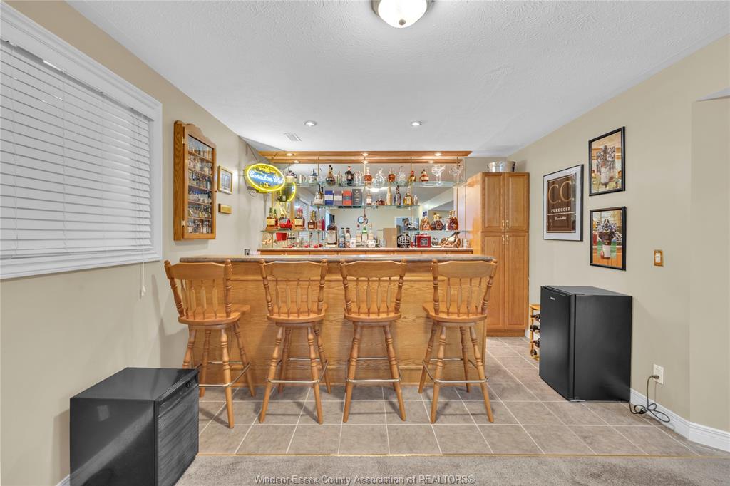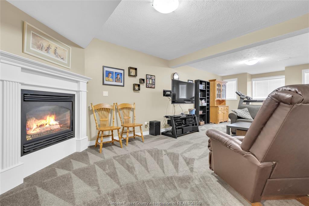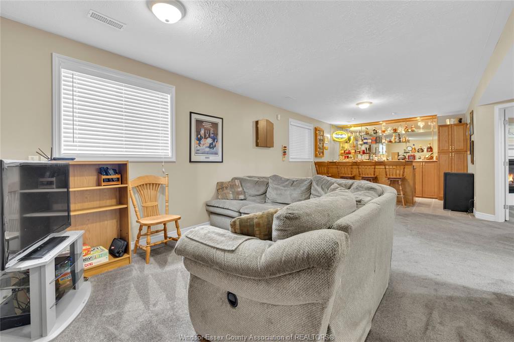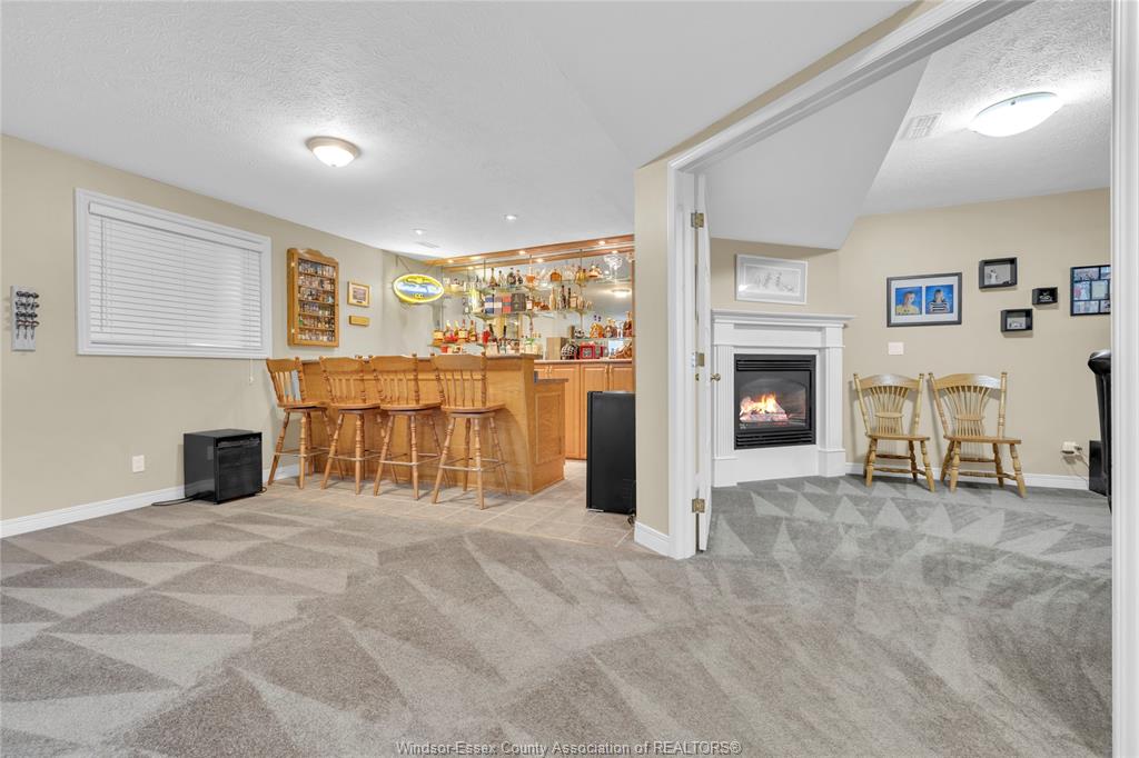 • Spacious lower level with family room, gas fireplace, and bar area.