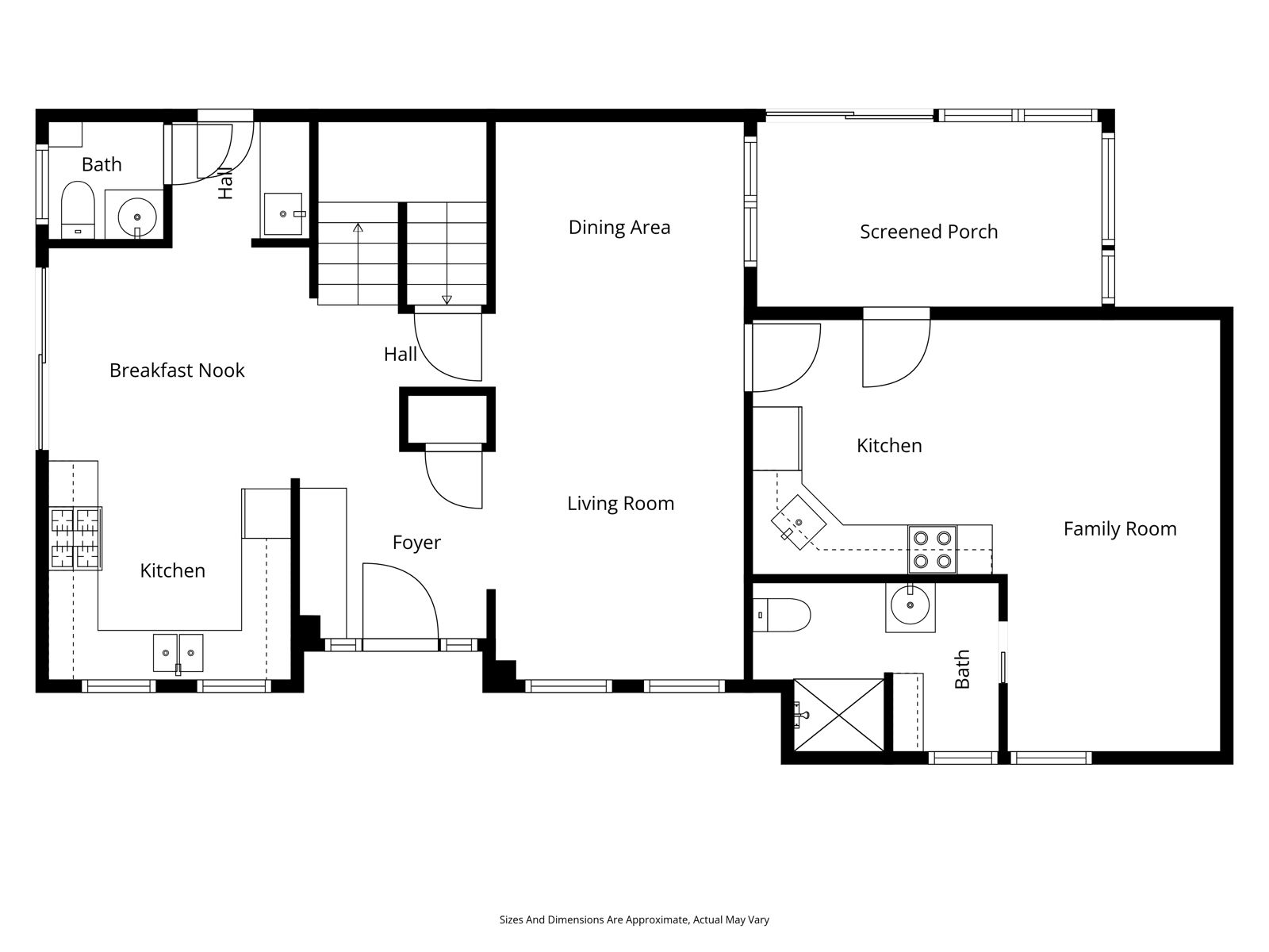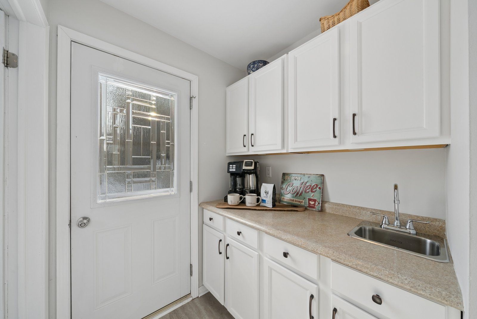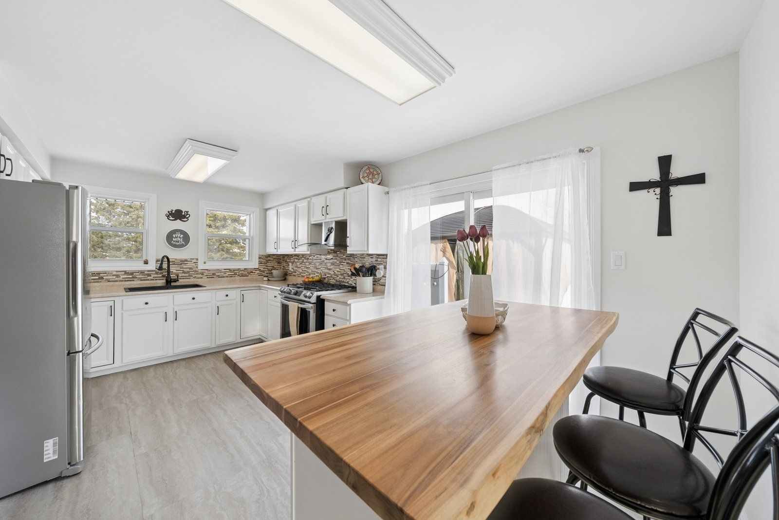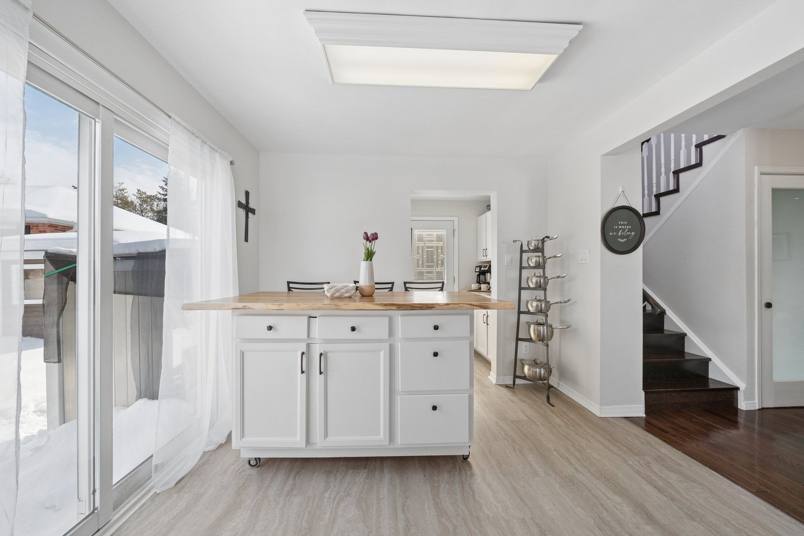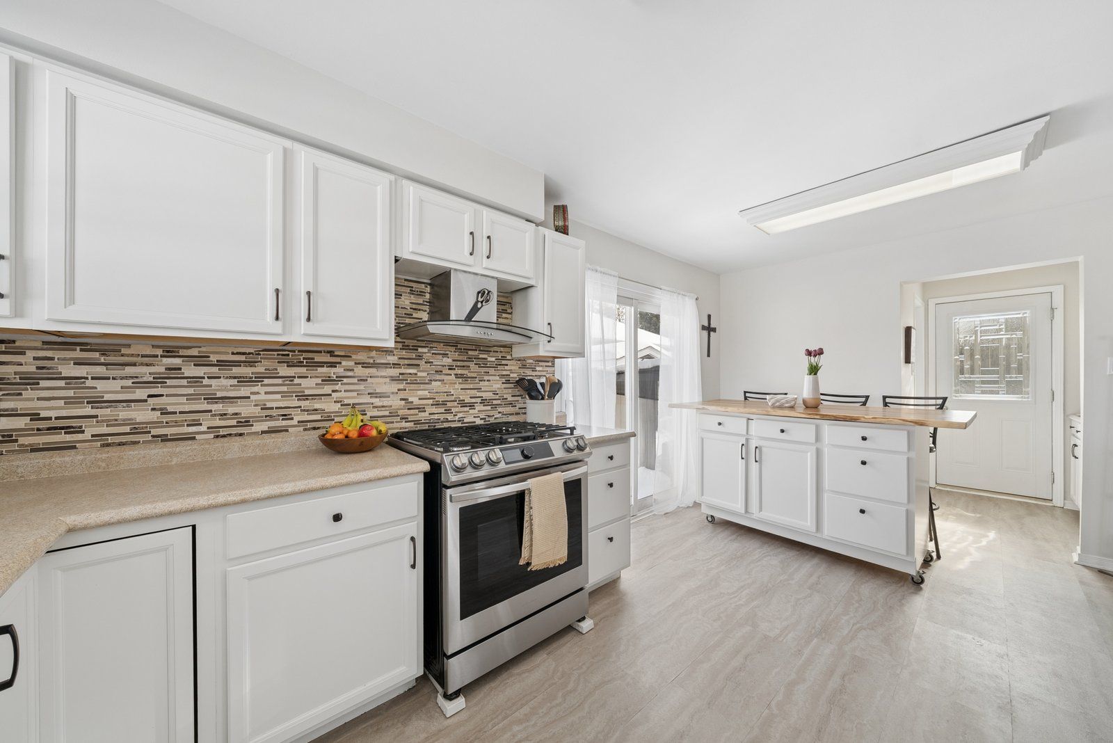 • Spacious kitchen with movable island and convenient pantry area.