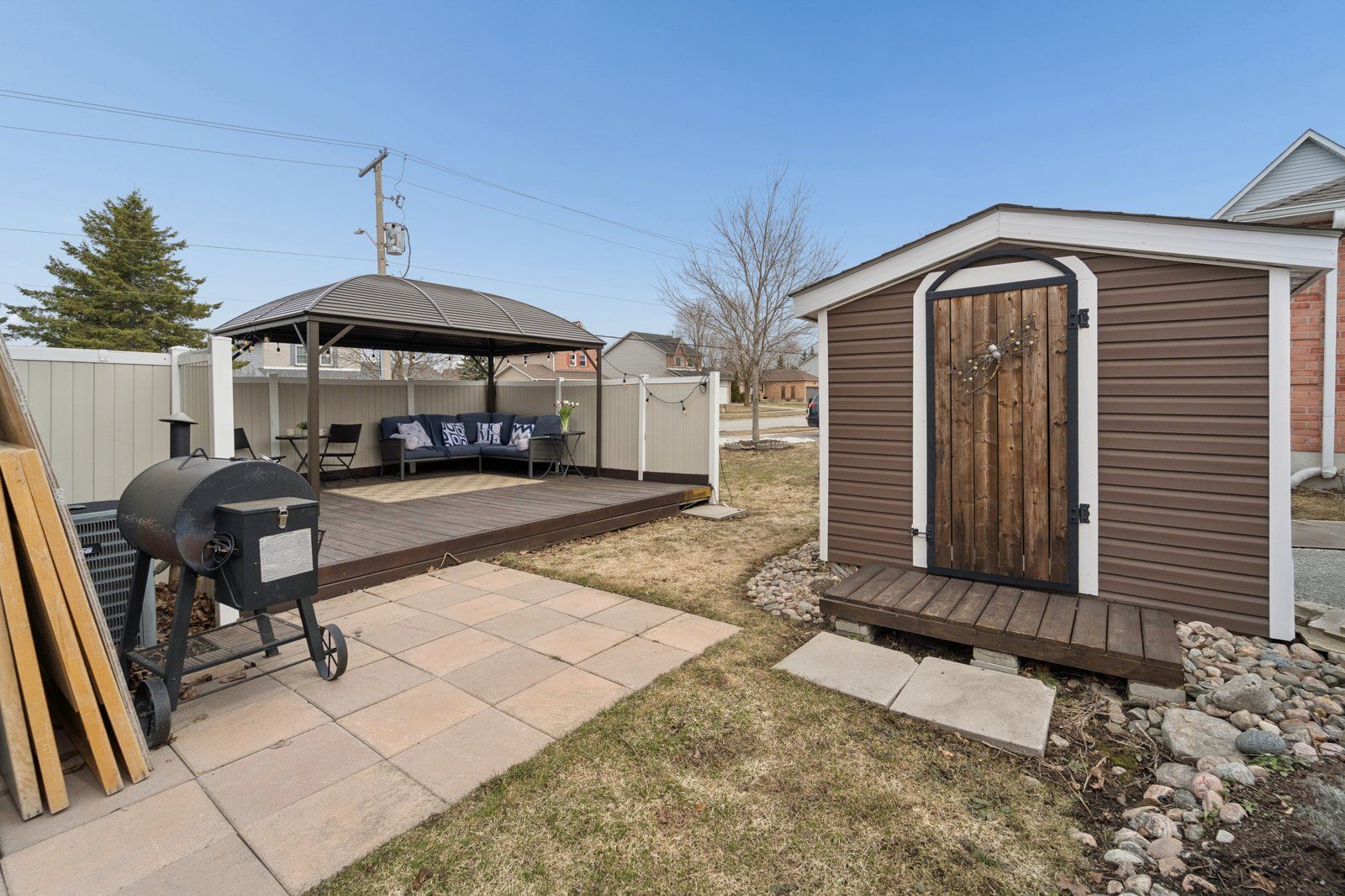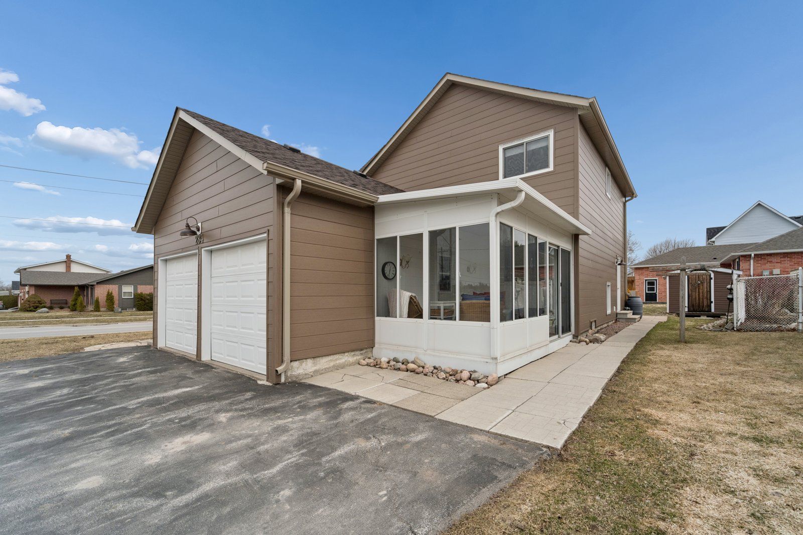 Nicely updated northward 3 bedroom, 2 storey family home with main floor professionally finished studio / in-law apartment on a spacious corner lot centrally located in lindsay, close to schools, parks & amenities! Numerous updates include gorgeous hardwood floors and hardwood stairs, a 3-season sunroom with entrance into the apartment. Lots of versatility in this spacious home to suit all your family's needs; use this finished main floor space as either an awesome sunken family room or main floor primary bedroom suite or guest bedroom! This home features newer windows, roof'23, soffits, eaves & upgraded plank vinyl siding'24, furnace'19, self-contained apartment that was finished (with permits) in the double car garage & includes a kitchen, family room/ bedroom area, 3pc bathroom with walk-in shower, storage area & separate entrance. (see att'd floor plans). This bright & sunny home is great for entertaining with the combined living & dining room, the spacious kitchen with movable island. Bonus pantry/coffee bar that is conveniently located in the hallway that leads to the 2pc bath & rear door to the backyard. This well-appointed kitchen also has a sliding patio door to the sideyard deck with gazebo allowing for comfortable alfresco dining in the warmer weather. Or enjoy the sunshine in the cozy 3 season enclosed porch. The 2nd floor is graced with 3 spacious bedrooms, upgraded barn closet doors, newer berber carpet throughout & updated 4pc bath. The primary bedroom has a 3pc ensuite bath & huge walk-in closet. There is also additional family space in the finished basement allowing for a comfy rec room for family games & movie night, with built-in closets & lots of storage space, plus a separate office space or craft/playroom with large closets. Finally the utility room with laundry, more cabinets, laundry sink & sump pump . Lots of parking to accommodate tenants. This property allows for several private outdoor patio areas. Great family home in a great community!