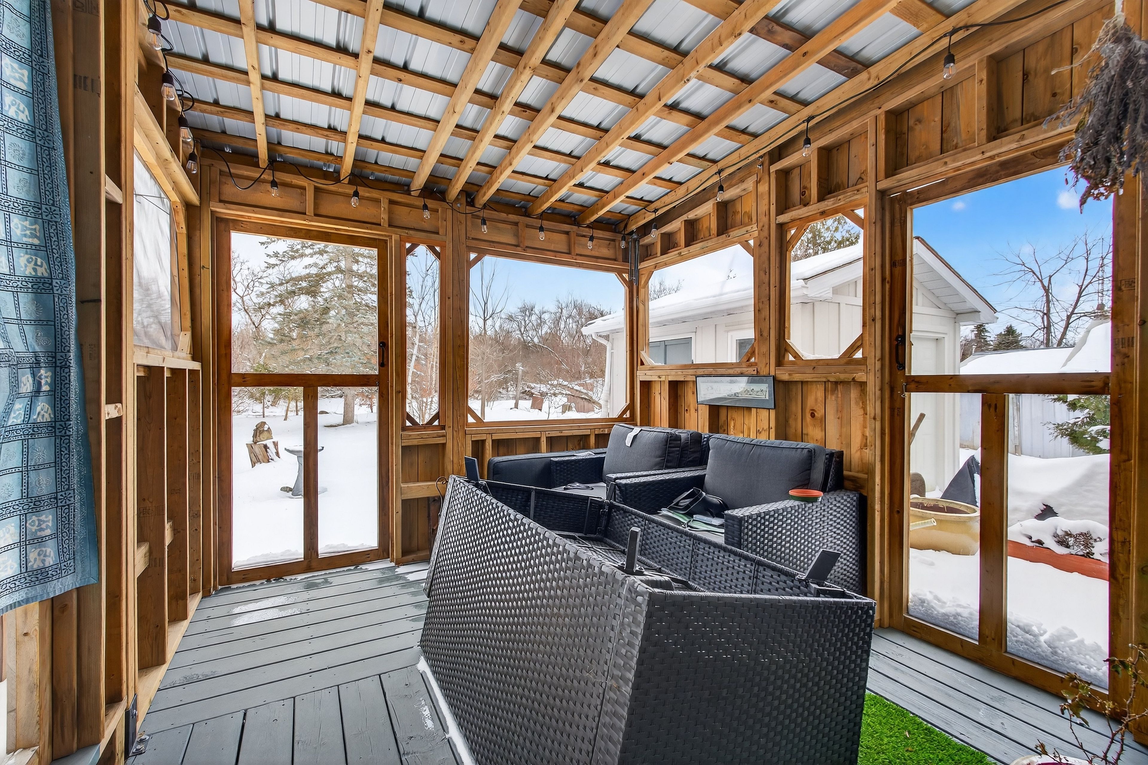 Welcome to your perfect blend of country charm and modern comfort in the heart of camden east village-just 20 minutes from kingston. This beautiful, move-in ready home offers the warmth and character of a classic country property, highlighted by stunning exposed beams and dark wood laminate floors that look hand scraped, while seamlessly incorporating modern updates throughout. Recent upgrades include a new furnace with a/c and heat pump system for year-round efficiency, as well as a newer roof for peace of mind. Inside, the home offers 3 spacious bedrooms and 2 full bathrooms, along with the convenience of main floor laundry and a dedicated main floor office-perfect for working from home or a quiet study area. The large, open-concept living and dining space is filled with natural light from oversized windows, highlighting the home's unique character. You'll appreciate the beautiful exposed beams, substantial trim, and detailed window moldings, while updated flooring and refreshed kitchen bring a clean, modern feel to the space. Upstairs you will love the 2 large bedrooms and the 2nd full bathroom. Step outside to enjoy the beautifully landscaped property, complete with lush gardens and a spacious backyard-perfect for relaxing or entertaining. Additional outdoor features include a charming screened in gazebo, a large storage shed and a large deck perfect for backyard bbqs . The attached 2-car garage provides ample space and convenience and includes a dedicated workshop located at the back of the garage for hobbies or storage. Rounding out this well-appointed property. Set in a welcoming village atmosphere with easy access to kingston, this home offers the best of both worlds-peaceful country living with modern amenities close at hand
