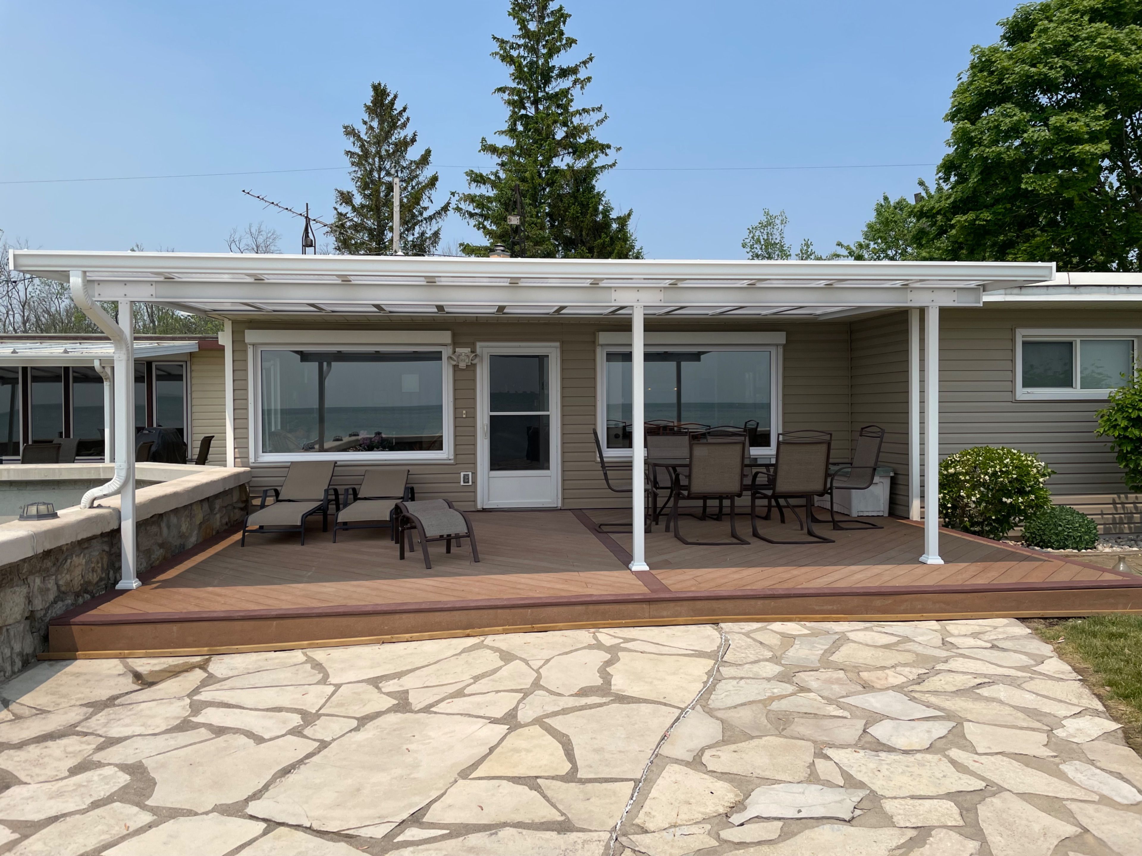 • Low-maintenance outdoor space with TREX-style decking and beautiful flagstone patio.