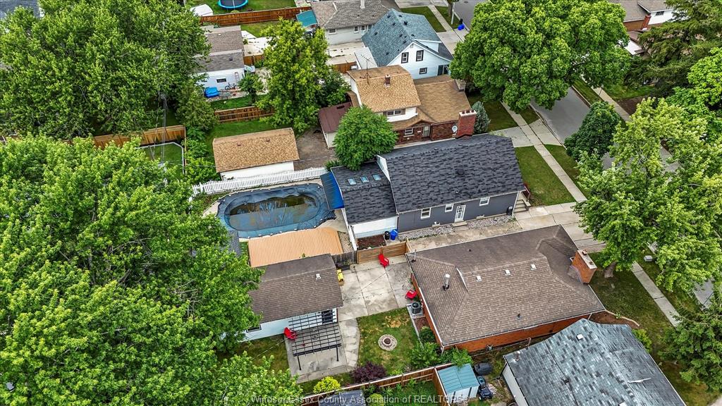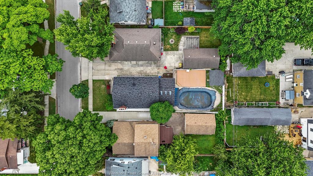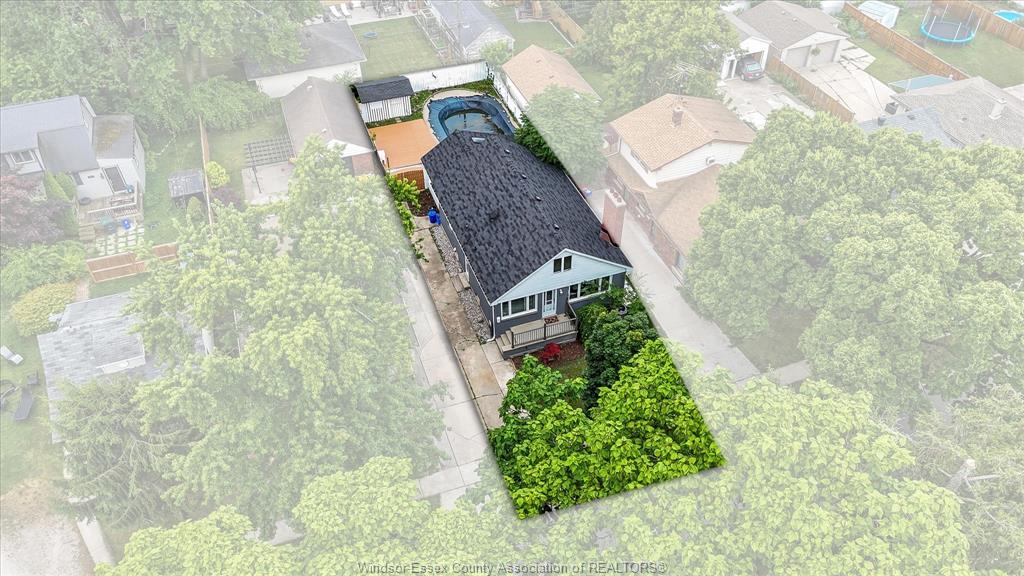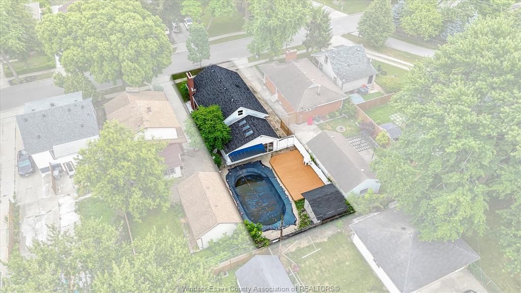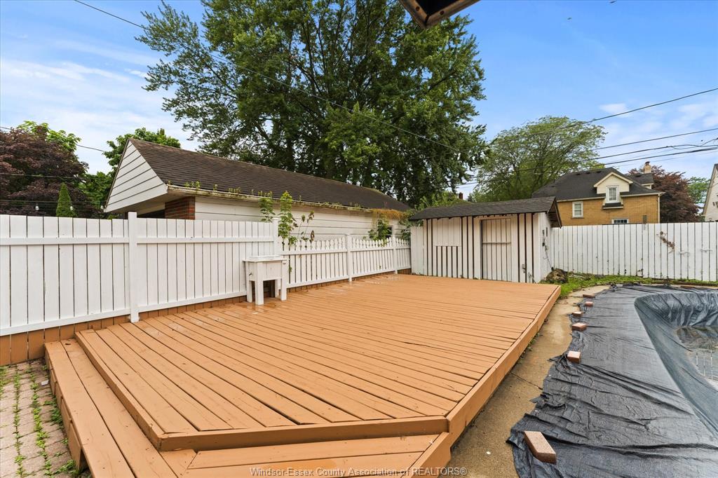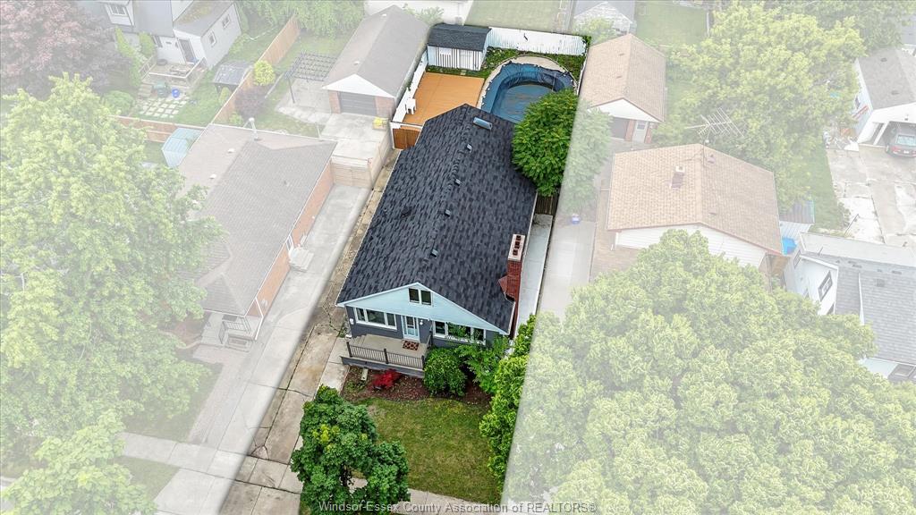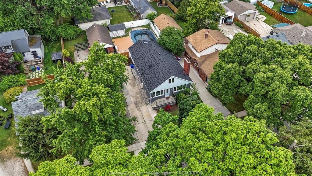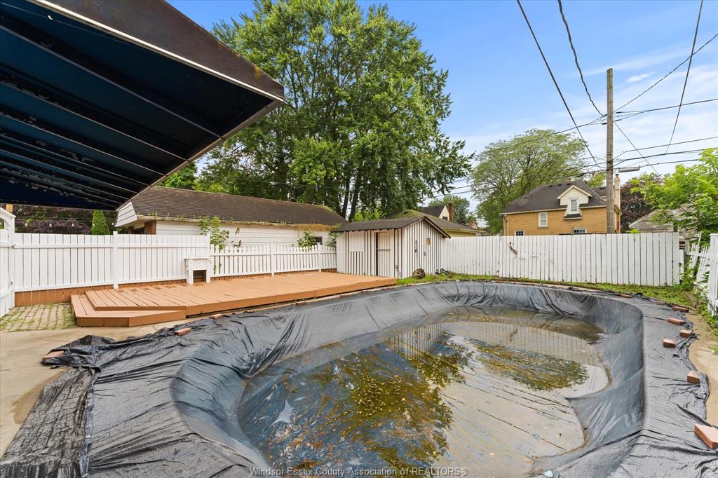 • Fenced backyard features an in-ground pool and pool house for summer fun.