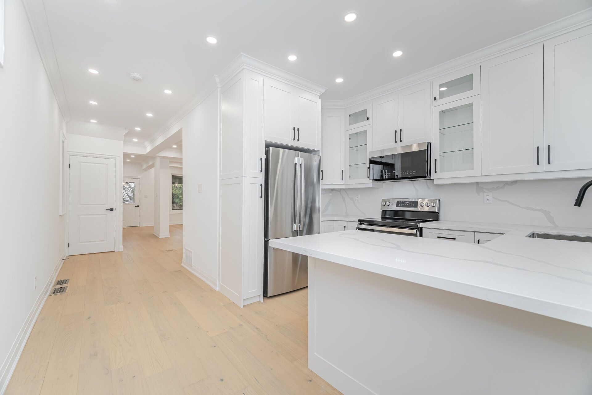 Welcome to 285 charlton ave w, a stunning fully renovated 4 bedroom, 3 bathroom home in the heart of hamilton. This beautifully updated property combines modern luxury with timeless charm. Featuring striking exterior finishes and gorgeous curb appeal, every detail has been thoughtfully designed. Inside, you'll find an open concept layout with new drywall and paint, sleek trim and doors, elegant hardwood floors, pot lights throughout, and high ceilings with crown moulding and coffered details. The chef's kitchen offers quartz countertops, stainless steel appliances, and a stylish modern design that is perfect for entertaining. Each of the three bathrooms has been tastefully renovated with led vanity mirrors, black matte hardware, and contemporary finishes. Enjoy the peaceful second floor terrace overlooking lush greenery, or retreat to the private third floor primary suite complete with a walk-in closet, pot lights, and a spa-inspired three piece ensuite. The finished basement features a separate entrance, an additional three piece bath, and a spacious recreation area that provides flexibility for guests, in-laws, or extra living space. Step outside to a private backyard with fresh sod and a double driveway at the rear for convenient parking. Located in the desirable kirkendall neighbourhood, you are just steps from trendy locke street with its boutique shops, cozy cafes, and local restaurants. Close to trails, parks, schools, hospitals, and with easy access to highway and the hamilton go centre, this home offers the perfect blend of style, comfort, and convenience. Modern living in one of hamilton's most sought-after communities awaits you.