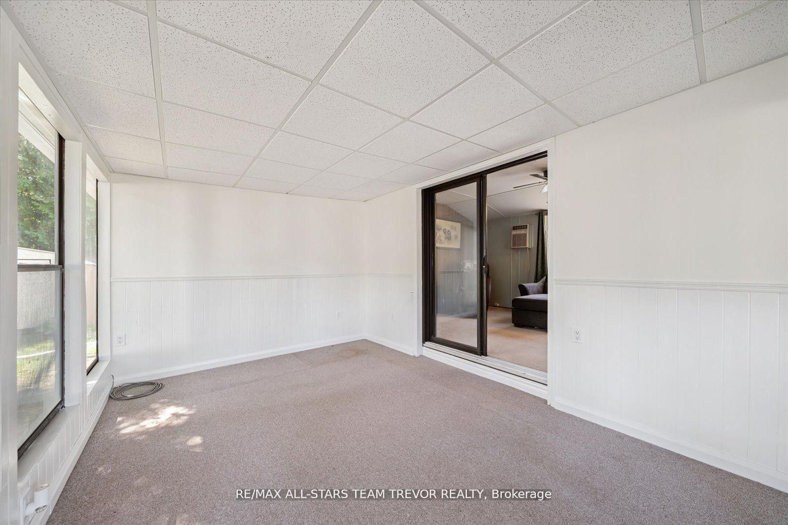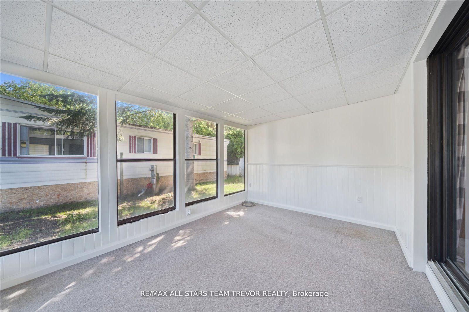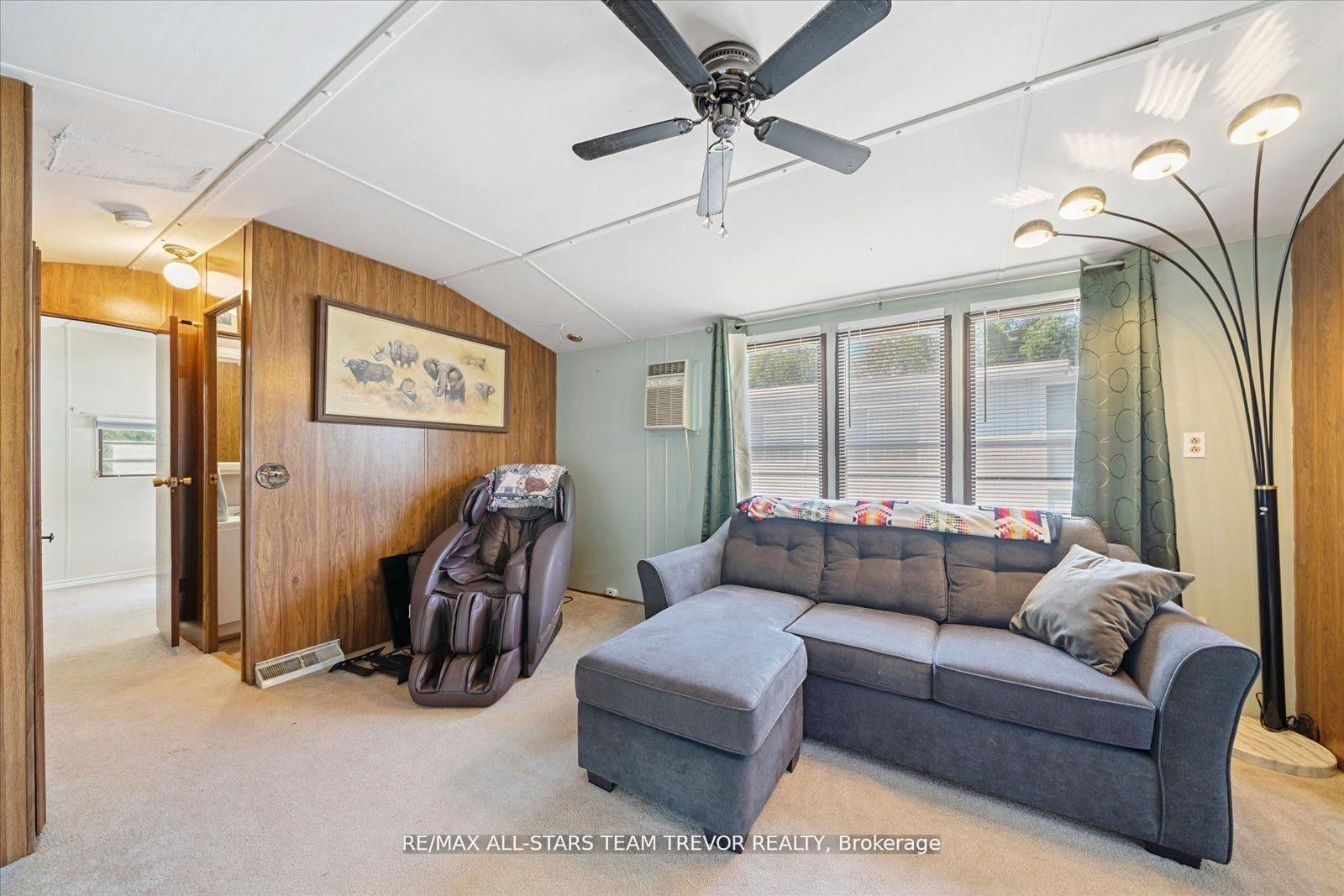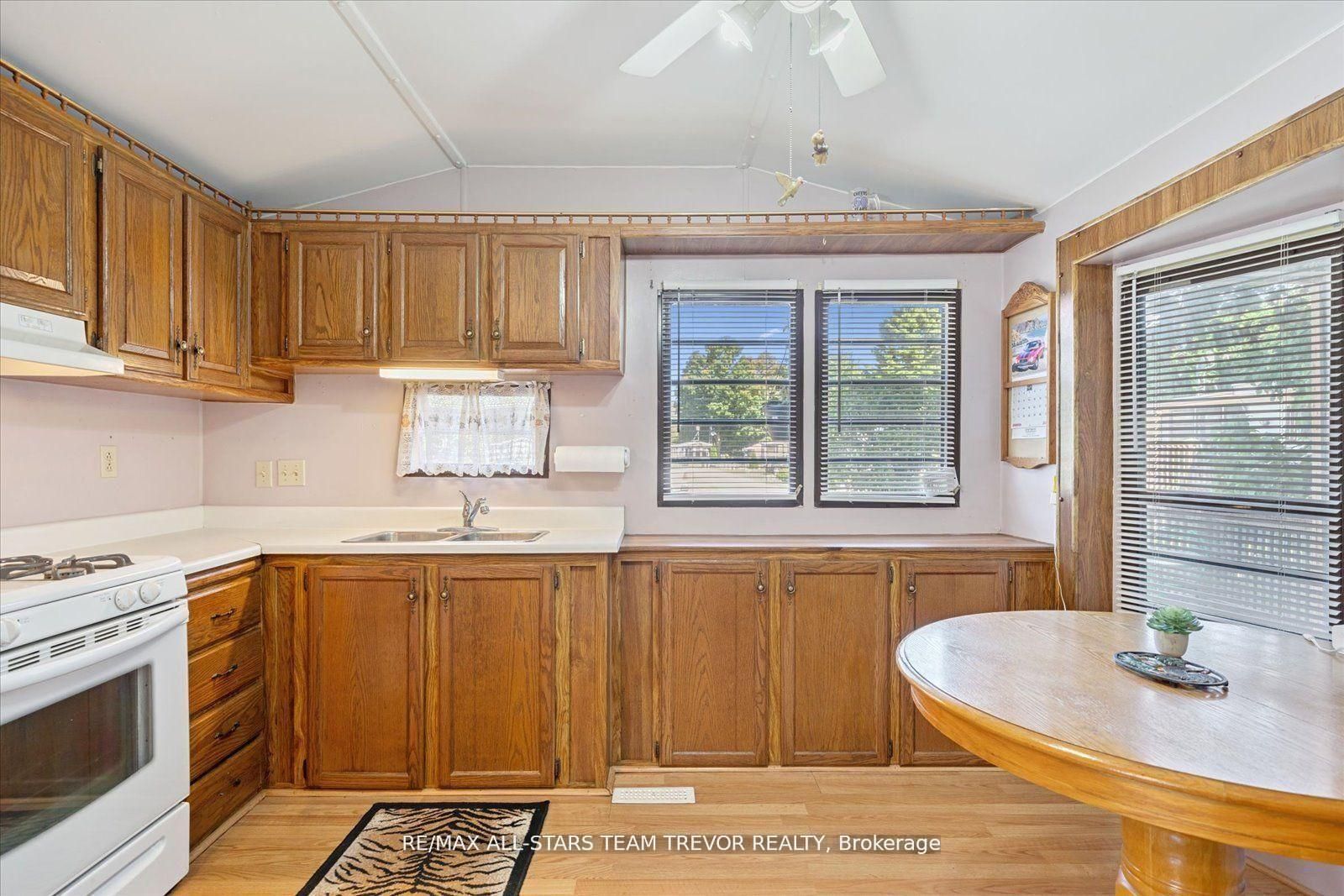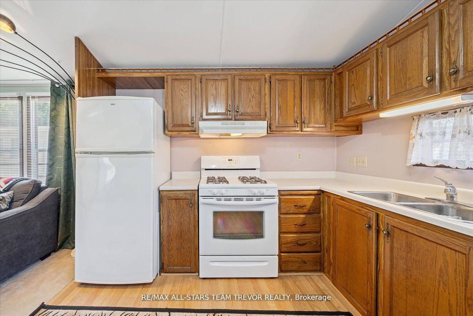 Enjoy year round living at lyndhurst park & golf course, a 55+ adult community, offering a social setting with an opportunity for affordable living, & private, serene surroundings. This two bedroom, one bathroom home backs on to the black river & offers ample outdoor areas for relaxing, bbqing, entertaining or gardening with a shed to store all of your equipment, tools & toys. The bright open living room boasts multiple windows and a walk out to the sunroom. The open concept kitchen / dining room offers plenty of counter cupboard space & includes a full size stove & fridge and full size bay windows in the dining area making this space a perfect balance. Extra storage is offered with built-ins, perfect for a pantry and broom closet. The primary bedroom has a wall to wall closet & multiple closets. The second bedroom has his/her closets & built in drawers for lots of storage space.. The 3 season sunroom has multiple windows to enjoy the outdoors while you're still indoors. Enjoy access to park amenities, including an 18-hole golf course, outdoor pool, dog park, trails and access to the black river along with access to the clubhouse with social activities. This home is move in ready! Monthly land lease rental includes rd maintenance, water & septic. Buyer's subject to lyndhurst land lease transfer fee of of 5% of purchase price. 2026 land lease fees are paid in full for the period of april 25th to october 25th which is over $4,200 of savings to you. This unit gives you the option to extend past the 6 months at per day rate.
