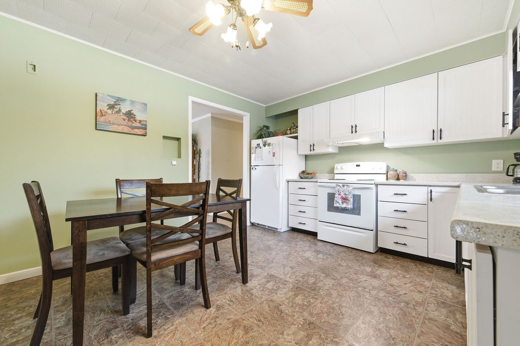 • Spacious eat-in kitchen with ample cabinet space and pantry.