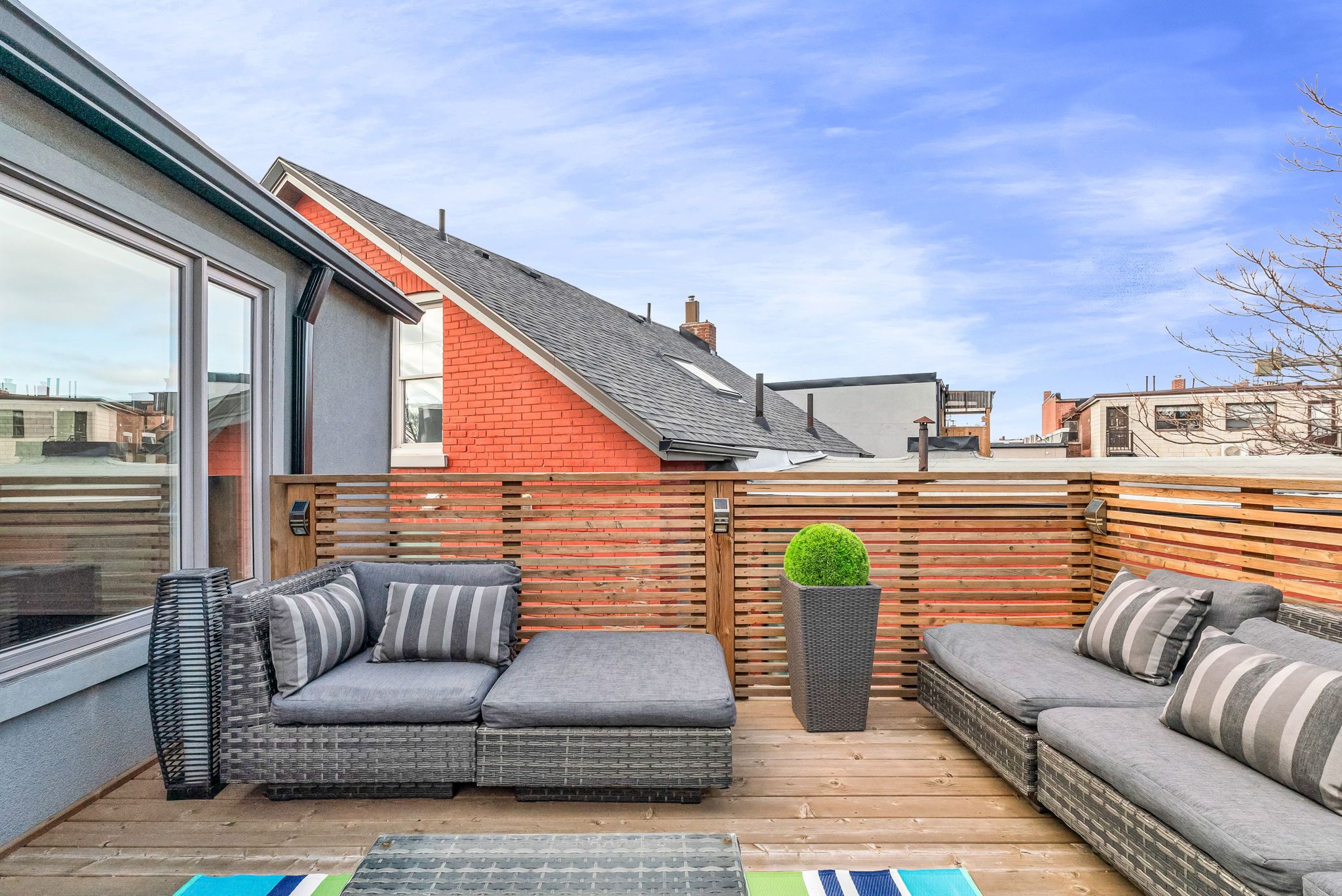 • Private rooftop patio and spacious bedrooms for comfort.