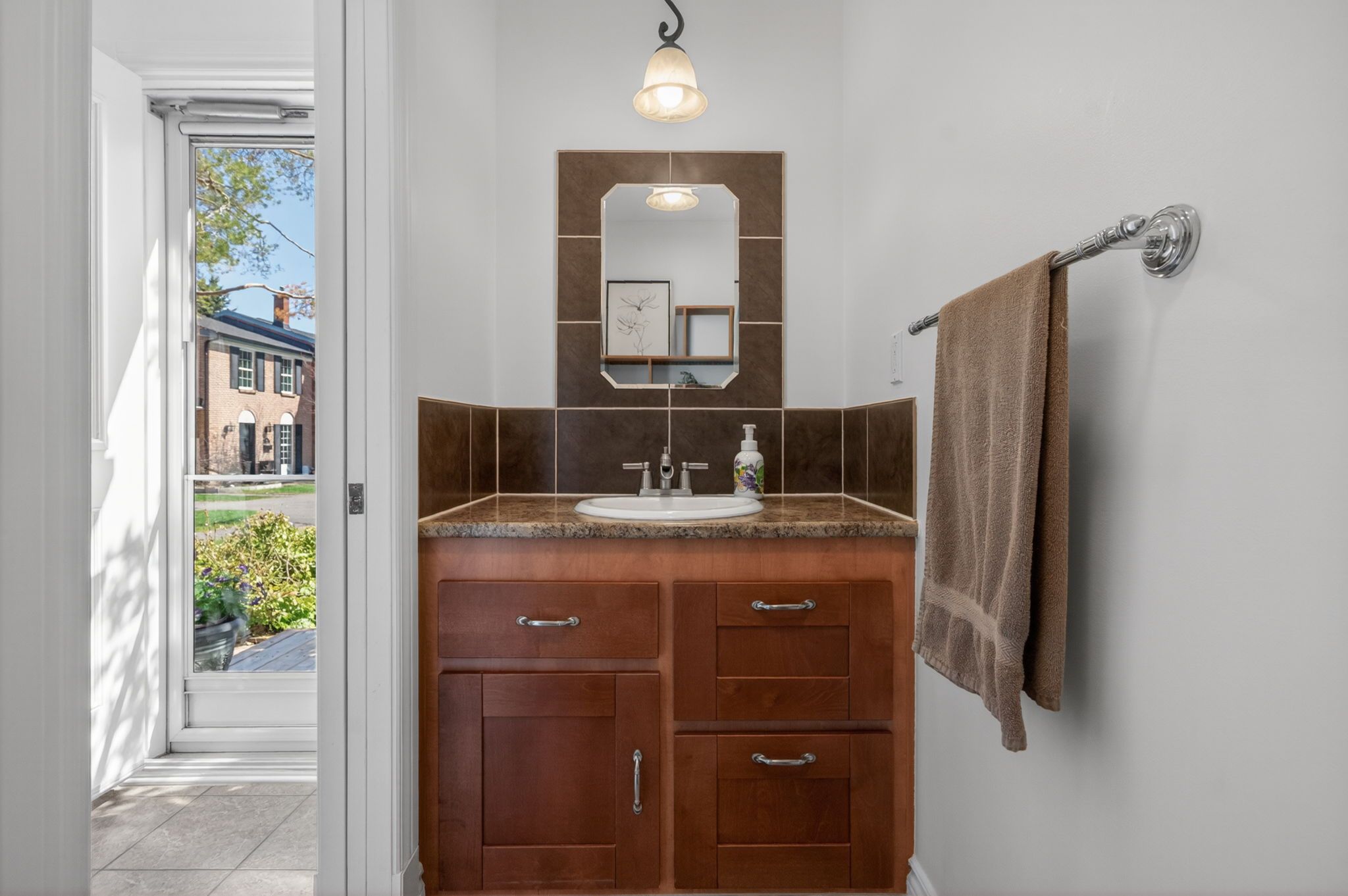 • Nearby park features play structure, splash pad, and community events.