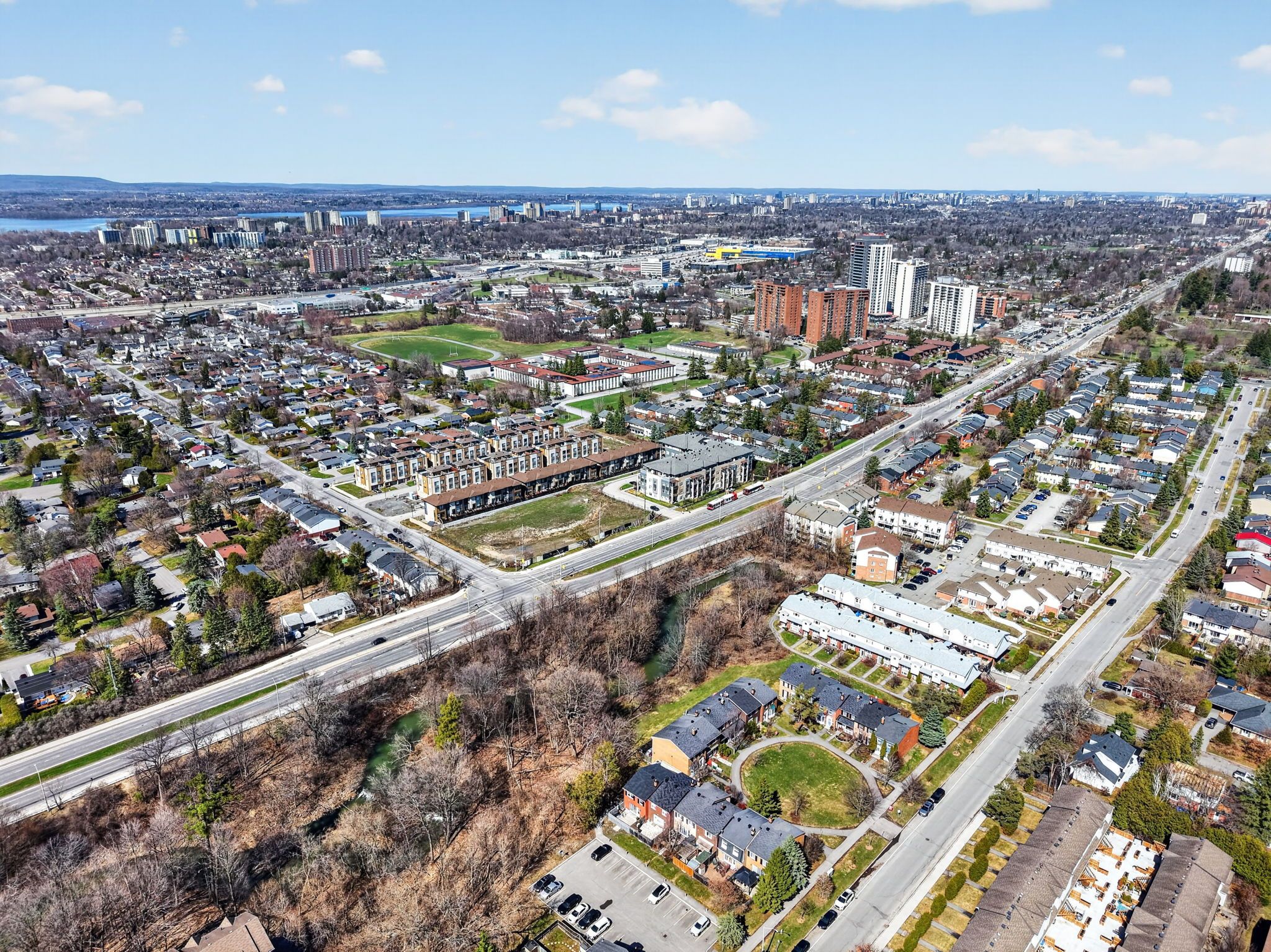 This is your chance to live in leslie park! Be a part of one of ottawa's best communities! Located on the highly sought after "circle", this beautiful freehold townhome backs right onto graham creek! Everything in this home has been so well & lovingly maintained. Thoughtfully designed with creative storage features and many recent updates including fresh paint, fully renovated eat-in kitchen, stunning new staircase, closet doors with extra storage design, lighting, switches, baseboards - all refreshed and feeling like new! Lovely hardwood oak flooring throughout. A walk-out basement (laundry & rough in for potential bathroom) with fenced yard and new wood deck to enjoy sitting and listened to the birds with direct access to shared green space which backs directly onto the creek and small forest. This creek flows through the neighborhood and down to the park which is a fabulous place to gather and includes: play structure, splash pad, community garden & apple orchard, skating rink & sled hill (winter months), many fun community events are held here and enjoyed by all. Truly a special community to be part of. Waking distance to the queensway carleton hospital. Close to ikea, bruce pit, easy access to transit, shopping, fantastic schools, algonquin collage, 11 mins to westboro & britannia beach! You will fall in love.