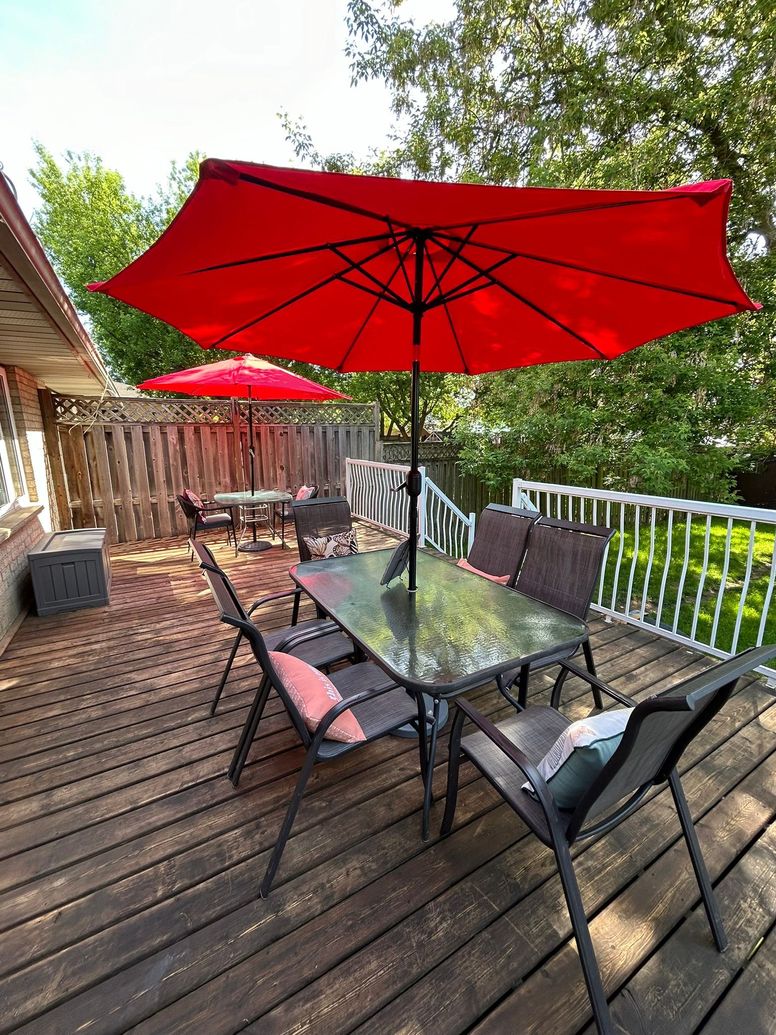 • Fully fenced backyard with mature trees and garden space for relaxing.