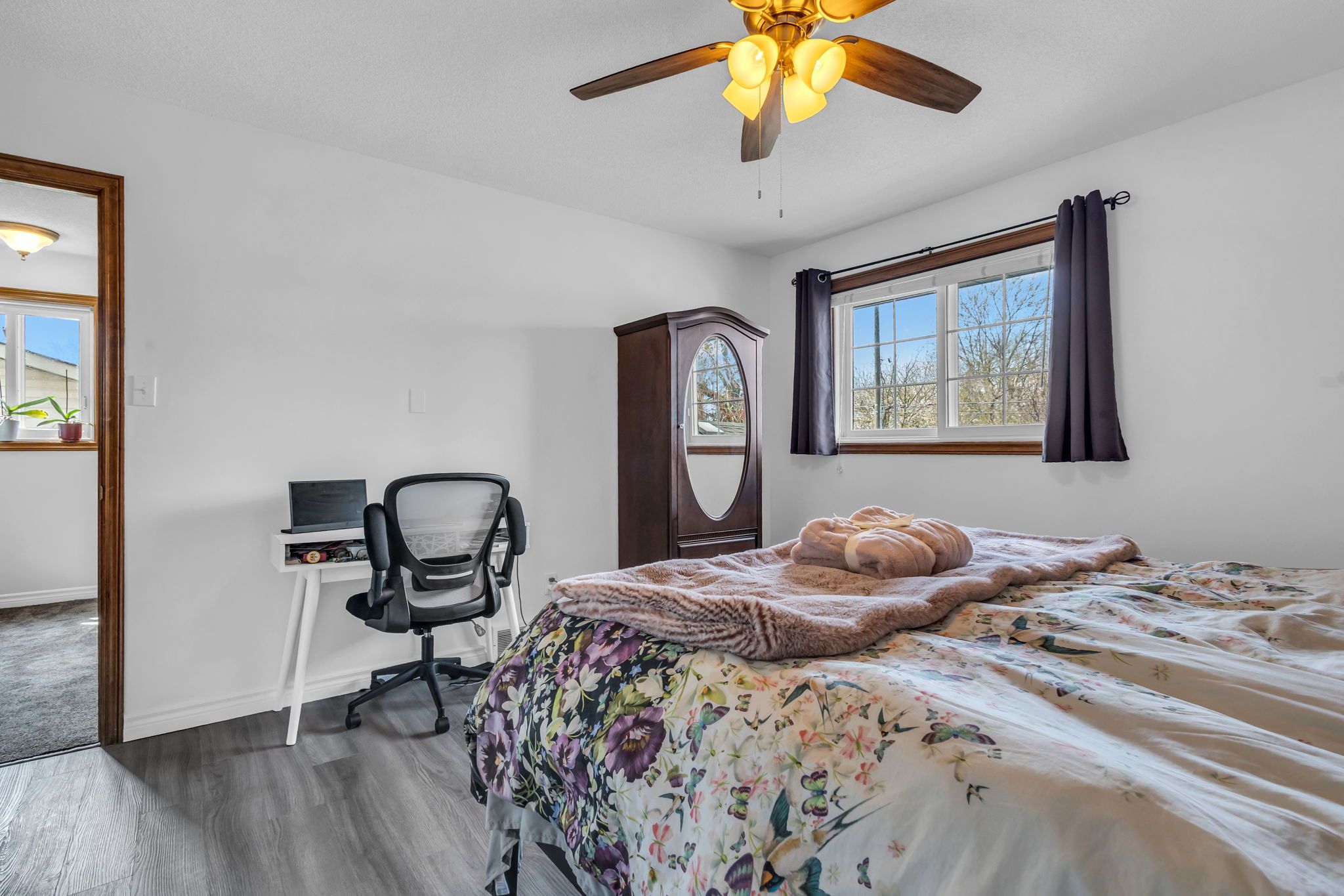 • Three spacious bedrooms with new closet doors and ceiling fan.