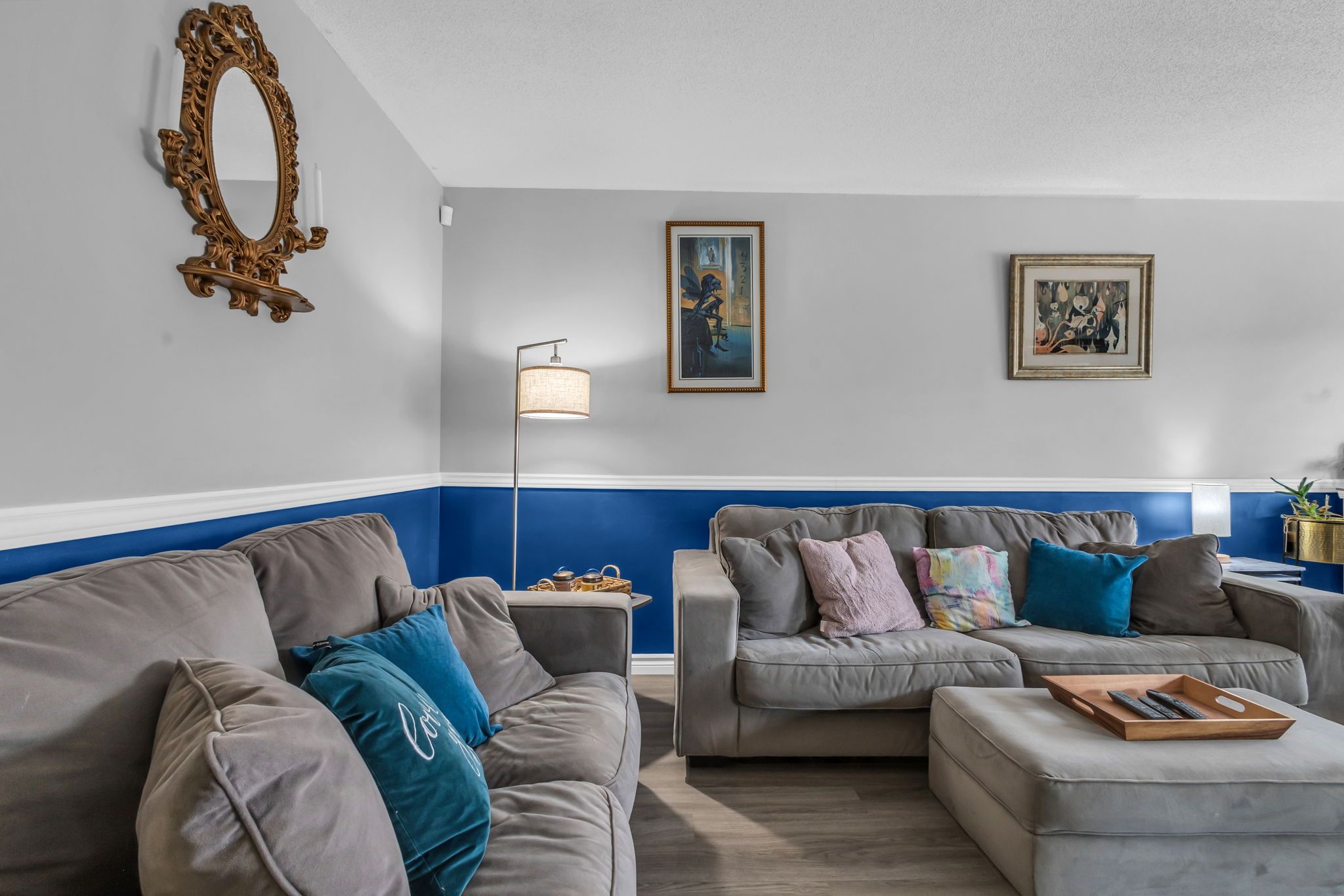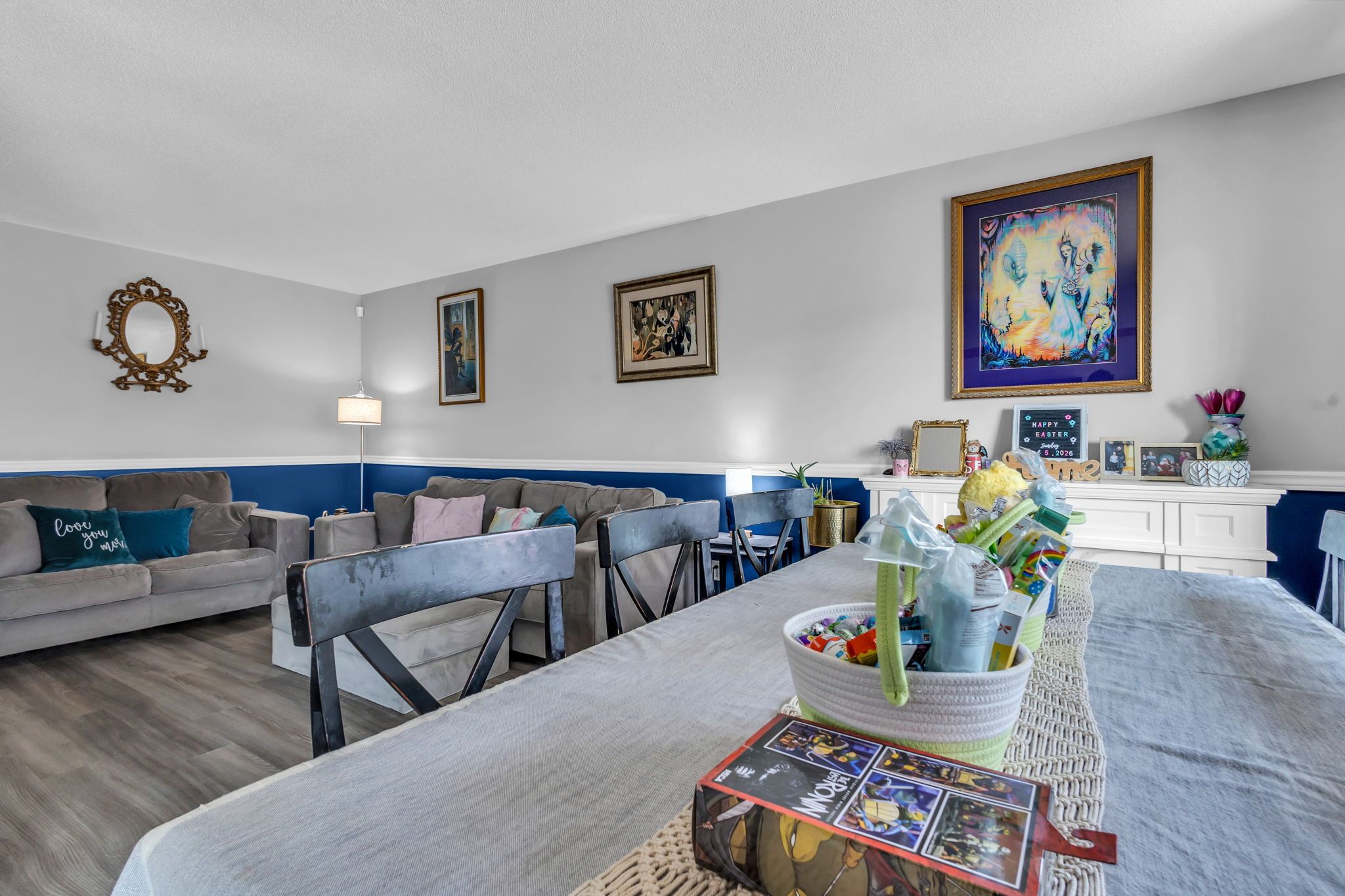 • Bright living room and large kitchen with ample storage and counter space.