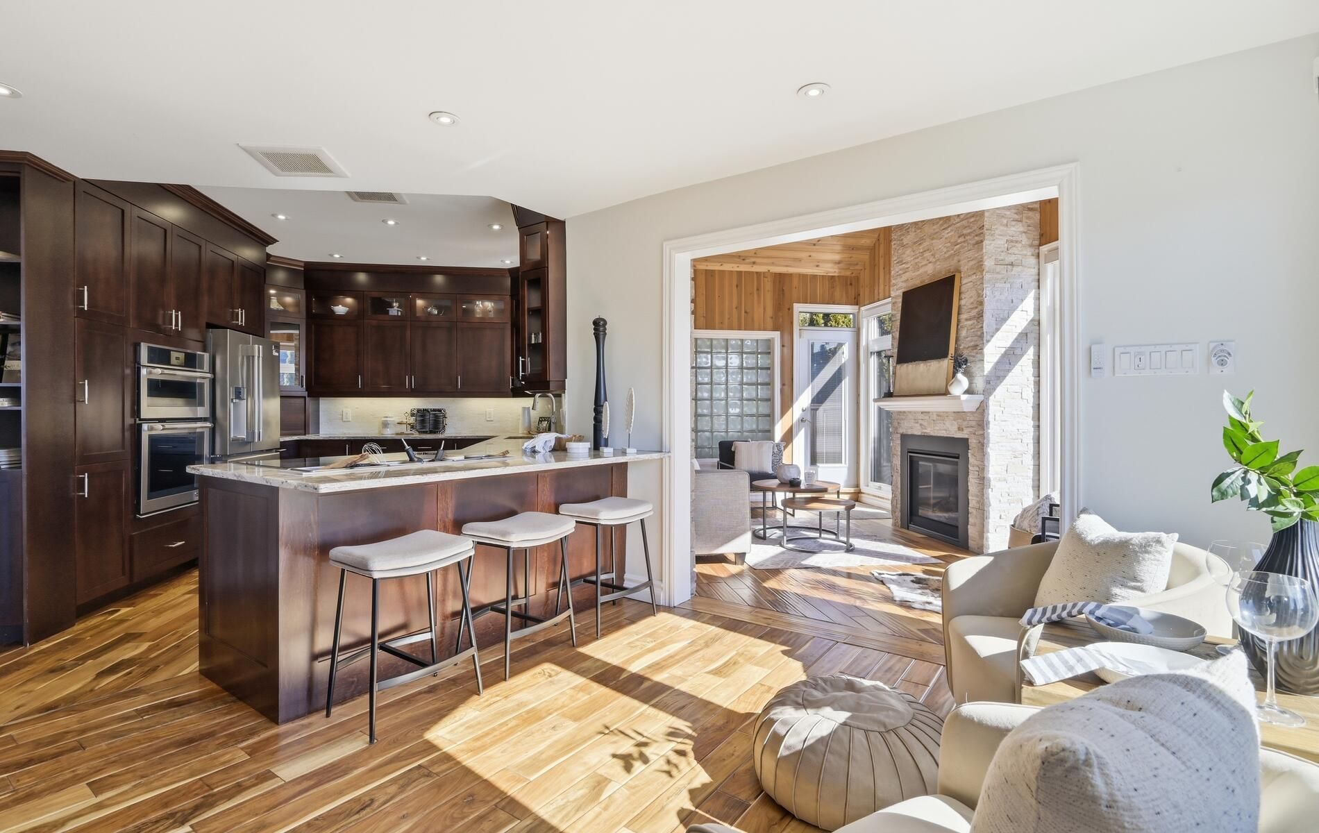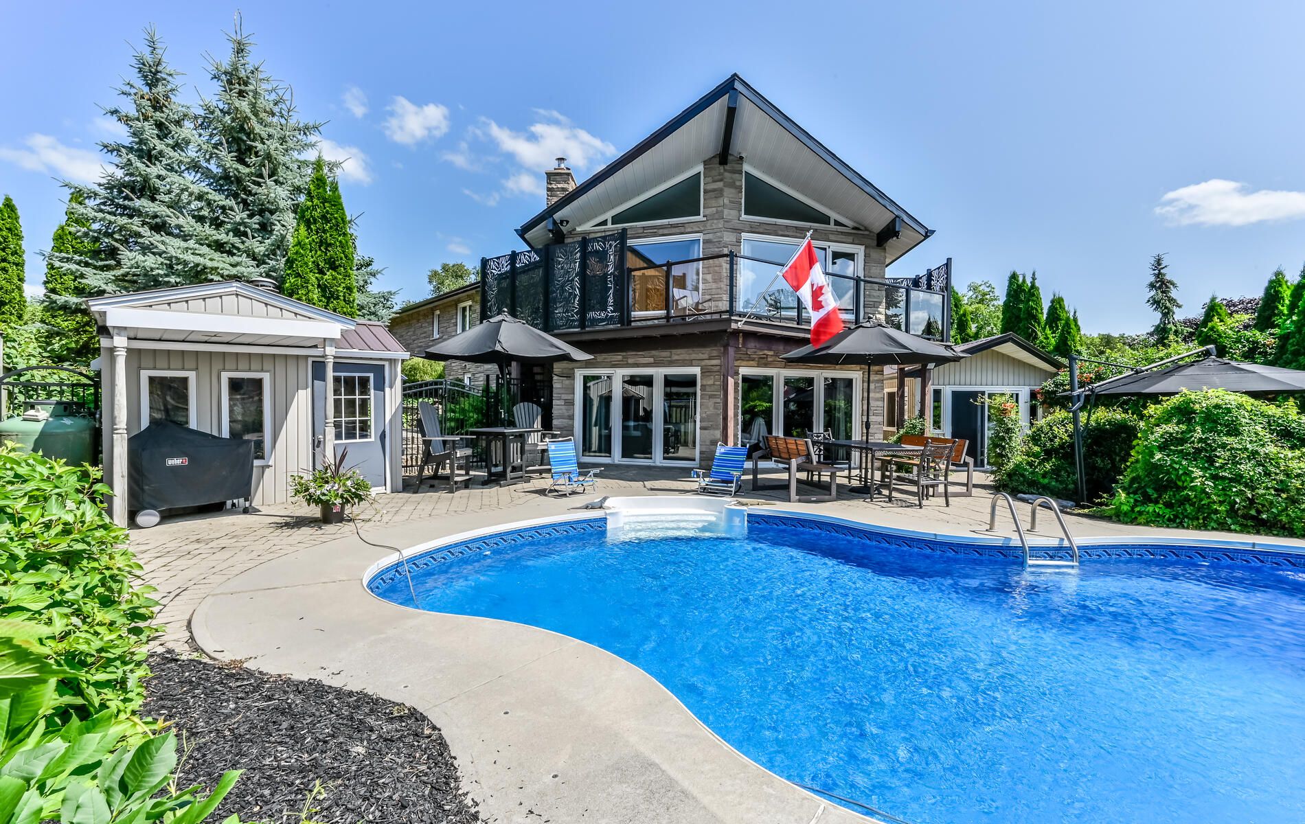 • Spacious walkout basement with a fireplace and access to an inground pool.