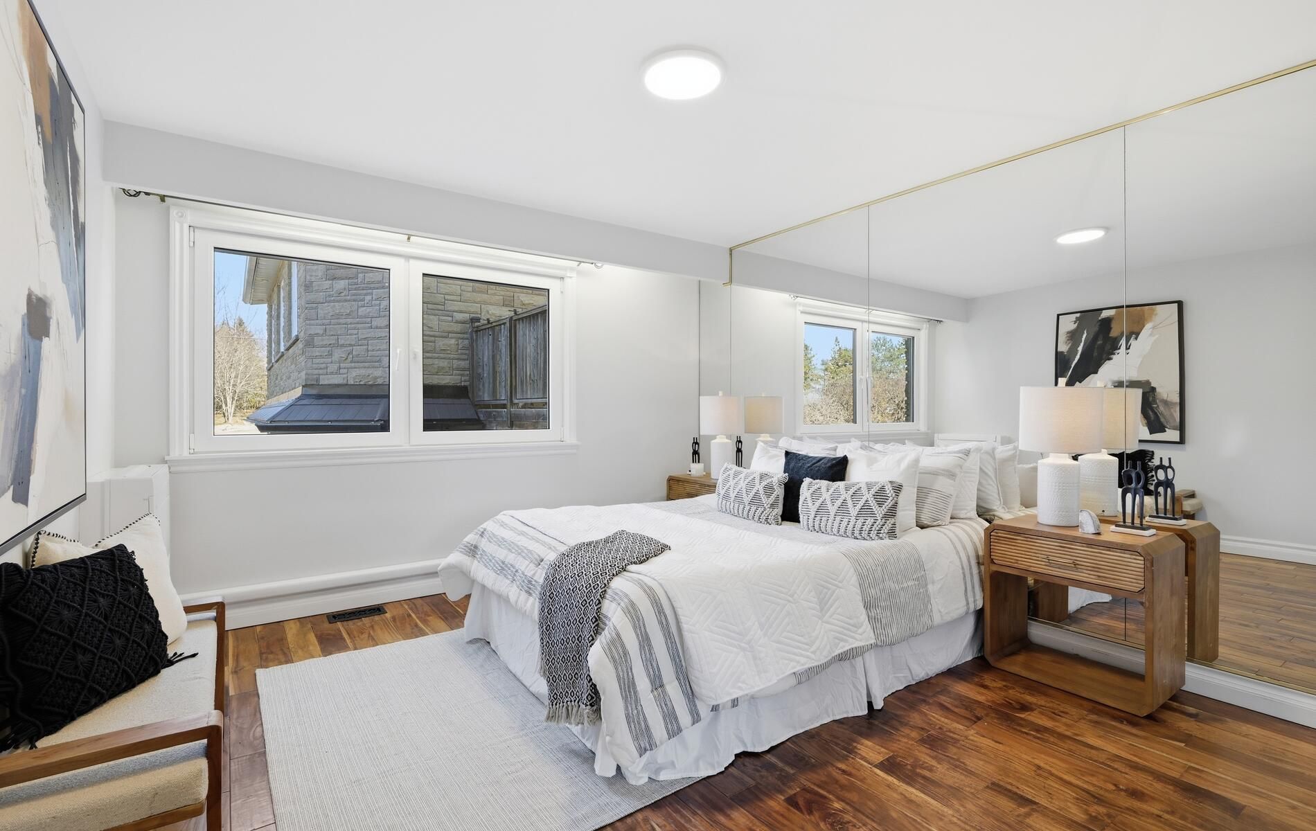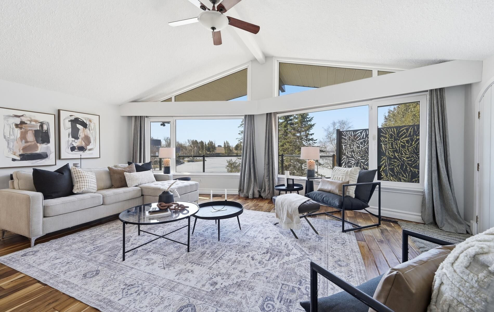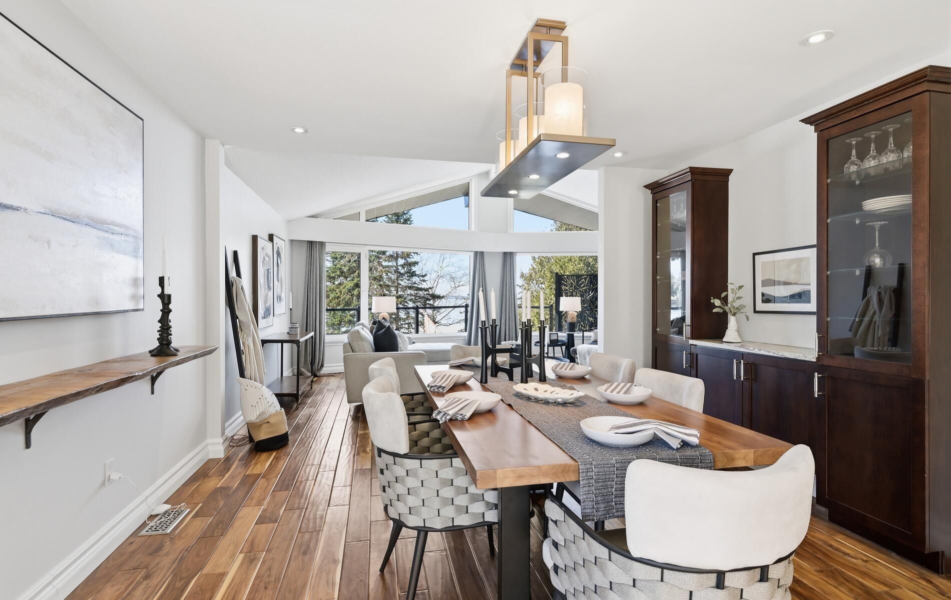 • Wall-to-wall windows in the living room provide stunning lake and pool views.