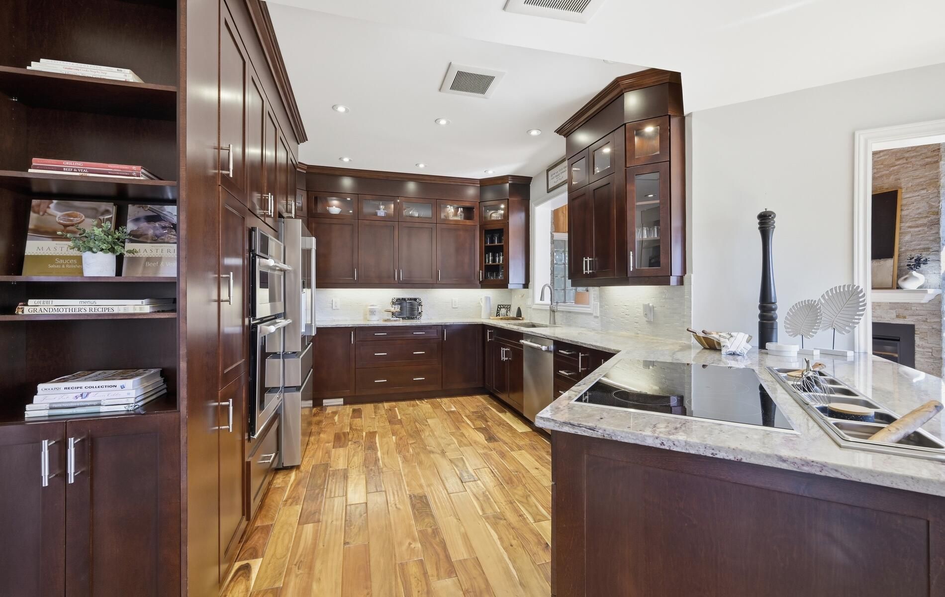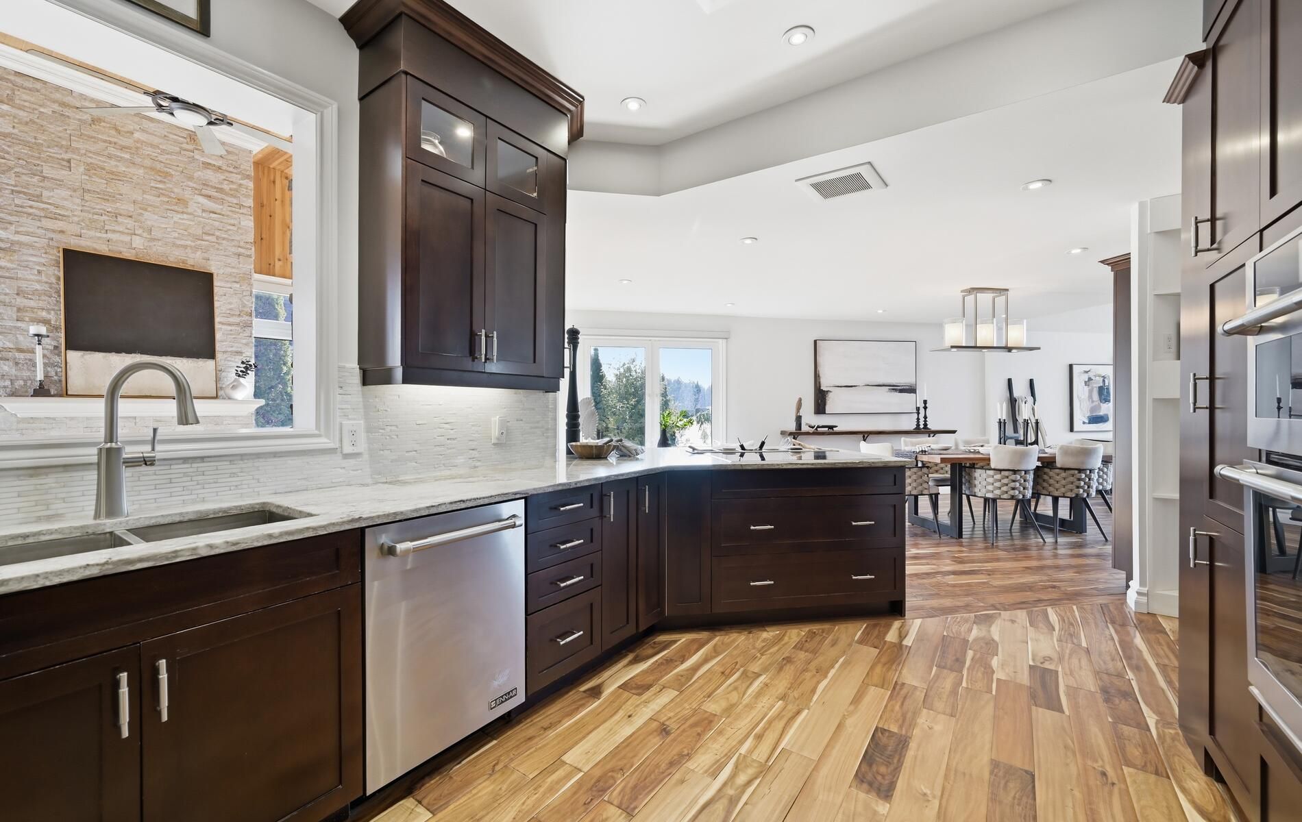 • Renovated kitchen features high-end appliances and granite counters.