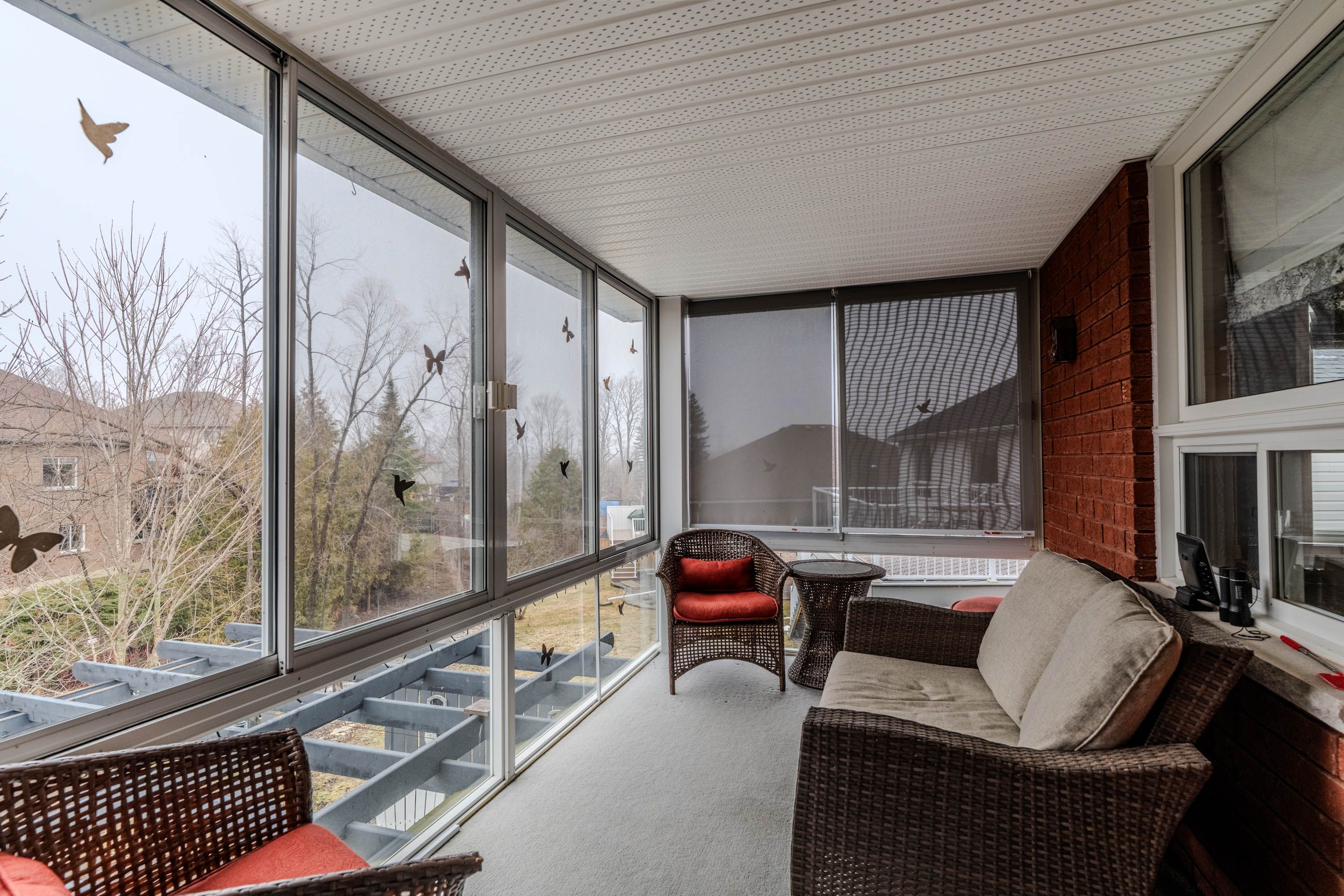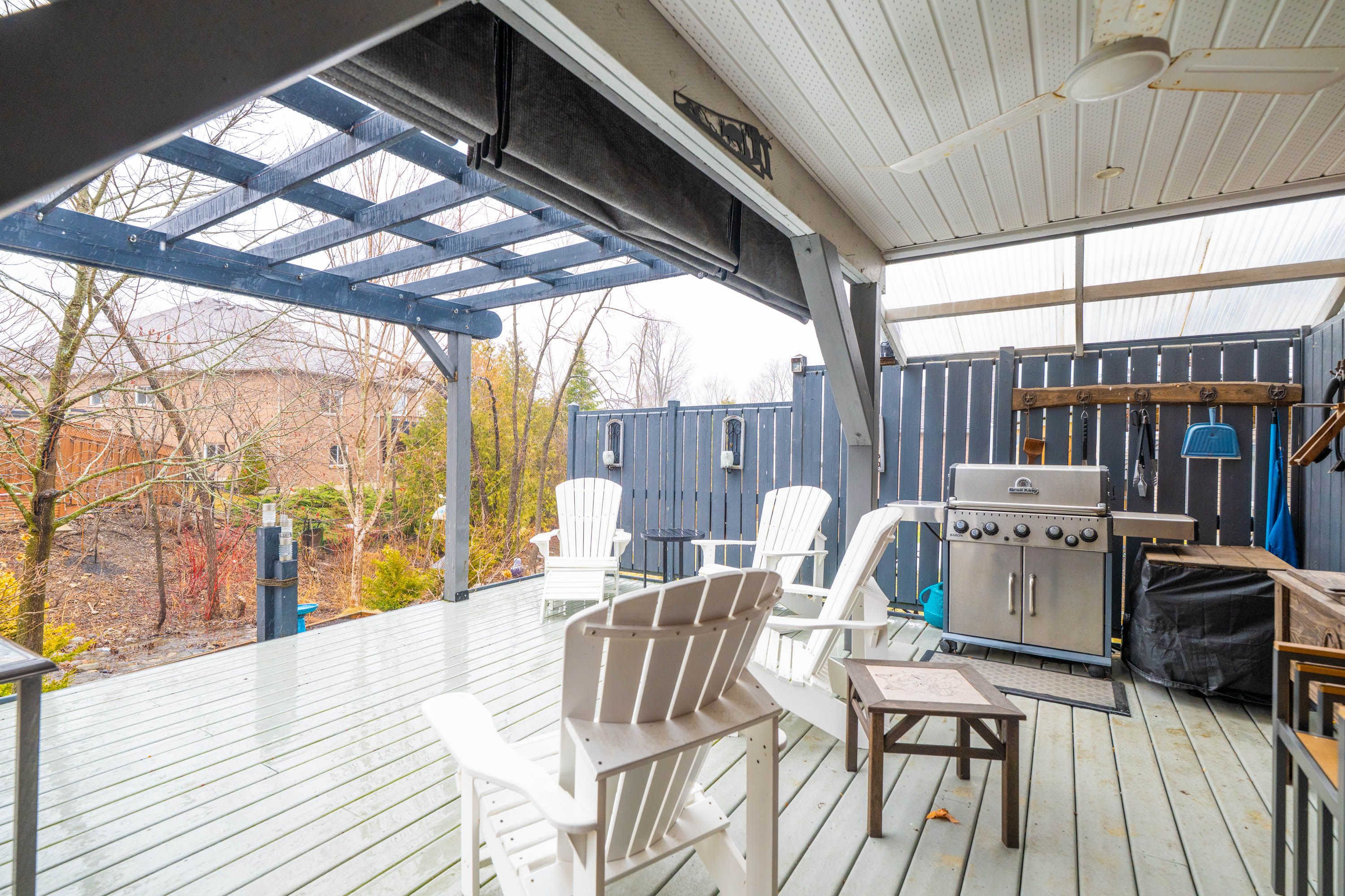 Perfect for multi family living, this level entry all brick bungalow was built in 2004. Located in the desirable enclave of woodland acres, the premium lot with an inground sprinkler system backs onto a babbling brook. The main level includes a primary bedroom with a 3 piece ensuite, a 2nd bedroom, main bathroom with custom vanity, main floor laundry, combined living/dining rooms with coved ceilings plus a built in china cabinet. The updated eat in kitchen features a pantry, island with pot and pan drawers and granite counter tops and leads to a cozy family room with gas fireplace and walkout to 3 season sunroom. The family room, sunroom and basement overlook the mini ravine and babbling brook! The lower level provides 3 bedrooms with ample closet space, large kitchen, full bathroom with walk in shower and custom vanity, above grade family room with a gas fireplace and w/o to deck, utility room with ample storage. A gas bbq hookup is located on the trex partially covered deck which extends to a pergola with a retractable custom made uvf filter sunscreen. The included garden shed provides tool storage for the maintenance of the established perennial garden. The attached double garage (18' x 17') has an entrance to the house interior as well as a man door to the side of the property. This lovely home is located in a mixed neighborhood showing pride of ownership, close to trent university, riverview park and zoo and just minutes to lakefield and downtown peterborough. This well maintained home has a re-shingled roof in (2018), new hot water tank - owned (2020), new furnace (2024). Water and sewage are included in tax bill. The family room, sunroom and basement overlook the mini ravine with babbling brook. The pictures look great but seeing the property in person will amaze you!!!!