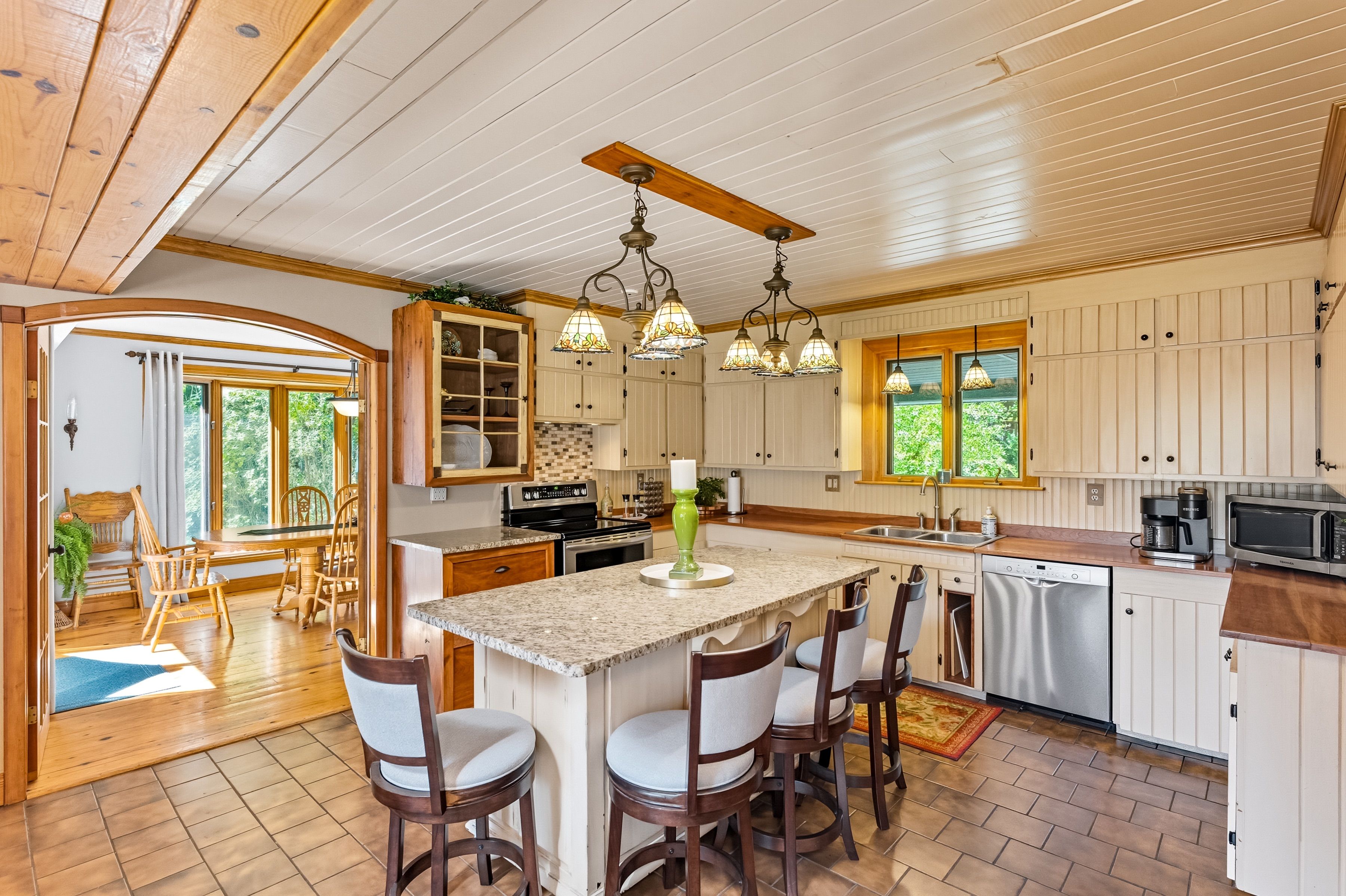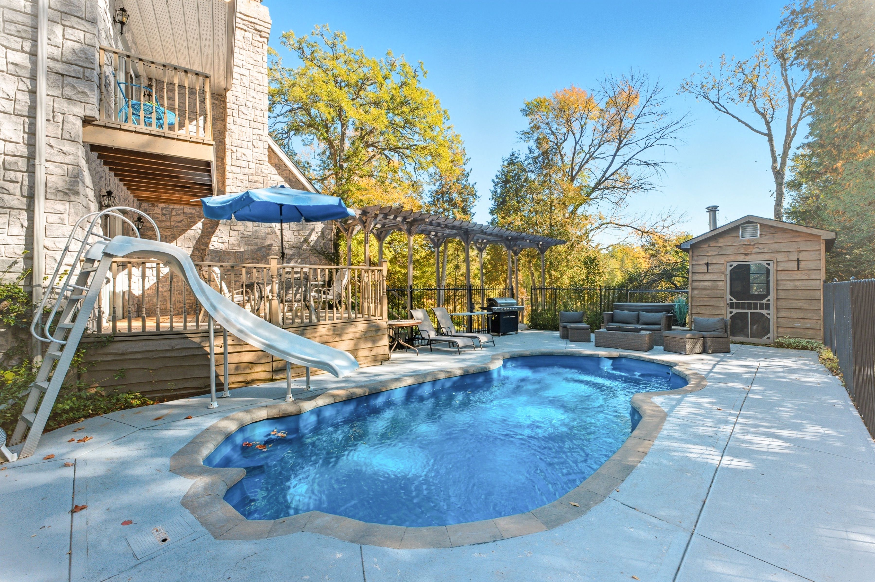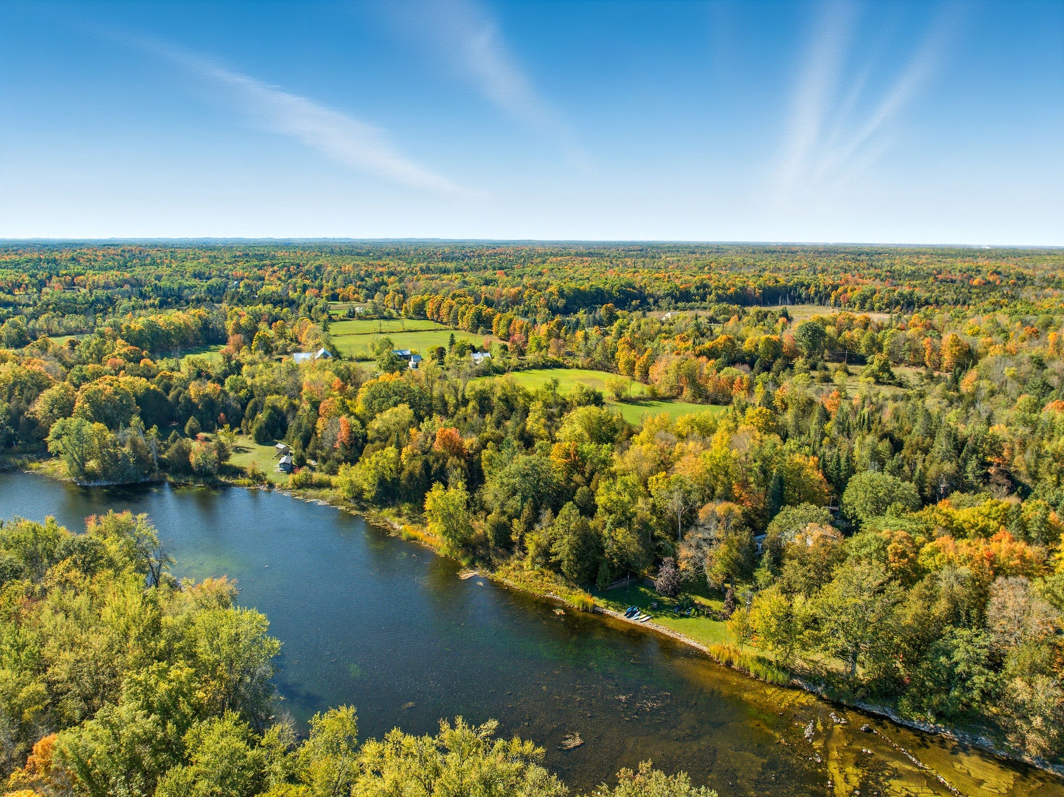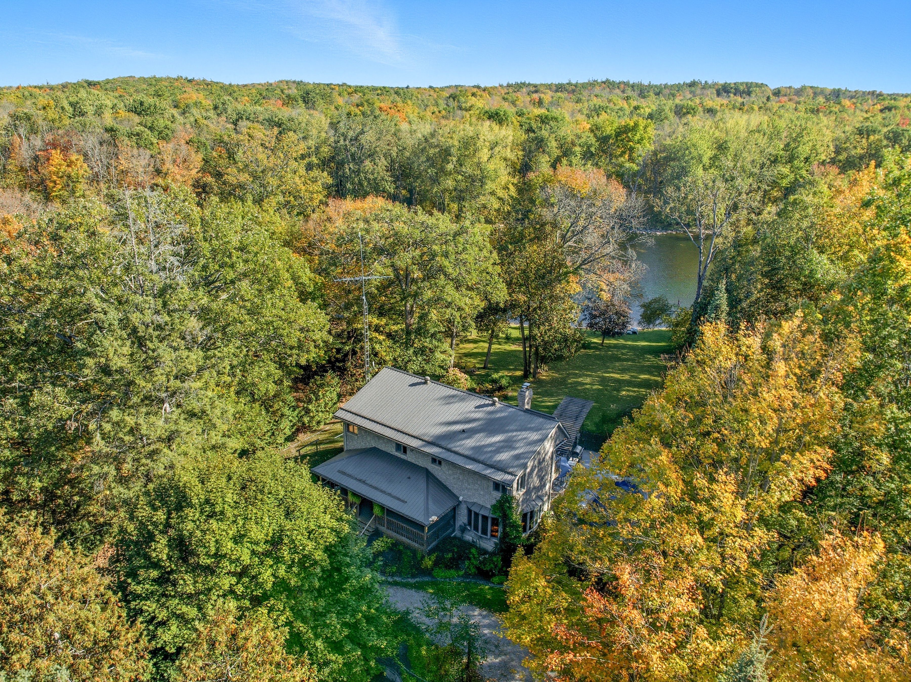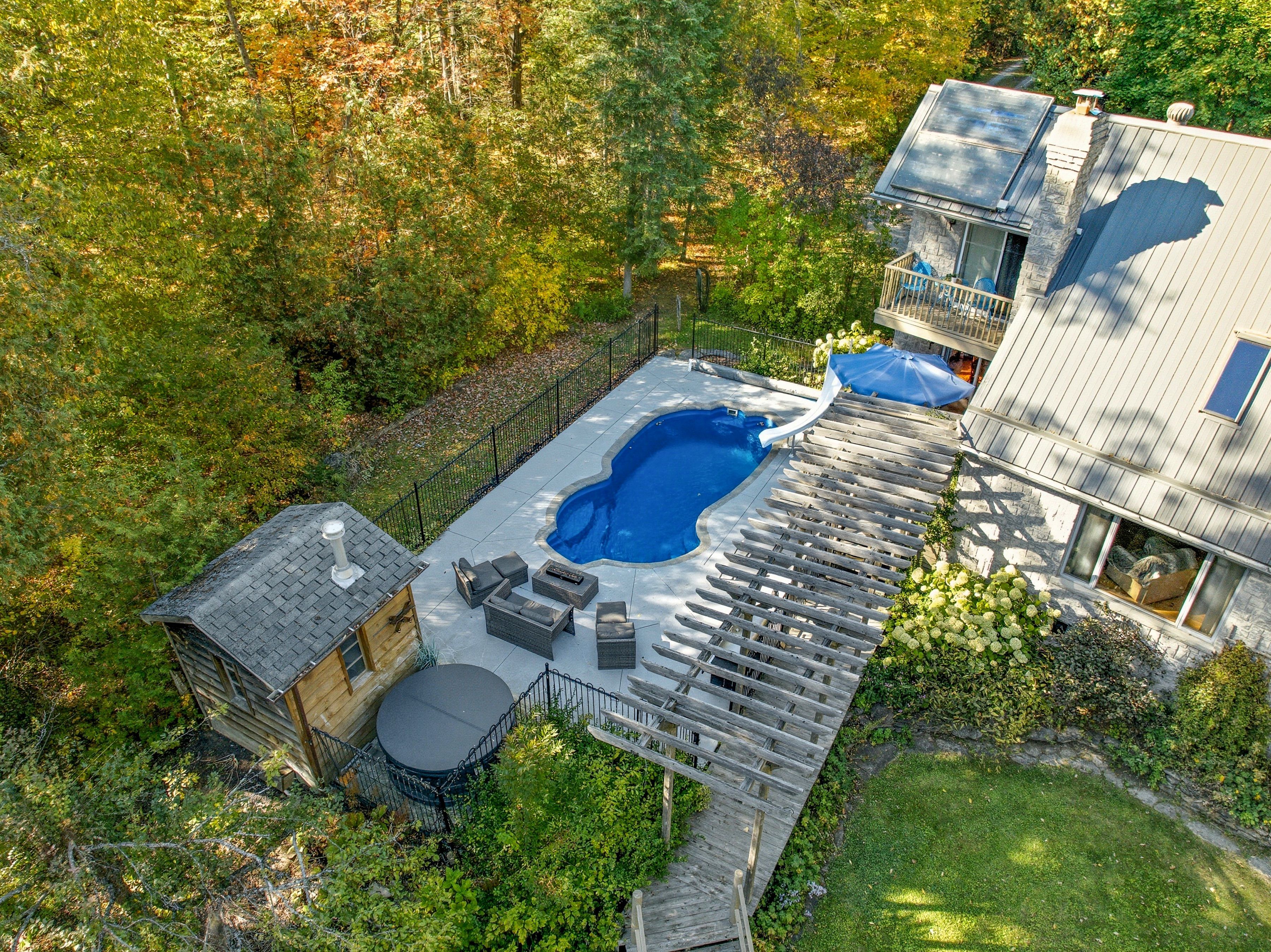 Between campbellford and marmora sits a riverside estate. A quiet, peaceful, serene place with a building made of stone, built with care--a much loved home. The main floor is open and bright with a high vaulted ceiling, large windows with views of the river, a wood stove for warmth on crisp autumn days. Open to the living room is a warm cherry wood kitchen with granite counters and stainless steel appliance. It flows to the dining room with a walk out to your saltwater pool and out to the backyard, your retreat. On this floor is also a tiled shower, a study/laundry/room. Upstairs, the master has its own balcony with breath-taking views. Two more bedrooms wait down the hall. The bath is large, with a jetted tub and a shower. The large basement family/bar/games room has a walk up for easy access, a wet-bar, a former fireplace (that could be brought back) and another utility room with tonnes of storage. Outside the land has so much to offer. A heated salt-water pool. A hot tub. A large heated -insulated garage that is perfect for tinkering, building fixing-or storing your toys. There's a greenhouse. A basketball court. A bunkie with root cellar. There are treehouses, a small fenced paddock. The river runs here. Over a hundred feet of riverfront. You can swim, boat and fish. The estate is built for life. Many ways to heat it. A generator backup if the power fails and supplemental wood heat. A built-in water sprinkler for the grass, a gorgeous stone and rock waterfall. Gardens a plenty. This is more than a home. This is a stead. A dream stead.