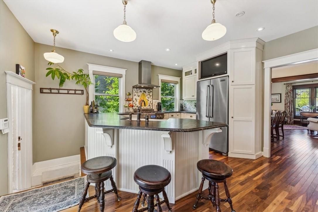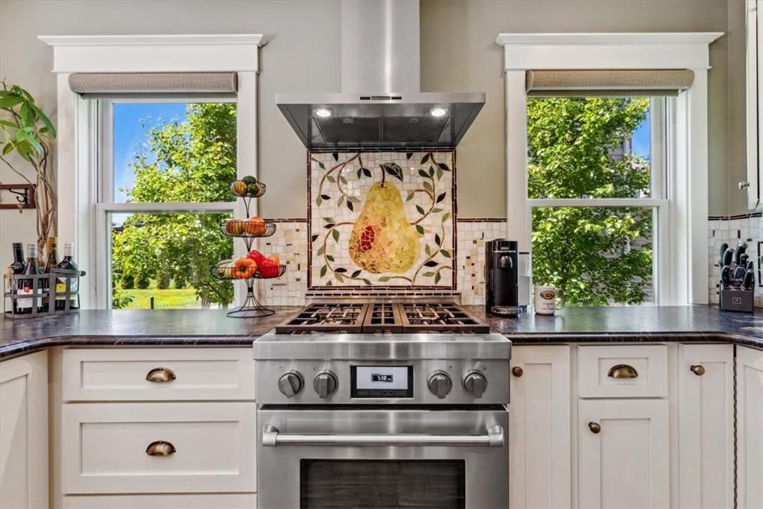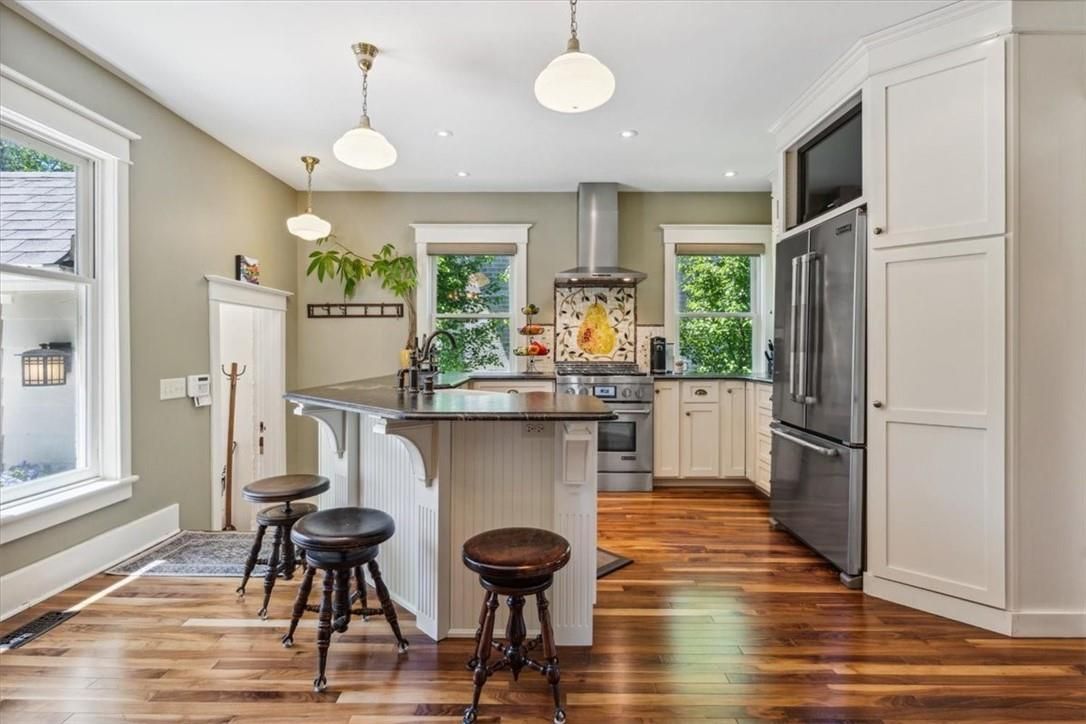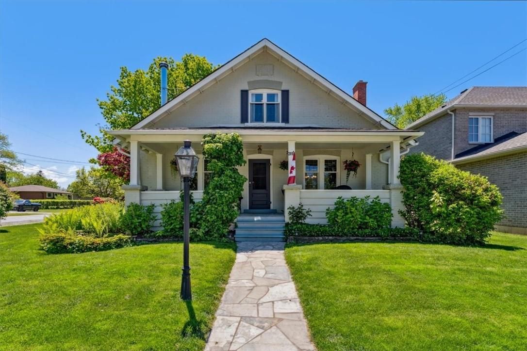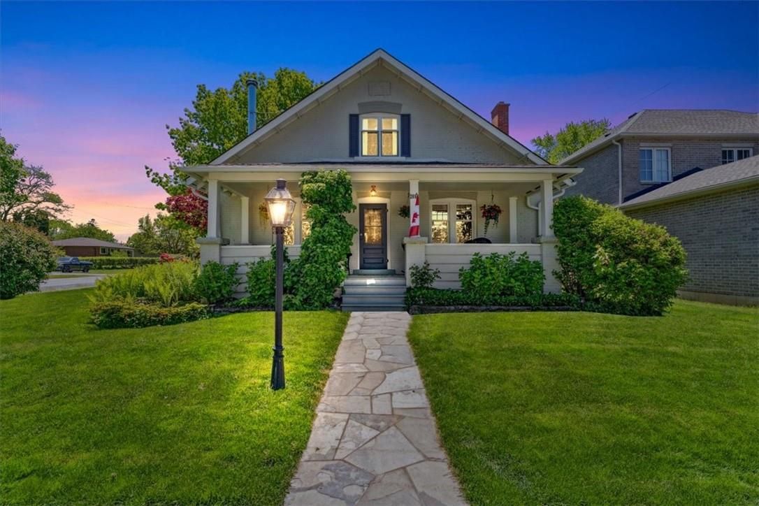 For the first time in over four decades, a cherished century home, opens its heart to a new family. From the moment you approach, a gas lantern guides your way to the iconic front porch. Step inside and feel captivated by the impressive high ceilings that flow into rich hardwood floors. As you wander, discover the warmth of two wood-burning fireplaces, one graced by a stunning antique wood insert. Every corner whispers tales of early 1900s charm, from the carefully chosen antique lighting to the beautiful original windows and wood trim. This isn't just a house; it's a testament to enduring love and meticulous care, where every detail holds a story. The heart of this home beats in its beautifully updated kitchen. Granite countertops frame a unique artisan backsplash, a delightful tribute to the region's agricultural bounty. Just off the kitchen a charming back entrance, an office and laundry room await. The main floor unfolds into an array of versatile spaces: an elegant dining room, an inviting living room, a family room, and a three-piece bathroom. Ascend to the second floor, where three light-filled bedrooms, each with engineered hardwood flooring, offer peaceful retreats. The landing on this level provides additional flexible space, ready to adapt to your desires. Step outside, and prepare to be amazed by the showpiece backyard, recently transformed by the experts at niagara outdoors. This sprawling 66x165-ft lot offers ample room for entertaining within its fully fenced yard. The truly impressive two-car garage, adorned with charming stained-glass windows, is more than just a place for vehicles; imagine transforming it into the ultimate backyard bar or simply reveling in its stunning aesthetic. Every detail here has been thoughtfully considered and lovingly executed, and the warmth and care shared within these walls are palpable.