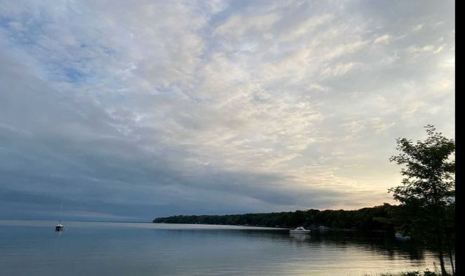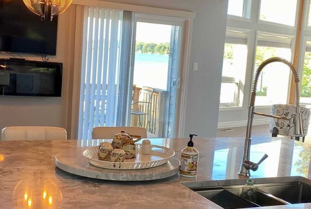 Spectacular 5yr old linwood georgian ii home with a great lake view of carthew bay! Shallow beach area makes this a perfect spot for families with children to enjoy swimming, kayaking or boating. Cathedral ceilings, large windows, skylights, a custom kitchen with quartz counter tops, coffee bar & pantry cabinets. Large dining & great room, fireplaces. . Very large family room. Primary bedroom has a deck, walk in closet, spectacular ensuite with spa tub. The backyard has deck and patio area and a 30'x40' pond to enjoy nature. And 12ft gazebo, plenty of storage with a 12'x8' garden shed, 20ft container, and 8'x10' shed. There is room to park an rv on the east side of property. This home has total 4 decks to maximize enjoyment of the outdoors and beautiful scenery.