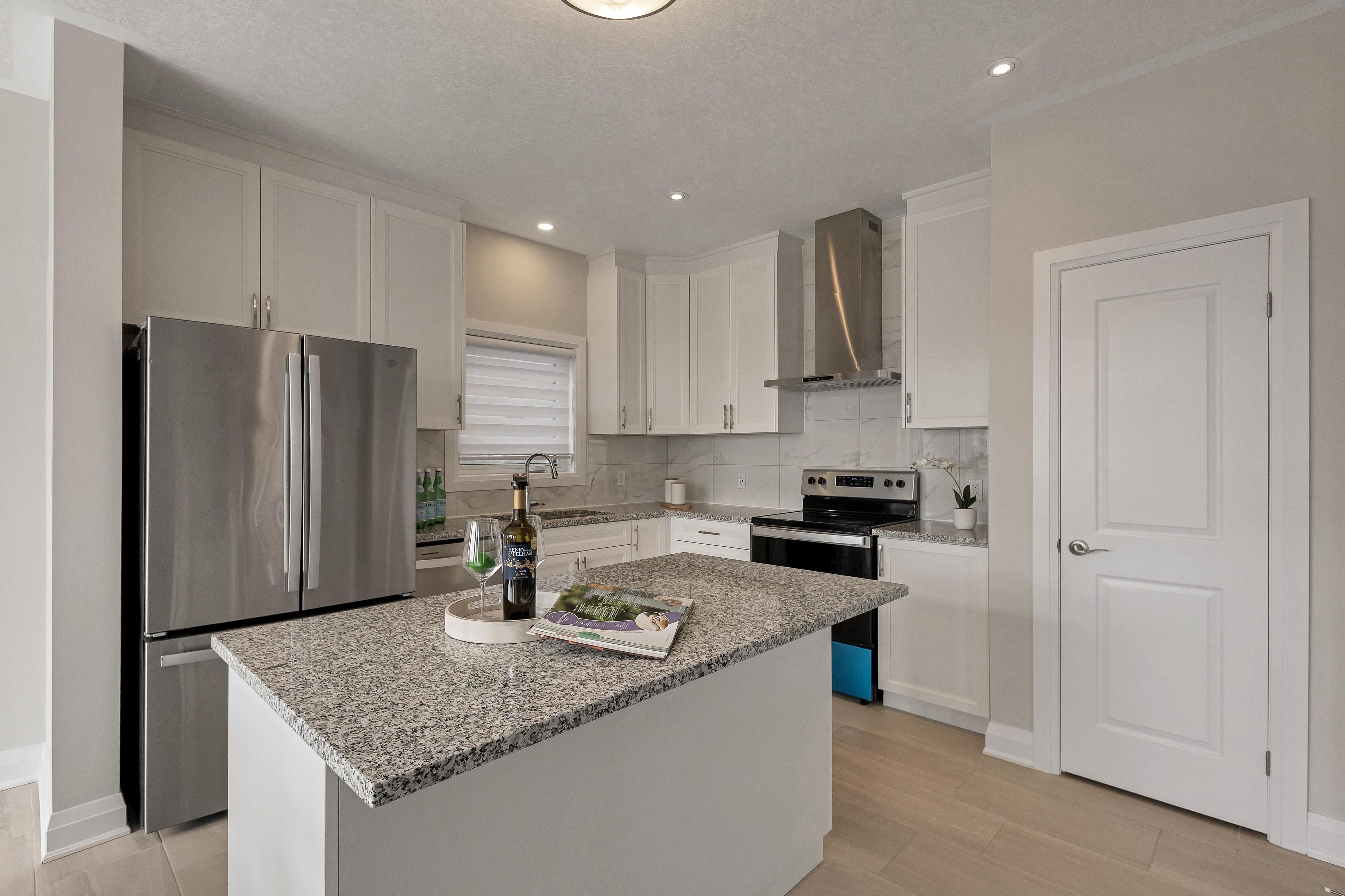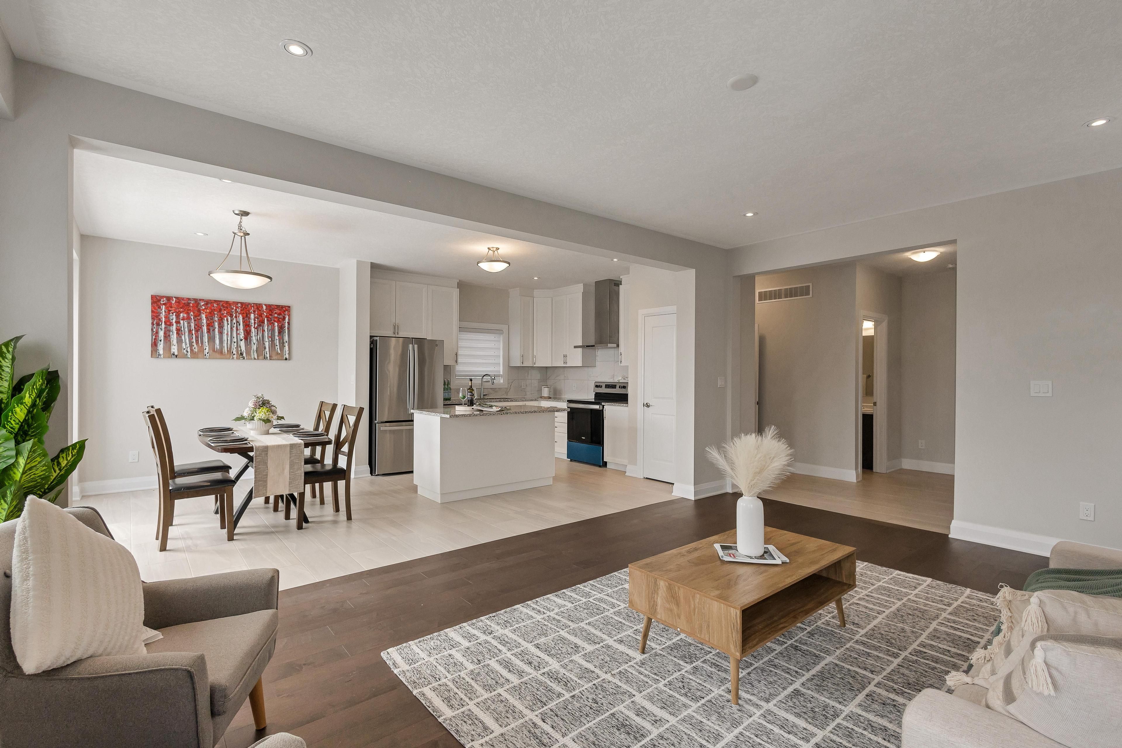 Brand new 2023 build! Nestled in the highly sought-after vista hills community, this home is within walking distance to vista hills public school , easy access to costco and also within the highly-regarded laurel heights secondary school boundary. This beautifully upgraded 4-bedroom family home offers nearly 2,450 sq ft of finished living space. The elegant main floor features 9-ft ceilings, engineered hardwood floors in the great room, oversized tiles, and stunning pot lighting throughout. The chef's kitchen is appointed with granite countertops, a large island with breakfast bar, upgraded cabinetry, stylish backsplash, and stainless steel appliances. A convenient main-floor laundry/mudroom adds practicality. Upstairs, find 4 spacious bedrooms. The luxurious primary suite boasts a walk-in closet, soaker tub, double vanity, and a spacious step-in shower. The walk-out basement, with double doors to the yard and three large windows, includes rough-ins for a future laundry and bathroom- presenting huge potential for a legal basement apartment or a secondary suite to generate rental income, subject to municipal approvals. Enjoy the convenience of direct access to the scenic vista hills trail network, perfect for walking, cycling, and enjoying nature year-round. This peaceful, family-friendly neighbourhood is also close to the city's largest forest park, multiple playgrounds, the university of waterloo bus line, the boardwalk shopping plaza, restaurants, and more.
