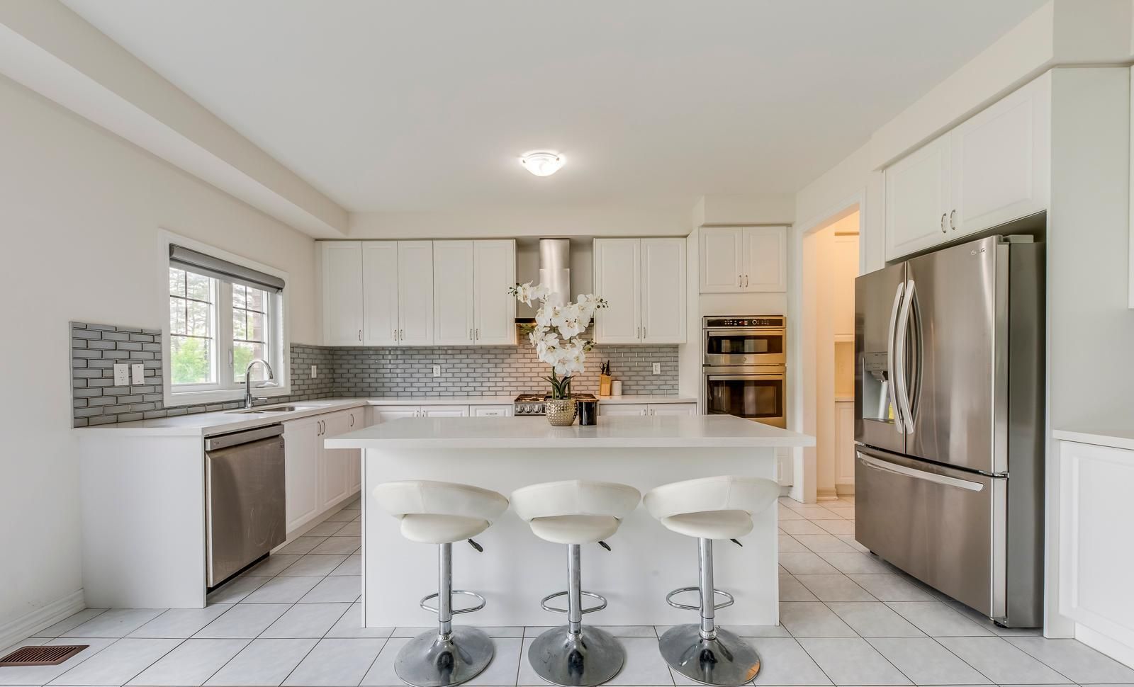 • Bright kitchen with stainless steel appliances and breakfast area.