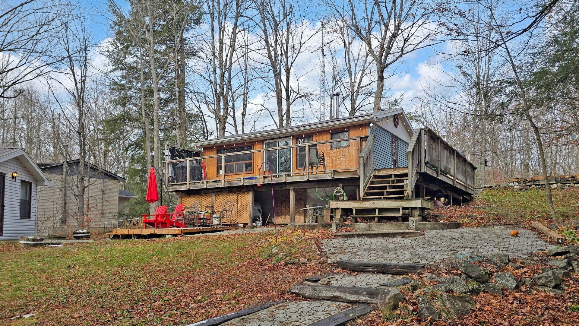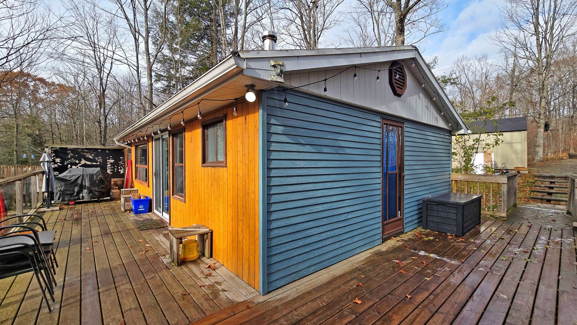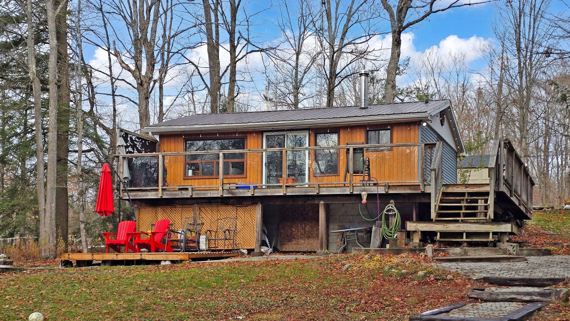 Beautiful 4-season cottage on miskwaa ziibi river. Experience tranquility at this beautifully updated, low-maintenance 4-season cottage featuring stunning generous riverfront views and a spacious tableland overlooking the water. A steel roof, extensive renovations, and major system upgrades ensure peace of mind and year-round enjoyment. Inside, you'll find a fully renovated bathroom (new vanity, toilet, flooring), updated window treatments, and numerous new furnishings including sofa, beds, chairs, pantry, dining set, and bbq. Freshly painted, new countertops, and added shiplap accent walls in both bedrooms and the dining area elevate the cottage's charm. The crawlspace has been upgraded with spray foam insulation, a vapor barrier, and an electric baseboard-heated area. Additional improvements include baseboard heaters installed in bedrooms and bathrooms, a new water pressure tank, uv filtration system, and an upgraded electrical panel to breakers. Enjoy outdoor living with a new ground-level deck, new dock, and a wrap-around deck with glass railing-perfect for taking in the magnificent waterfront views. Cozy up inside with the wood stove on cool nights. A separate 3rd-bed bunkie (3-season) provides extra sleeping space and includes a plug-in heater, ceiling fan, and window-ideal for guests or kids. Located just minutes from the marina with boat launch access to big bald lake on the trent severn waterway, and only 2 hours from the gta, this property is the perfect retreat for relaxation and recreation.