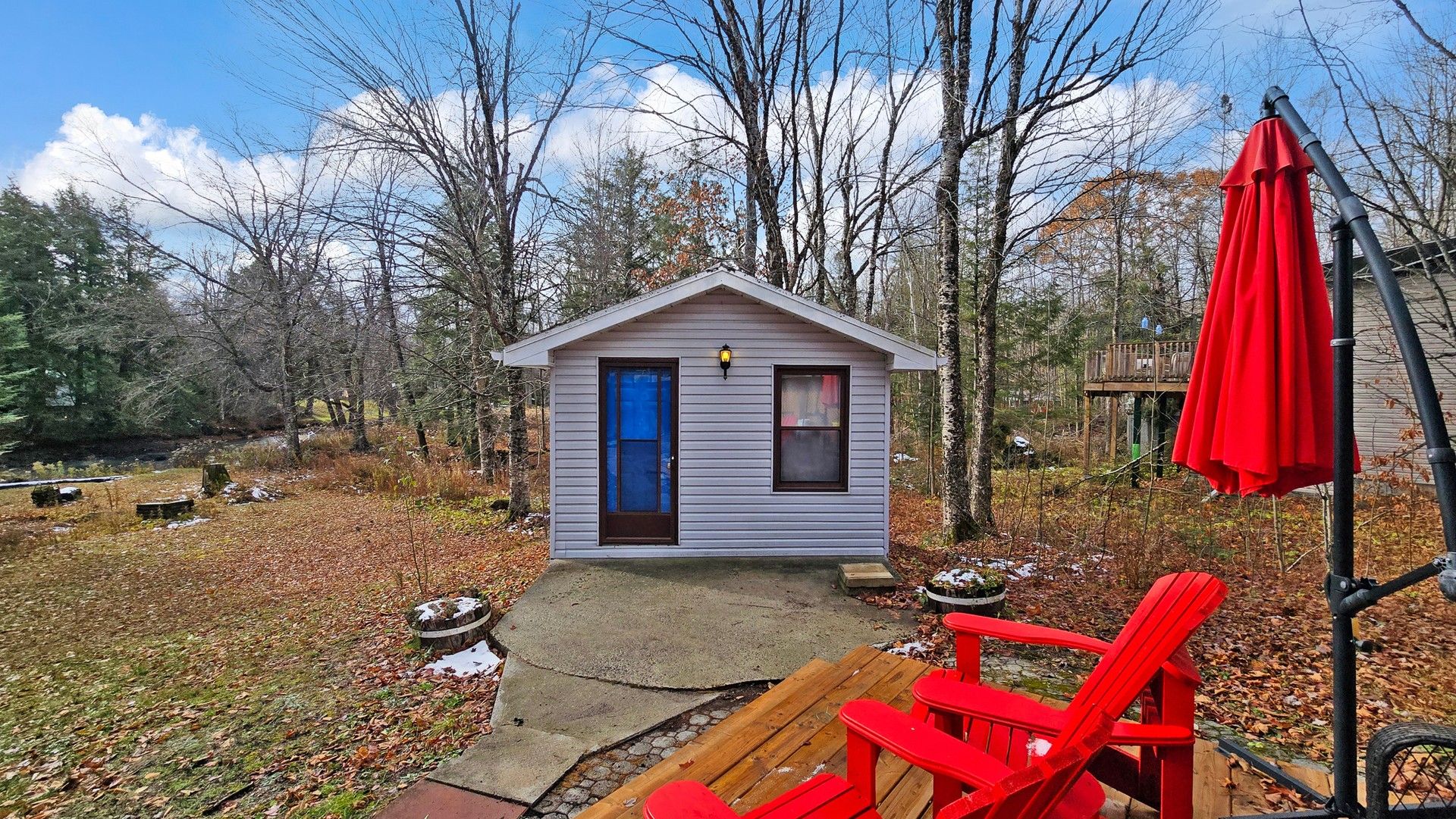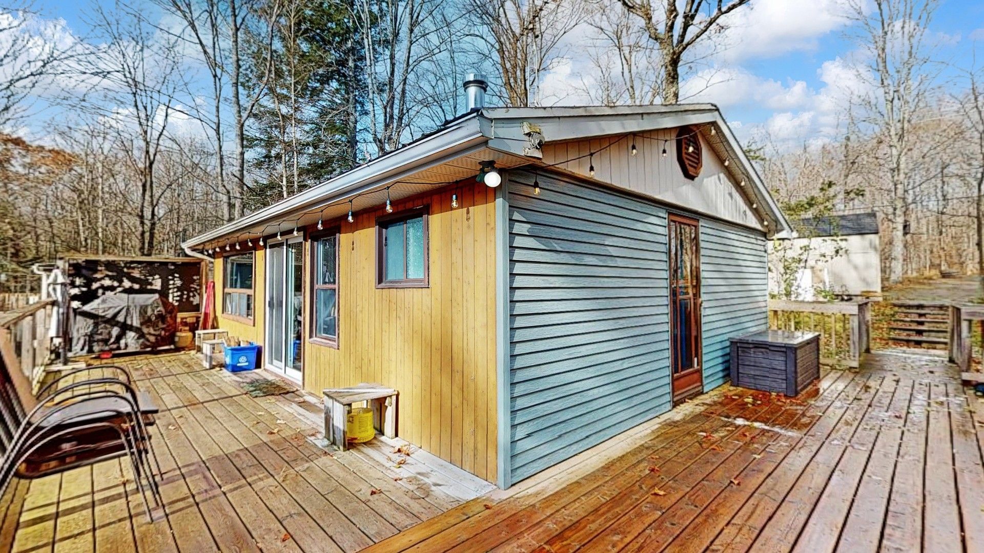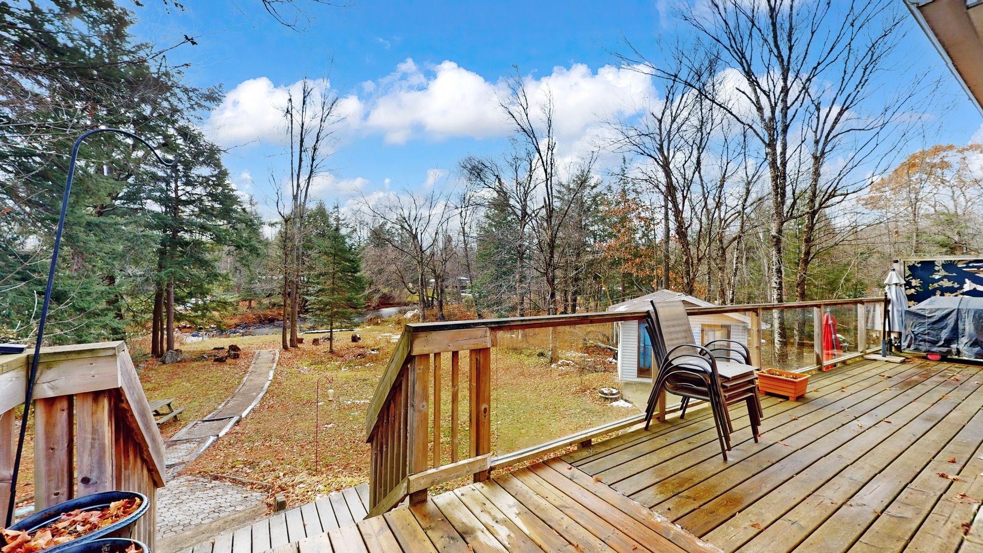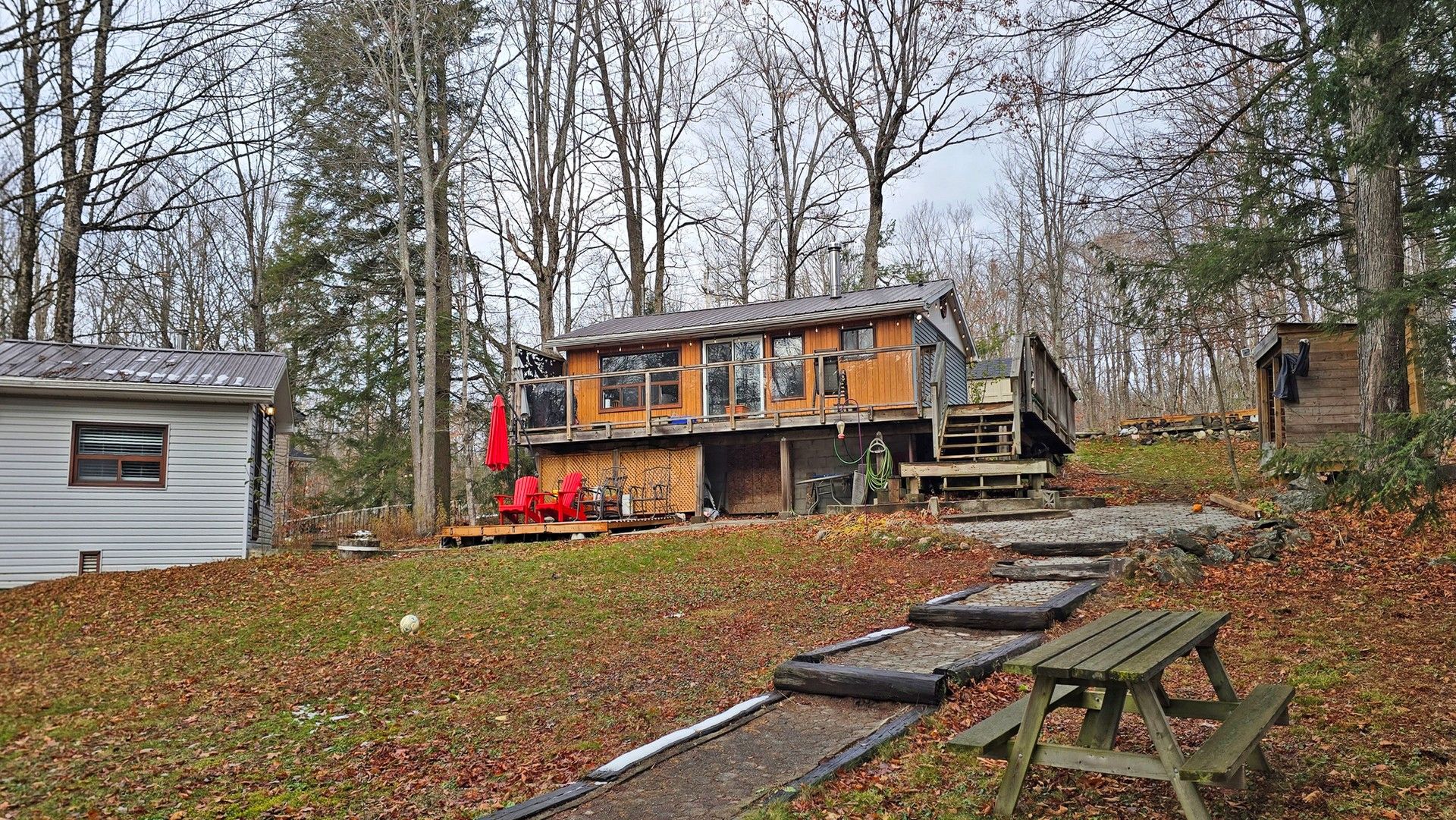 Beautiful 4-season cottage on miskwaa ziibi river. Experience tranquility at this beautifully updated, low-maintenance 4-season cottage featuring stunning generous riverfront views and a spacious tableland overlooking the water. A steel roof, extensive renovations, and major system upgrades ensure peace of mind and year-round enjoyment. Inside, you'll find a fully renovated bathroom (new vanity, toilet, flooring), updated window treatments, and numerous new furnishings including sofa, beds, chairs, pantry, dining set, and bbq. Freshly painted, new countertops, and added shiplap accent walls in both bedrooms and the dining area elevate the cottage's charm. The crawlspace has been upgraded with spray foam insulation, a vapor barrier, and an electric baseboard-heated area. Additional improvements include baseboard heaters installed in bedrooms and bathrooms, a new water pressure tank, uv filtration system, and an upgraded electrical panel to breakers. Enjoy outdoor living with a new ground-level deck, new dock, and a wrap-around deck with glass railing-perfect for taking in the magnificent waterfront views. Cozy up inside with the wood stove on cool nights. A separate 3rd-bed bunkie (3-season) provides extra sleeping space and includes a plug-in heater, ceiling fan, and window-ideal for guests or kids. Located just minutes from the marina with boat launch access to big bald lake on the trent severn waterway, and only 2 hours from the gta, this property is the perfect retreat for relaxation and recreation.