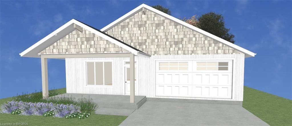 Discover the perfect custom bungalow just three blocks away from the beach in southampton, on! This net zero certified home offers two spacious bedrooms with main bath and an en suite as well as an open concept living/kitchen/dining room with stunning vaulted ceilings! You have the option to finish the basement (extra cost) if more space is needed. The home features a charming covered front porch and is located on a quiet cul-de-sac. The lot is uniquely situated across from a quiet and private water treatment plant, ensuring no neighbors across the road. Trees and a trail will be added in front for a pleasant view. Dennison homes inc., a reputable local custom builder, could start spring 2026. With their own interior design team, amazing carpenters and a custom cabinet shop they can make all of your dreams come true! Don't miss out on this opportunity to build your dream home in a fantastic location!