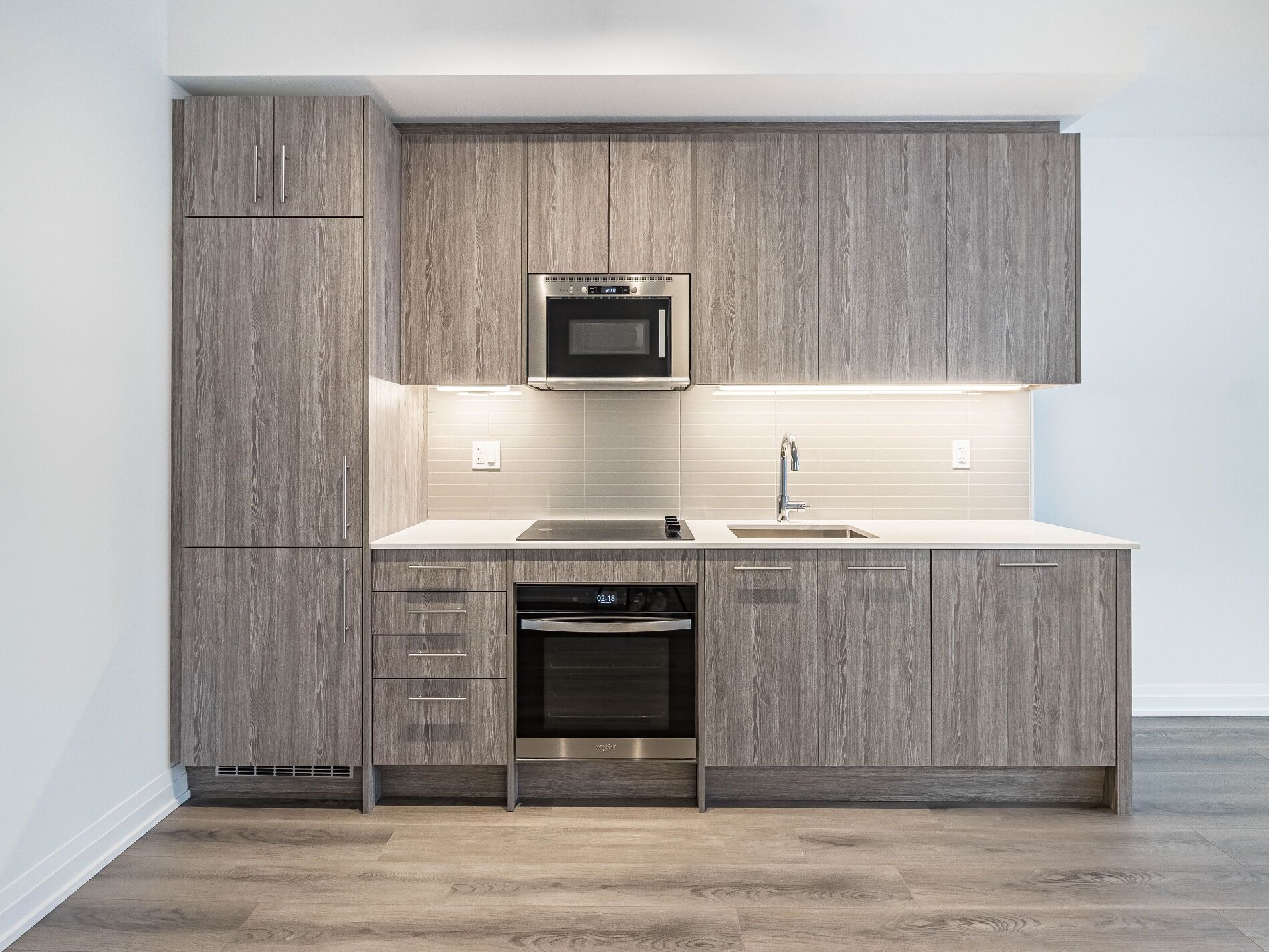 • Open-concept living area with bright, light finishes for spaciousness.