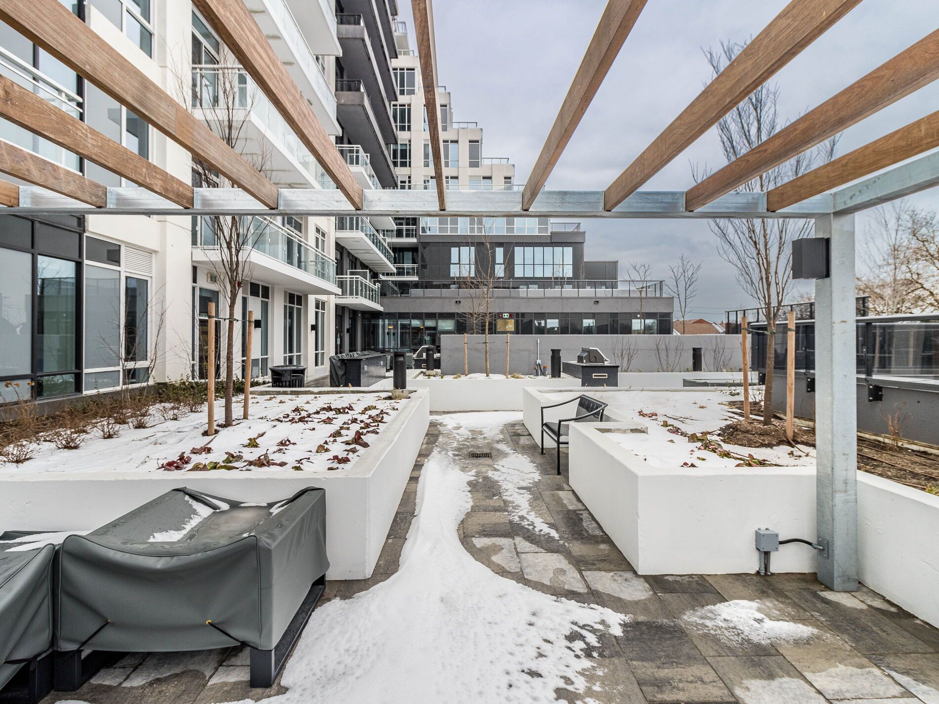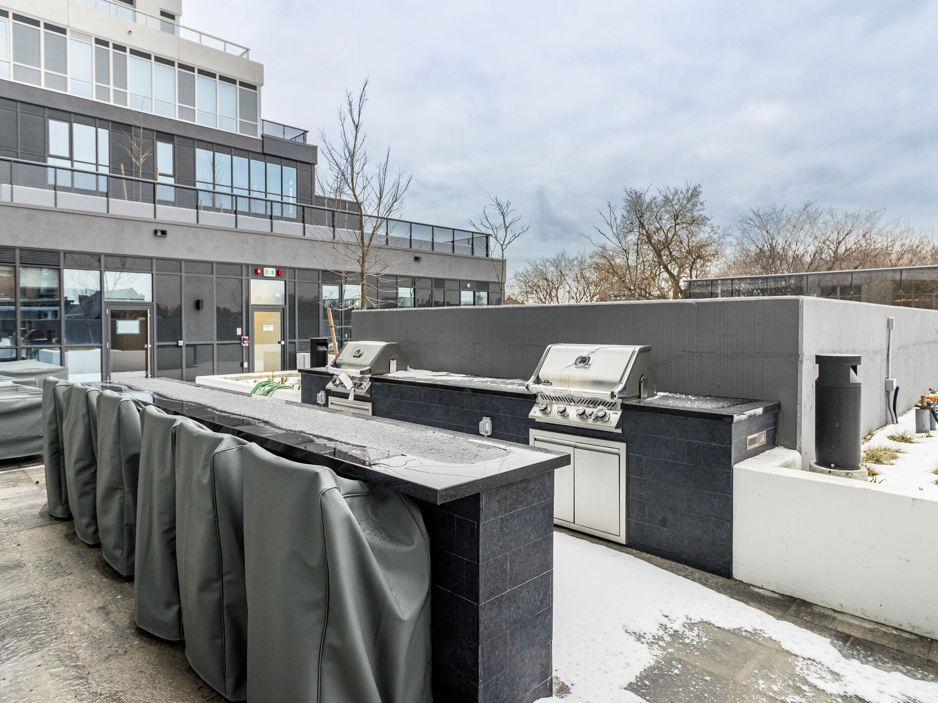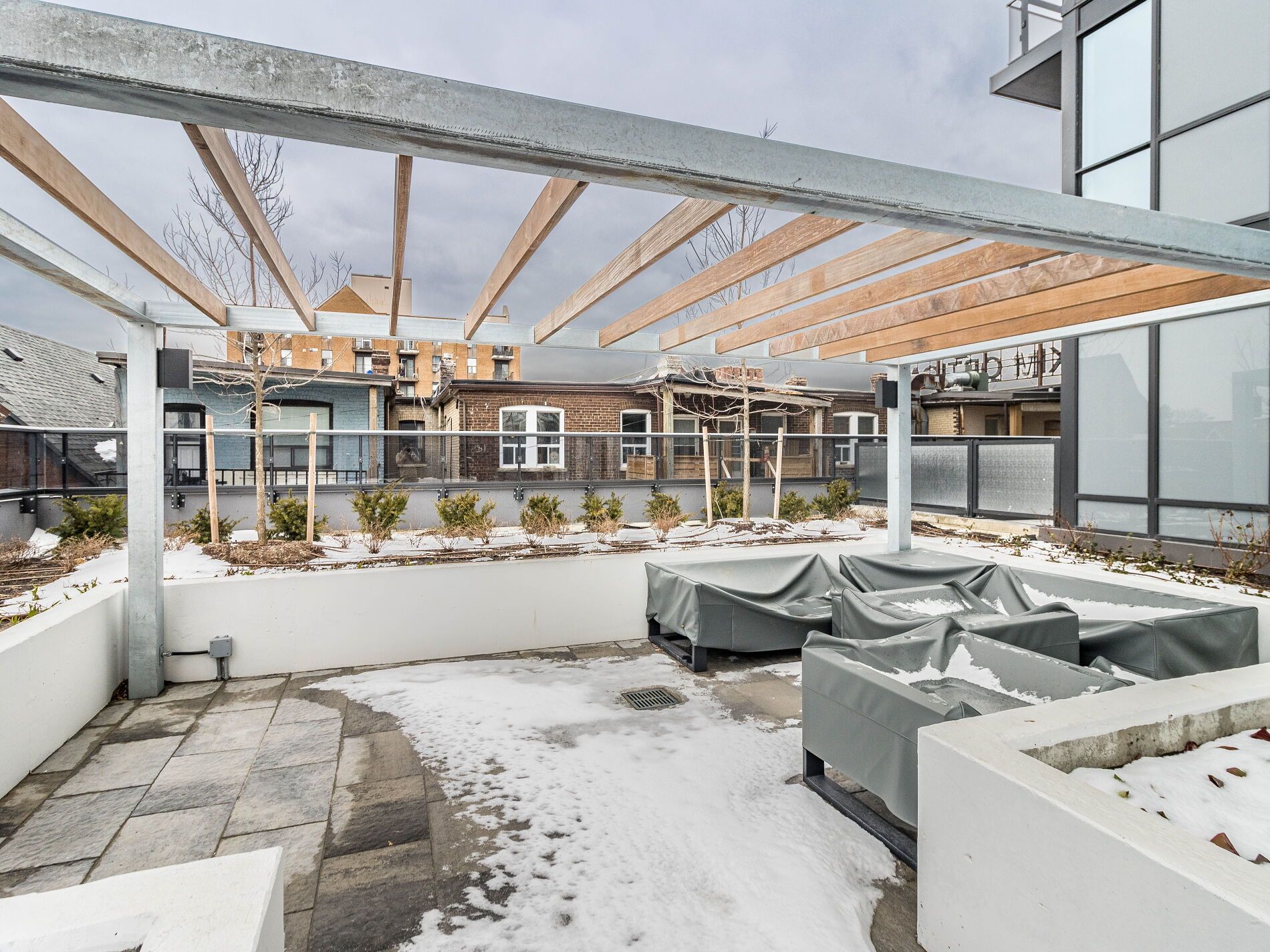 • Building amenities include gym, rooftop terrace, and party room for entertainment.
