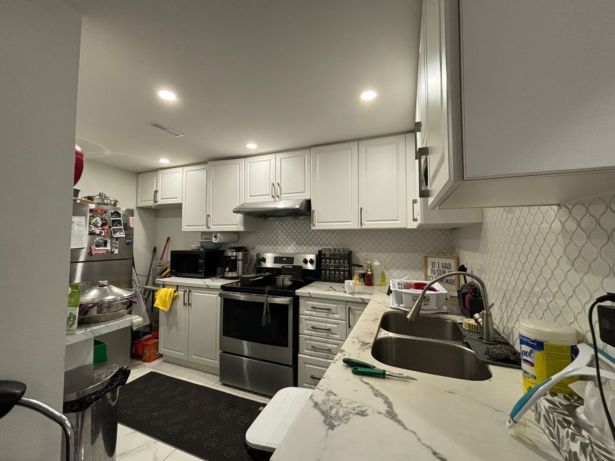 • Modern kitchen with a pantry and large living/dining area.