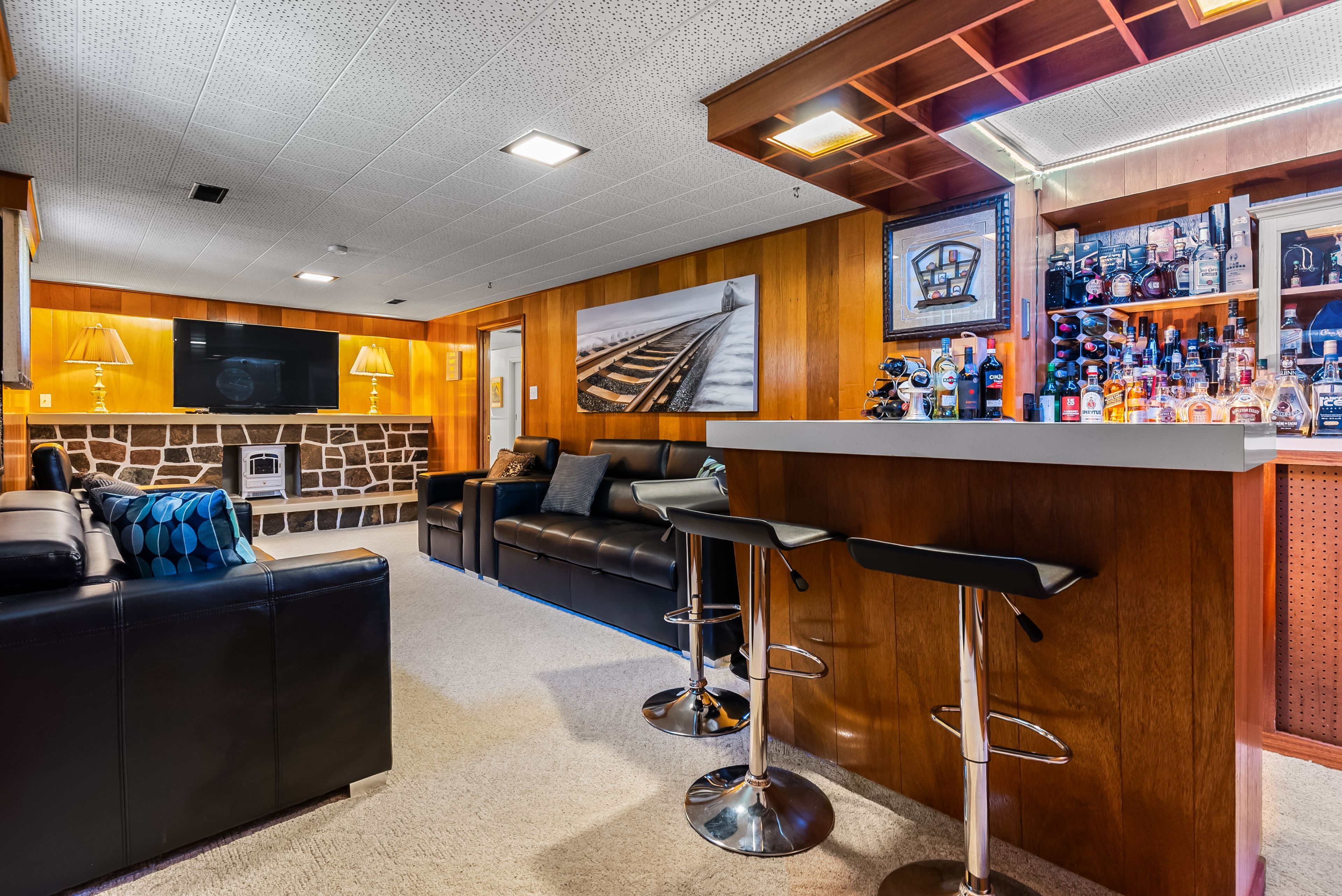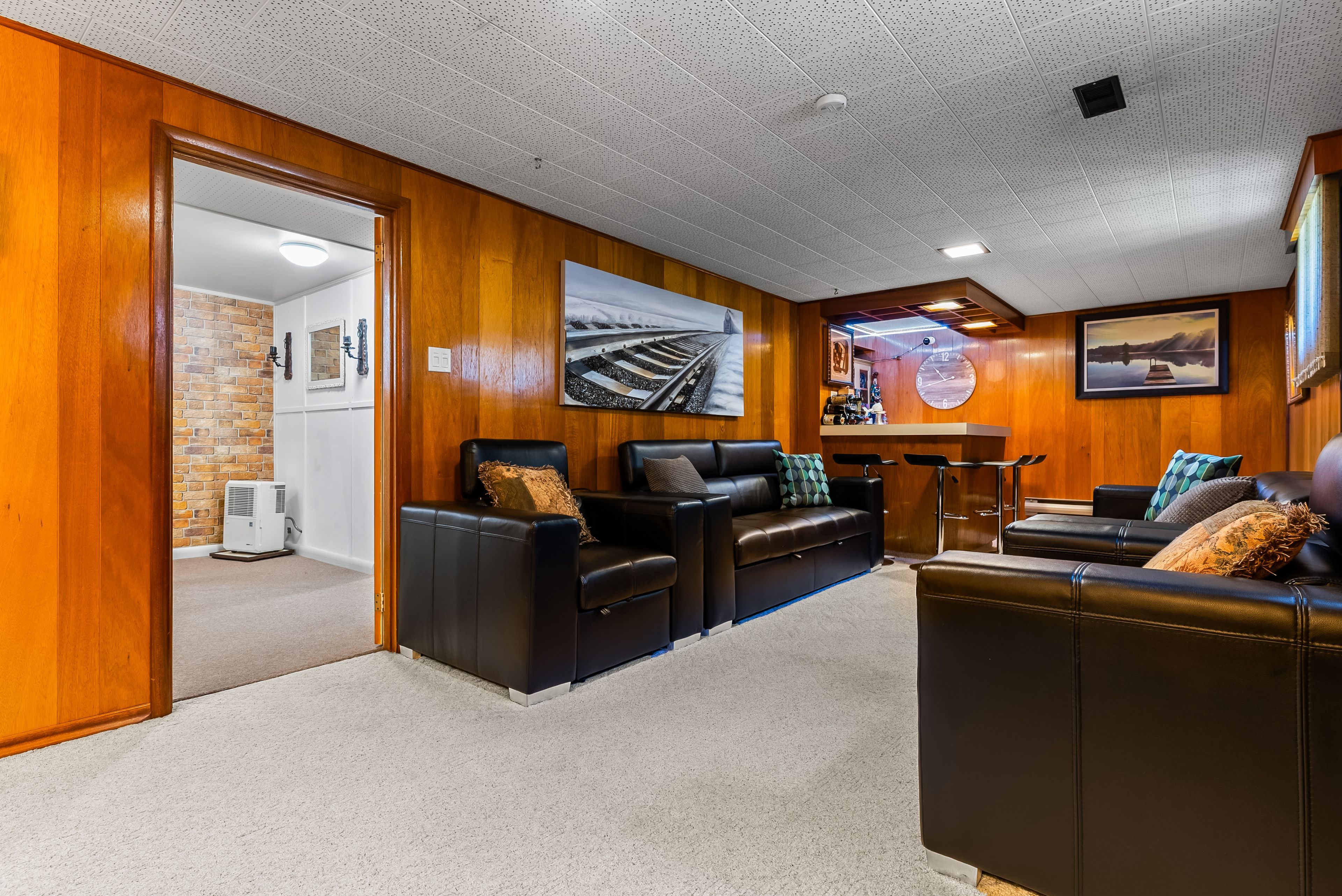 • Finished basement with additional living space and workshop.