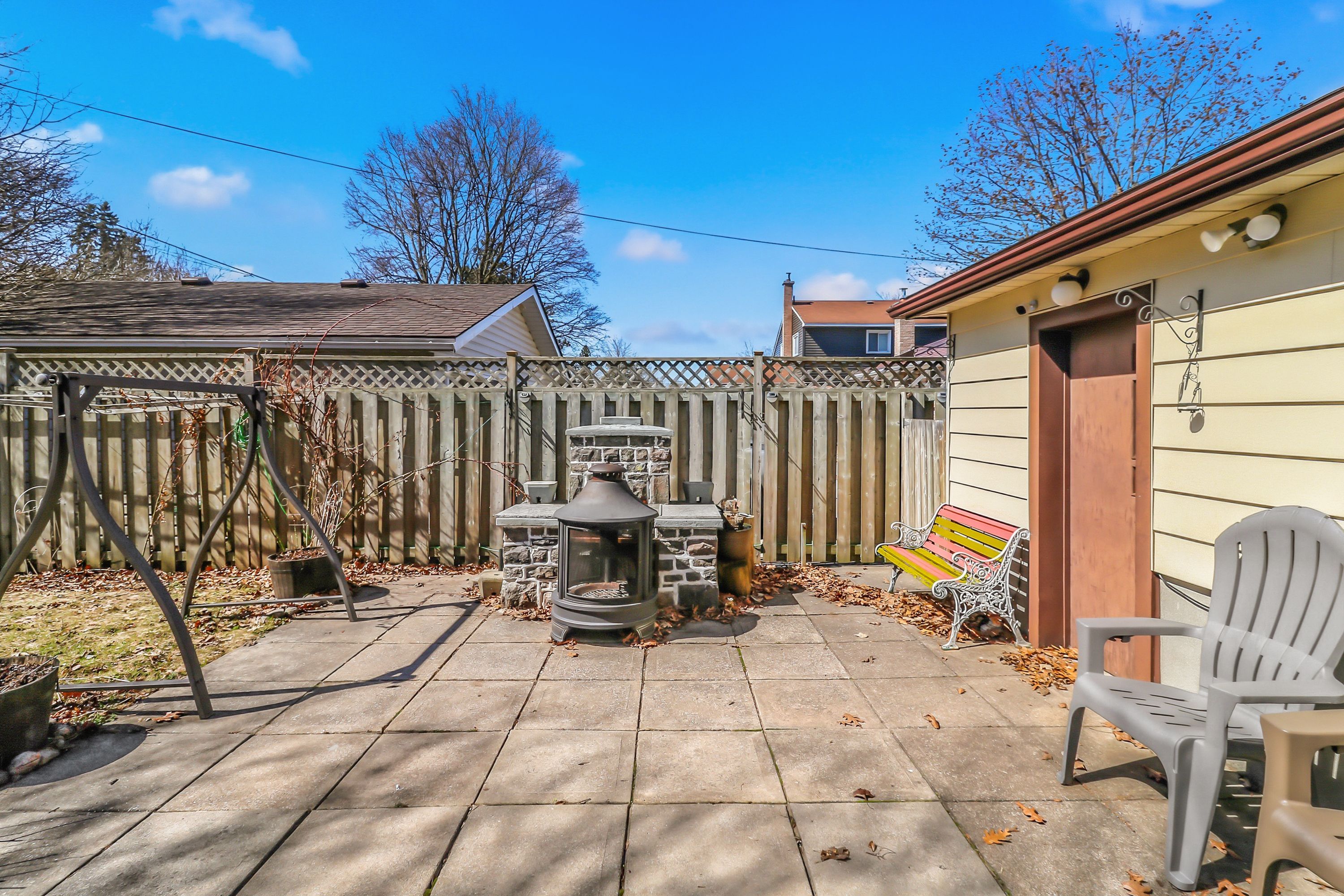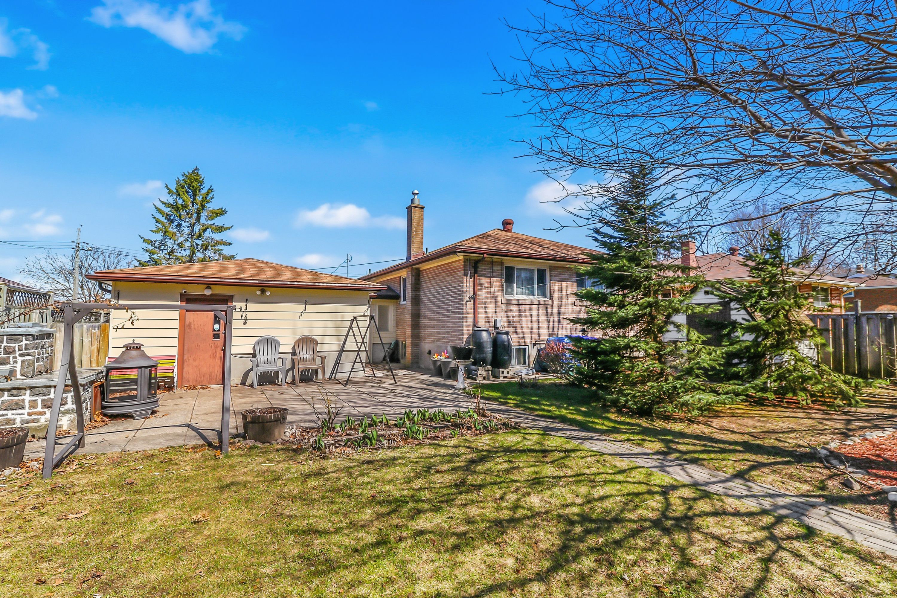 • Fenced backyard with patio, brick BBQ, and plenty of outdoor fun.