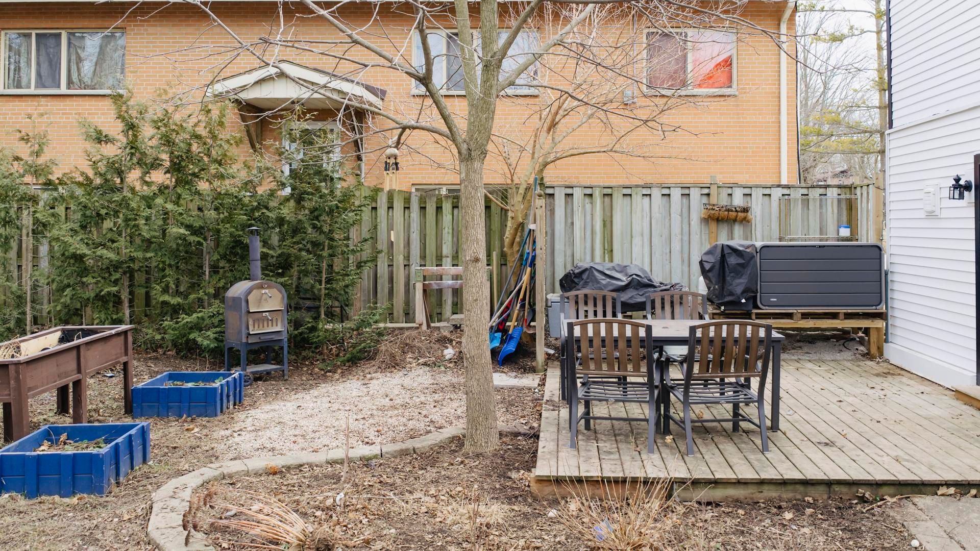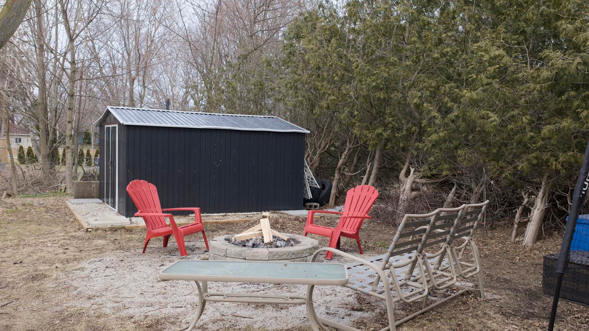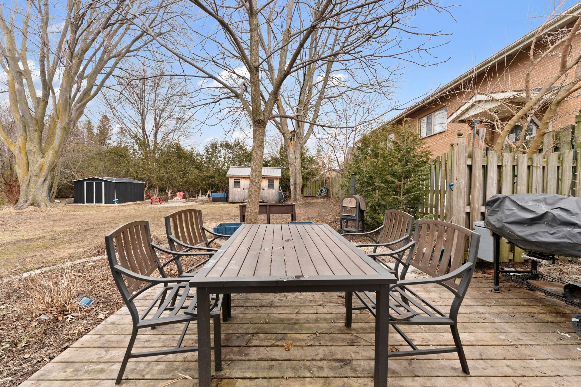 • Spacious backyard with storage sheds, perfect for entertaining and gardening.