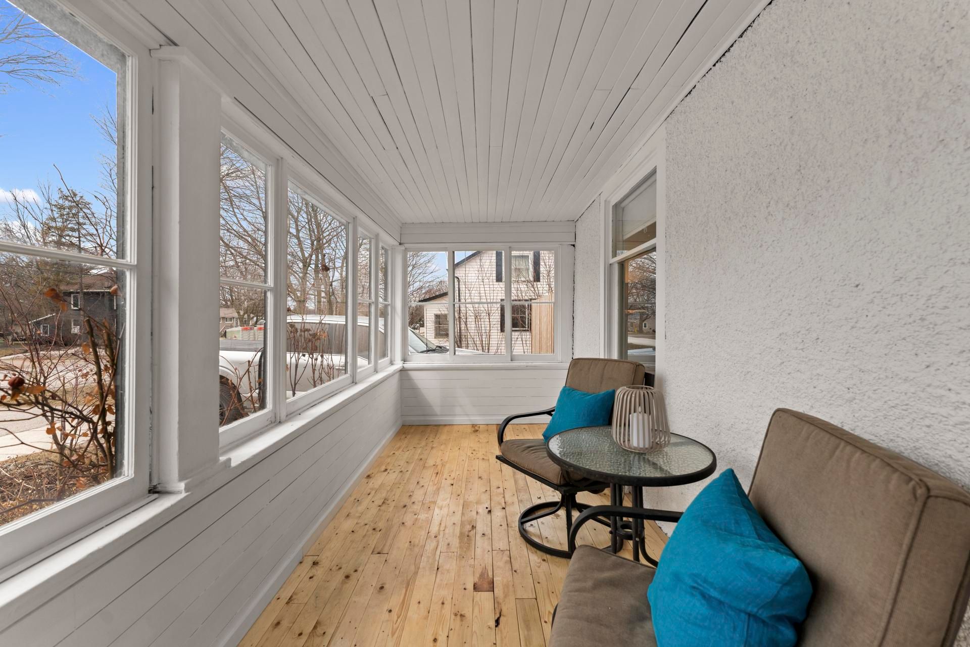 • Airy sunroom perfect for relaxing with a book or coffee.