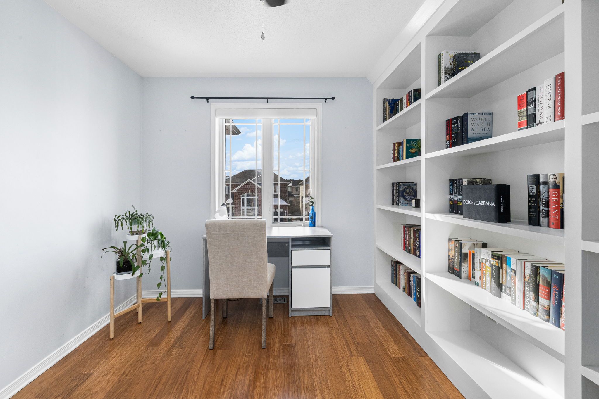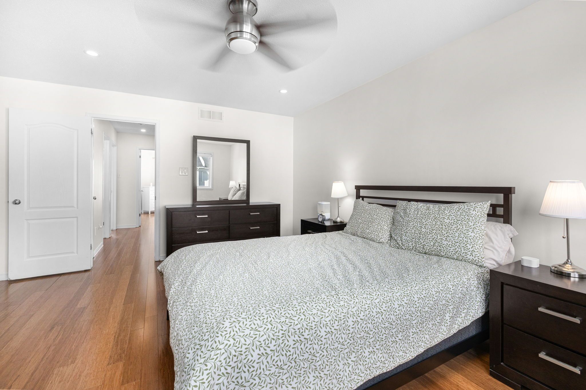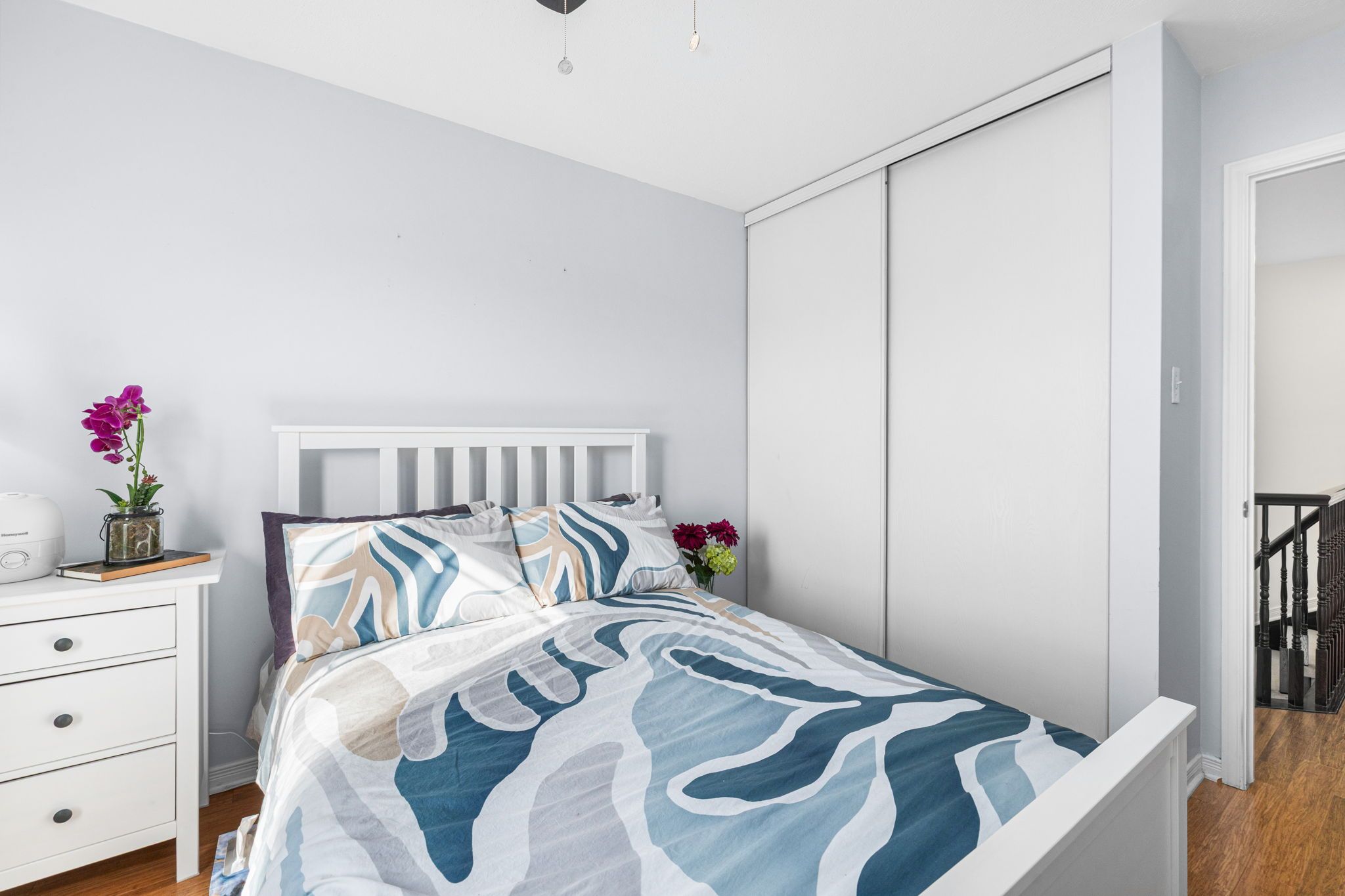 Extensively updated ever popular minto manhattan freehold townhome boasting just over 130k in recent updates. Upon entering this immaculately cared for 3 bedroom/2. 5 bathroom home located on a quiet family street you will be greeted by an inviting spacious entrance with a newly renovated powder room. One of the highlights of this beautiful home is the completely remodeled kitchen which features ample cabinetry with custom pull out cabinets, quartz counters, undermount lighting, ss appliances and modern ceramic tiles. Adjacent to the kitchen is the dining and living room which is complemented by bamboo flooring and loads of pot lights. The circular staircase leads you to the second level which also features bamboo flooring in all 3 bedrooms and the hallway. The spacious master has a large wic and a newly updated ensuite bathroom with free standing tub, modern vanity with quartz and separate shower. There are two other generous bedrooms including the second bedroom with custom built-in shelving, perfect for the book enthusiast. The beautifully finished lower level features high grade laminate flooring,a cozy gas fireplace and pot lights. The backyard has a convenient 2 tier deck which is perfect for summer bbqs. This immaculate home has undergone several recent updates such as: freshly painted throughout, roof '20/22, furnace & a/c '23, kitchen '23, ensuite bathroom '20, pot lights '22/23, custom bookshelf '21, powder room '23, deck '16. Only carpet on staircases. Ideally situated closer to great schools, parks, transit, shopping..