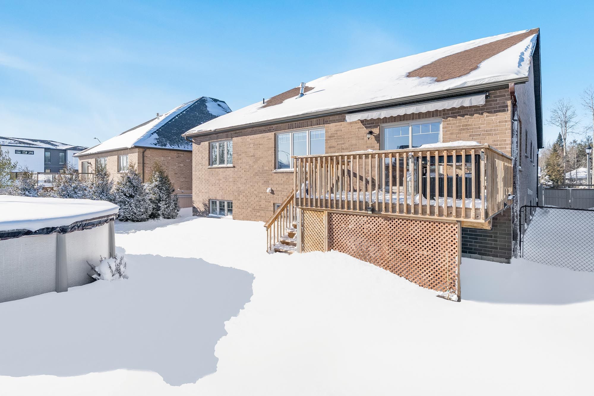 Top 5 reasons you will love this home: 1) offering exceptional space, style, and lifestyle, this raised bungalow presents over 4,300 square feet of beautifully finished living space with six bedrooms and four full bathrooms, thoughtfully designed for those seeking more room and functionality, with an ideal layout for growing or multi-generational families, all set within a desirable, family-friendly neighbourhood just minutes from the shores of wasaga beach 2) elevated open-concept living defines the main level, where a welcoming foyer flows into a bright and expansive living space featuring hardwood floors, porcelain tile, recessed lighting, a cozy gas fireplace, and a generous dining area suited for hosting holidays, dinner parties, and relaxed gatherings 3) the kitchen anchors the home with everyday luxury, showcasing quartz countertops, ceiling-height soft-close cabinetry with crown moulding, a ceramic backsplash, stainless-steel appliances, a gas range, and a large centre island that naturally becomes the heart of the home for family meals and entertaining 4) private retreats and versatile living spaces include the primary suite offering a peaceful escape with a walk-in closet and spa-inspired 5-piece ensuite, two additional bedrooms, a full bathroom, convenient main level laundry, and a loft suite with its own ensuite and closet, ideal as a second primary bedroom, office, fitness studio, or creative retreat 5) multi-generational living and outdoor enjoyment come together in the fully finished basement with a separate entrance, offering a self-contained living space with a full kitchen, living and dining areas, two bedrooms, heated bathroom floors, and laundry; step outside to the fully fenced backyard with a large deck, above-ground pool, and sprinkler system, all close to shopping, dining, amenities, and a short drive to collingwood and blue mountain. 2,645 above grade sq. Ft. Plus a finished basement.