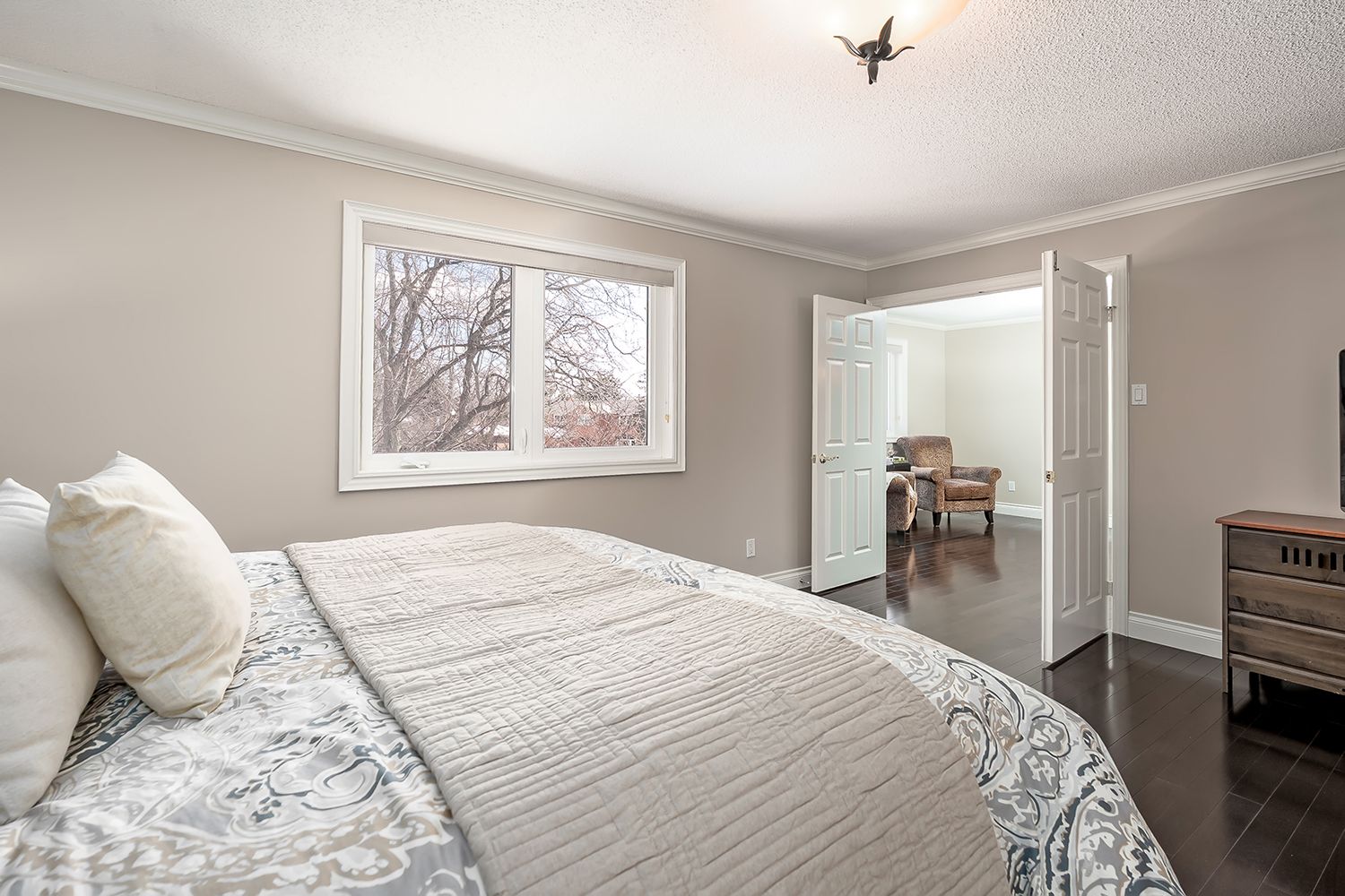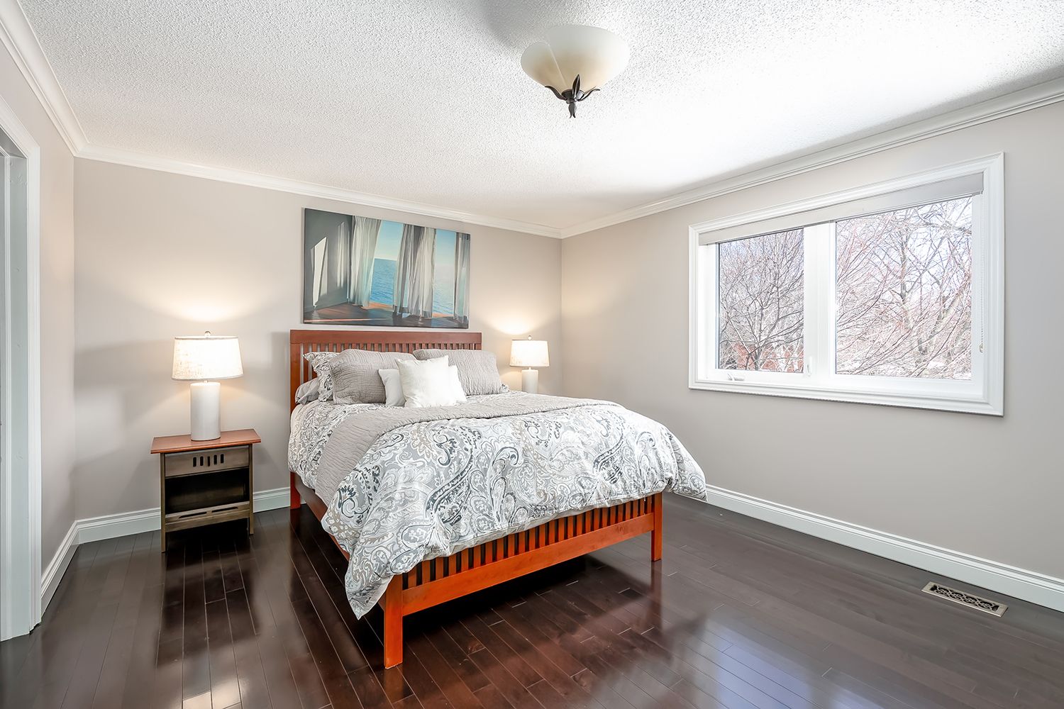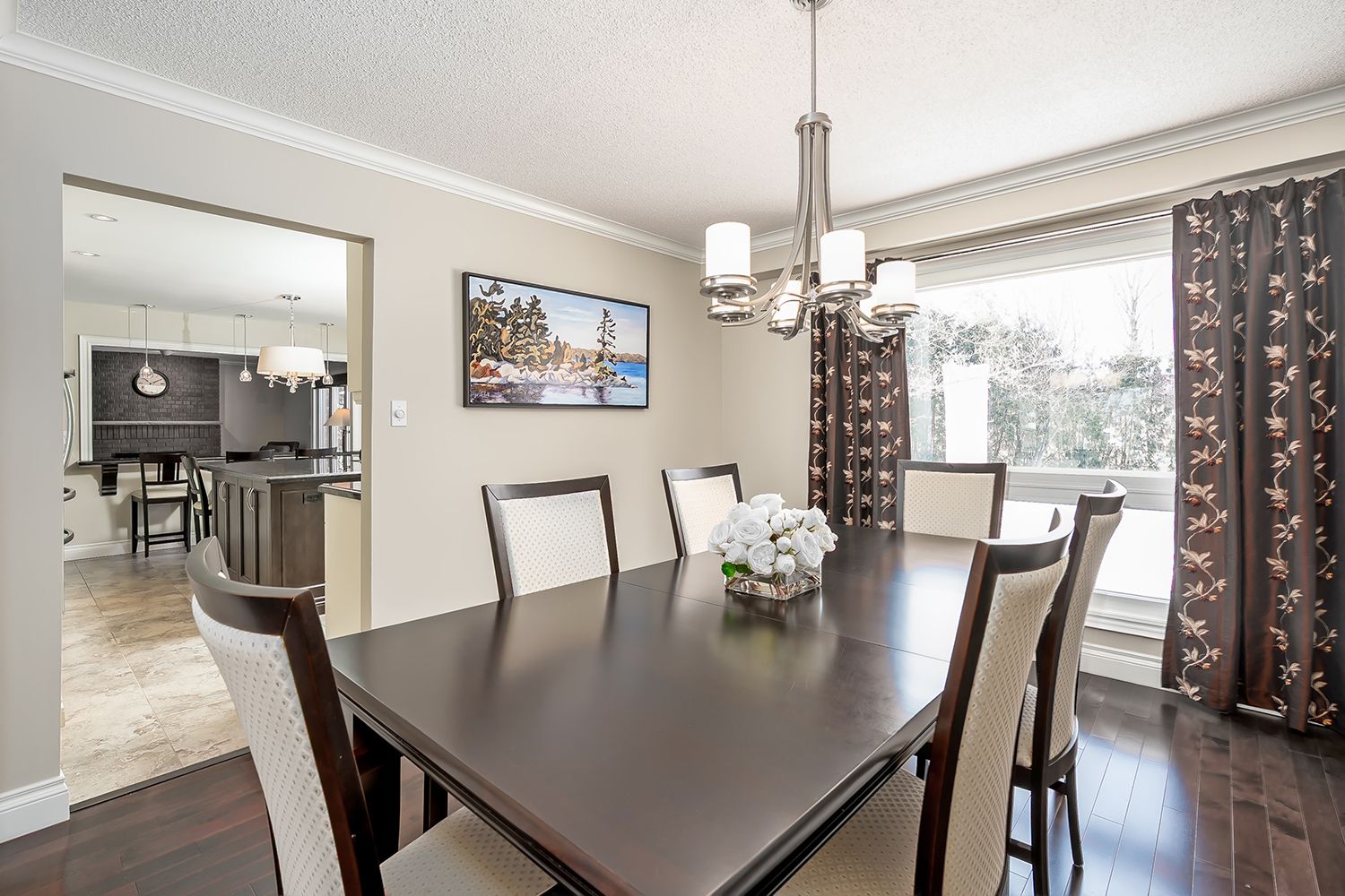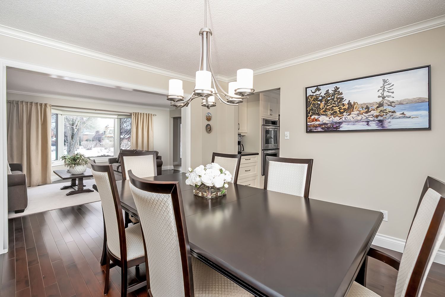 • Elegant formal dining room and bright living room with a bay window.