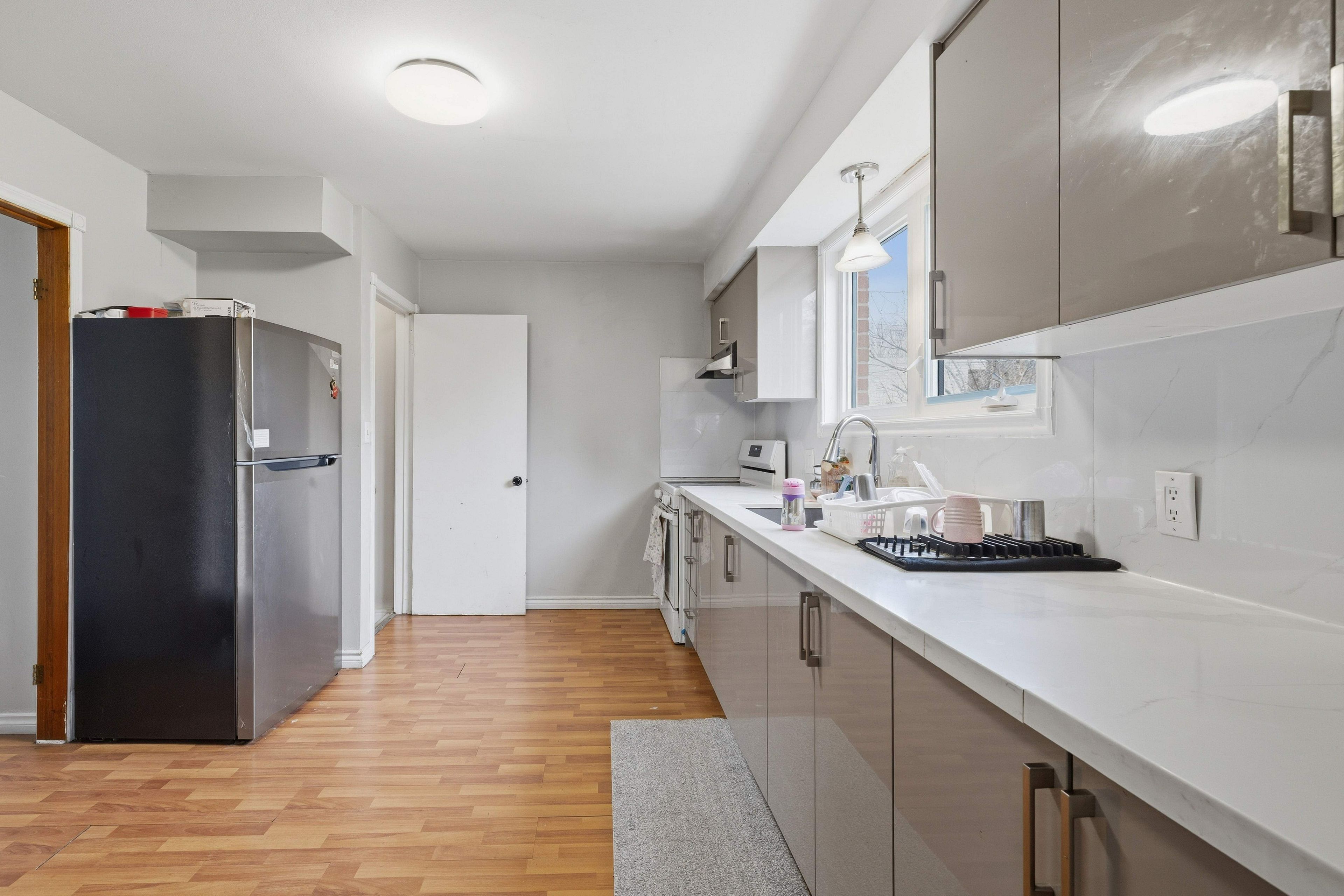 • Updated kitchen provides a modern space for cooking and socializing.
