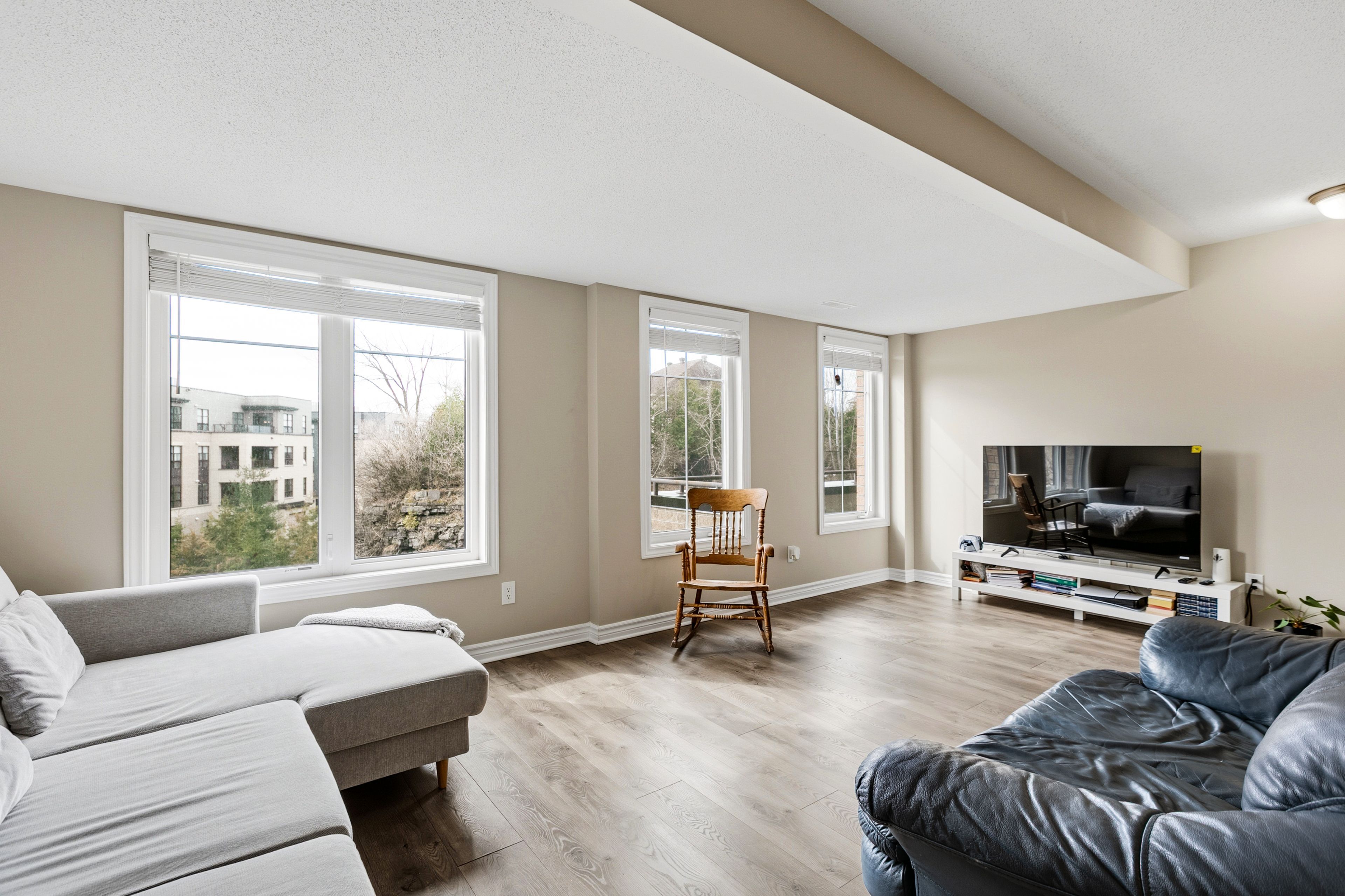Stunning upper-level, two-storey condo available for rent in the highly desirable quarry glen community. This bright and spacious unit offers 2 bedrooms plus a versatile den, 1 full bathroom, and a convenient powder room with in-unit laundry. The open-concept main floor features sun-filled living and dining areas, perfect for both relaxing and entertaining. The modern kitchen is equipped with stainless steel appliances, ample cabinetry, and generous counter space. Upstairs, you'll find two well-sized bedrooms, a full bathroom, and a den ideal for a home office or study space. The primary bedroom includes a large walk-in closet and access to a private covered balcony overlooking the beautiful quarry landscape. Additional features include hardwood flooring on the main level, wall-to-wall carpeting upstairs, and one heated underground parking space. Ideally located near shopping, including place d'orléans, schools, public transit, parks, and scenic trails along the ottawa river, with easy access to the highway.