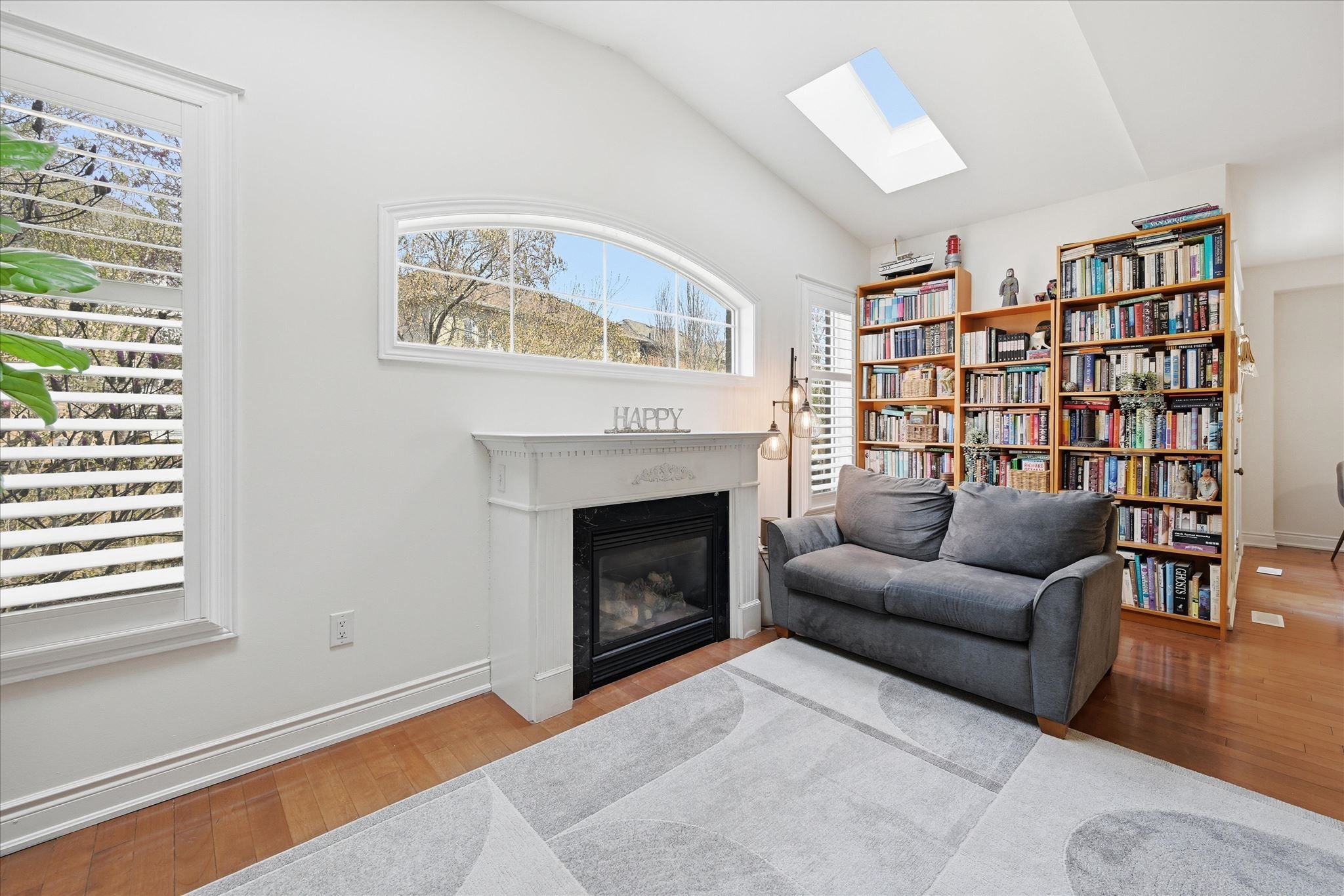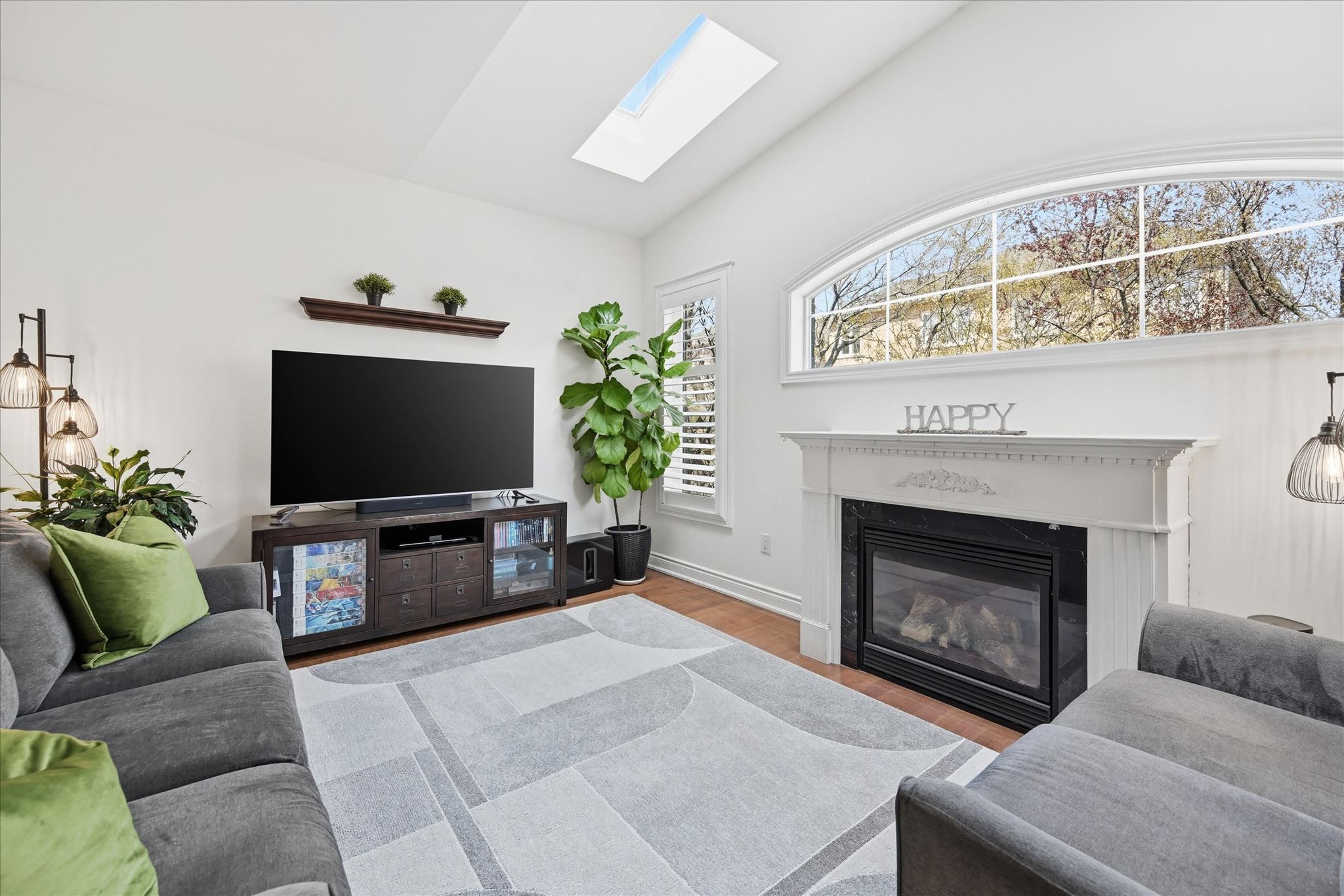 • Bright family room features vaulted ceilings and a cozy gas fireplace.